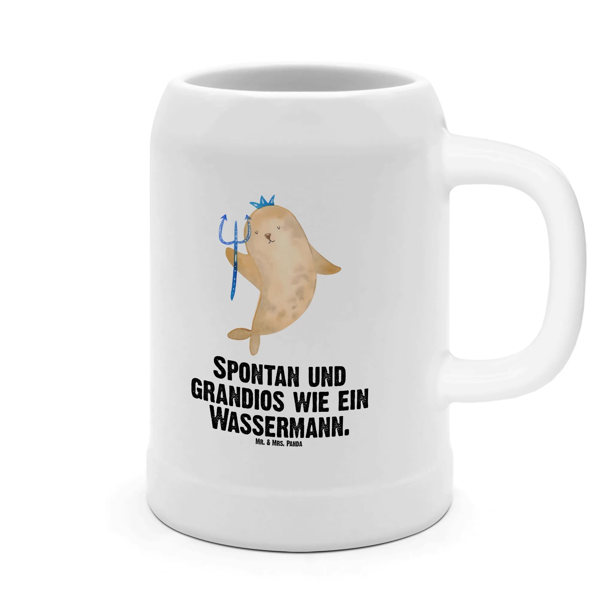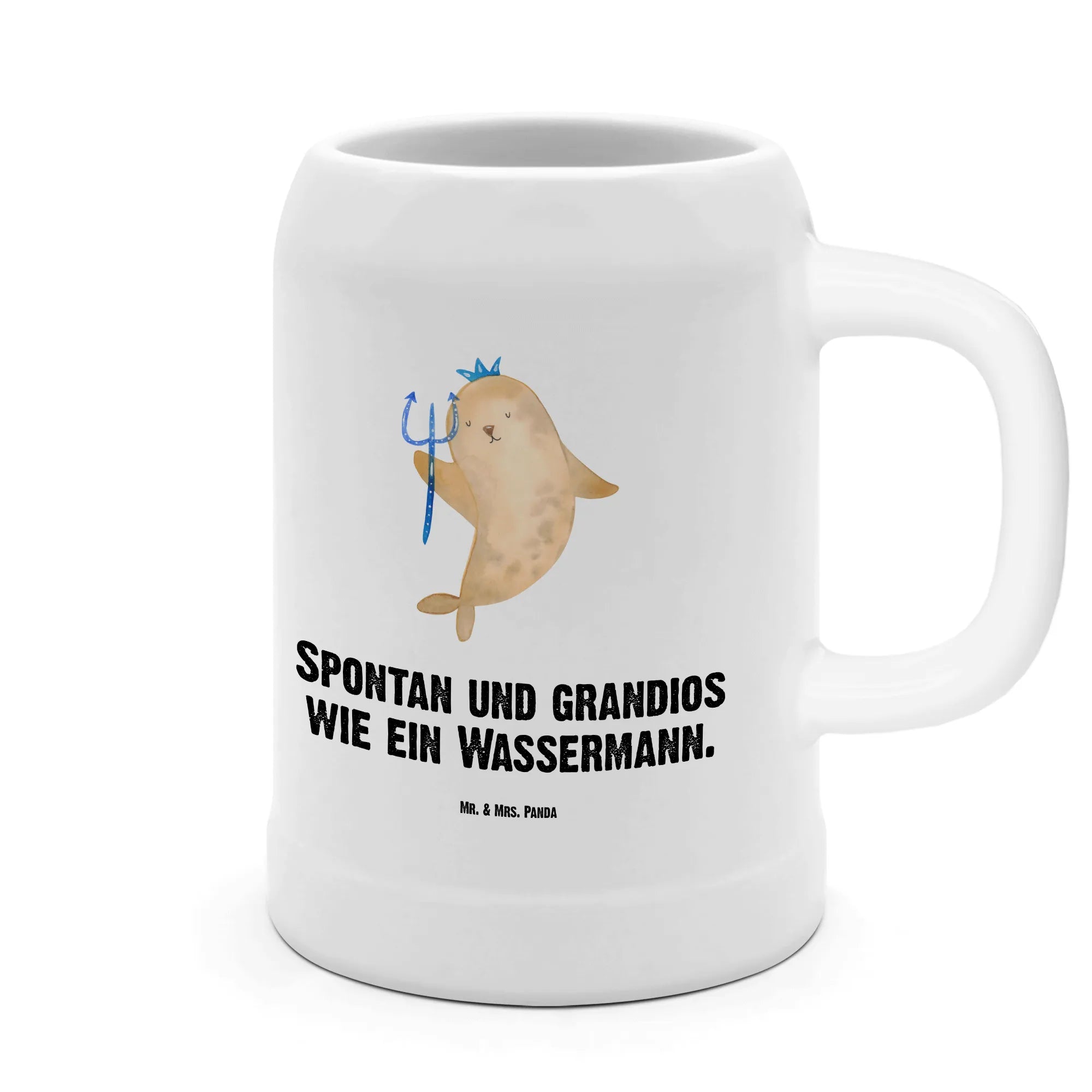 Bierliebhaber und Wassermann-Fans aufgepasst! Dieser bezaubernde Bierkrug aus robustem Steingut von Mr. & Mrs. Panda ist das ultimative Geschenk für alle, die das Sternzeichen Wassermann lieben oder selbst einem Wassermann eine Freude machen möchten. Mit einem Fassungsvermögen von 500 ml passt genau die richtige Menge deines Lieblingsbieres hinein. Egal ob zum Geburtstag im Januar oder Februar oder einfach als nettes "Danke" an deine Freunde – dieser Krug schafft mit seinem niedlichen Wassermann-Motiv, das eine Robbe mit Krone und Zepter zeigt, garantiert gute Laune und jede Menge Gesprächsthemen.