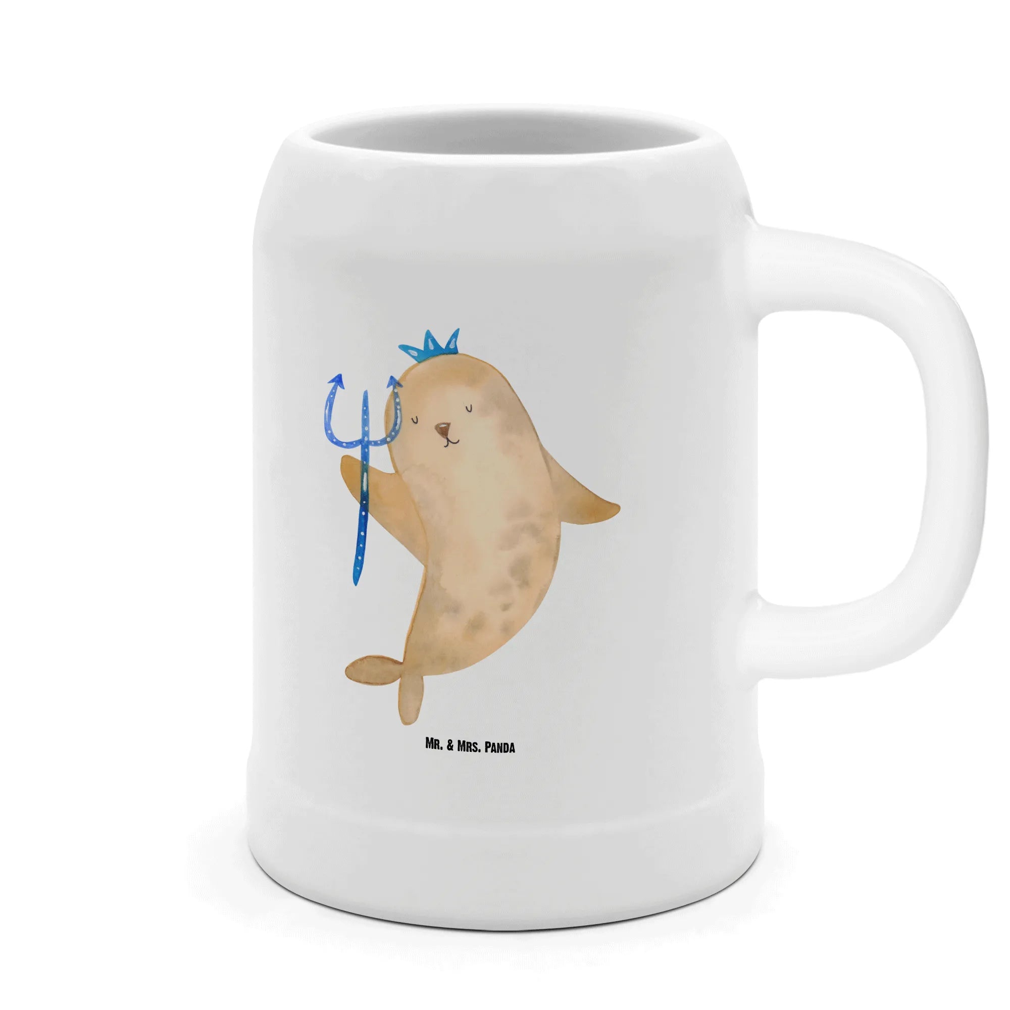 Die liebevoll handgezeichnete Robbe mit Krone und Zepter symbolisiert die Stärken und Eigenheiten des Wassermanns. So wird jeder Schluck aus diesem Krug zu einem kleinen Erlebnis, bei dem die beschenkte Person ihren Charakter und ihre Leidenschaft für das Wasserzeichen zelebrieren kann. Ob als Geschenk für einen Geburtstag im Januar oder Februar, oder einfach als liebevolle Aufmerksamkeit für einen Wassermann – dieser Bierkrug ist mit Sicherheit ein Hit!