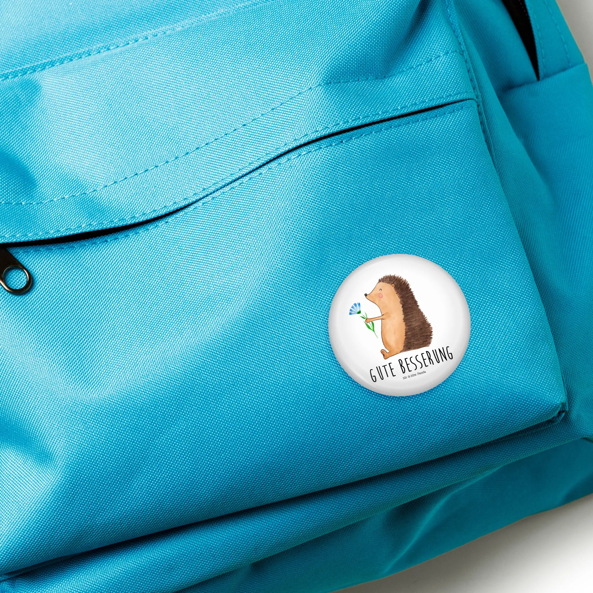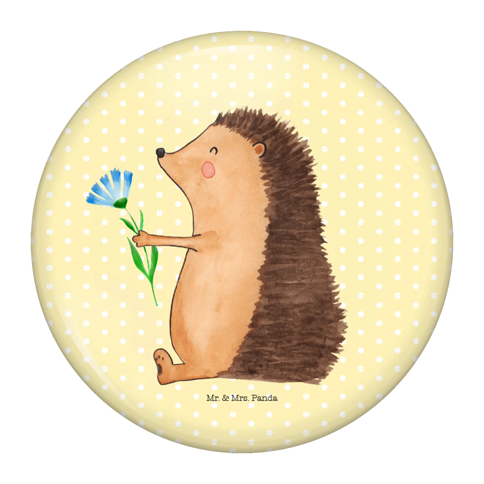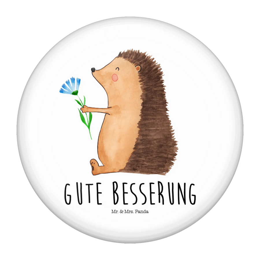 Der 50mm Button "Igel mit Blume" aus der Kollektion Small World von Mr. & Mrs. Panda ist der perfekte Begleiter für alle, die liebevolle Genesungswünsche übermitteln möchten. Dieser zauberhafte Button zeigt einen putzigen Igel, der eine Blume in der Hand hält – ein Symbol für Hoffnung und gute Laune. Die leuchtenden Farben und das fröhliche Design bringen ein wenig Freude ins Leben, besonders in schwierigen Zeiten.
