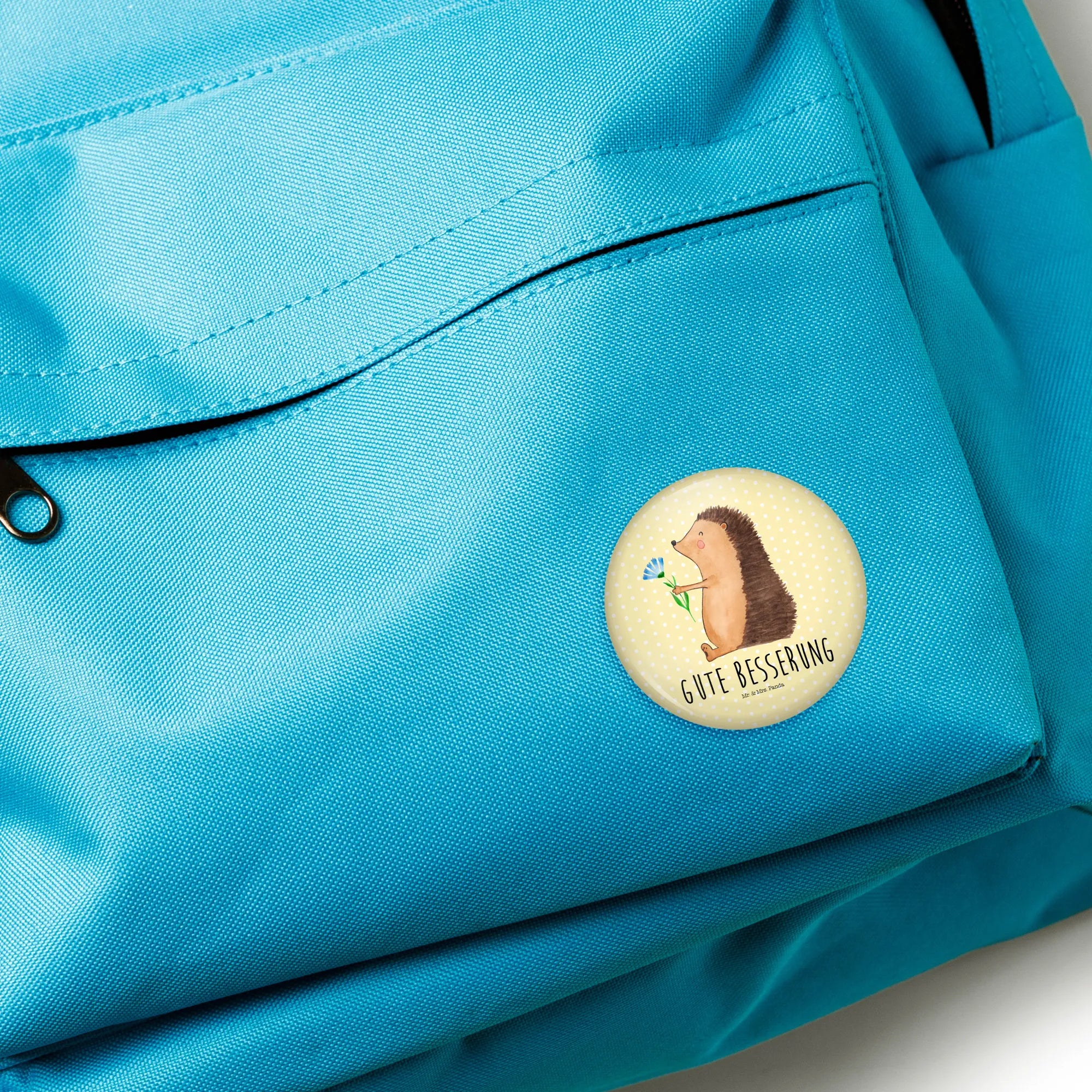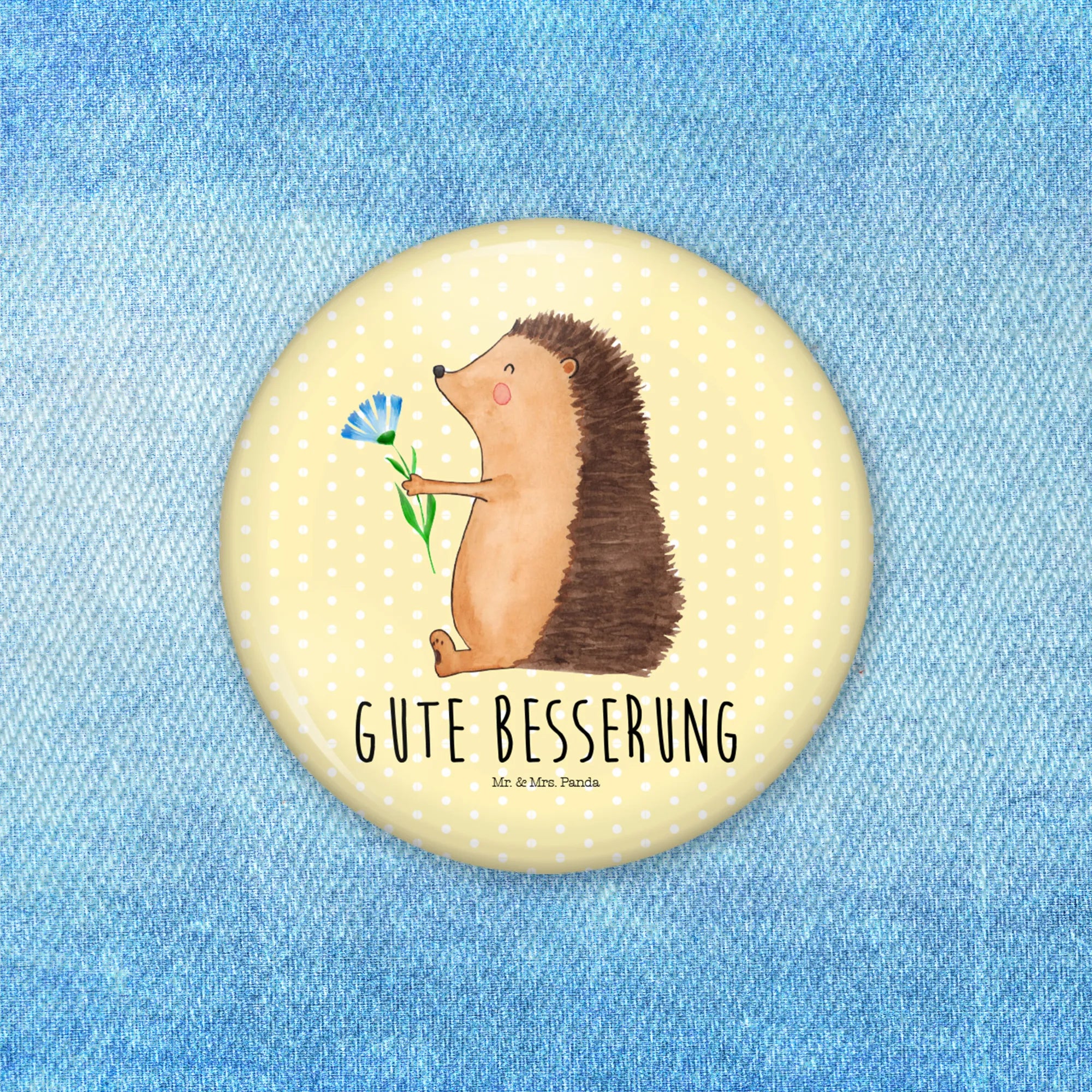 Der Igel mit Blume ist eine wunderbare Möglichkeit, um die Genesungswünsche auf eine ganz besondere und kreative Weise auszudrücken. Zudem kommt der Button in einem pastelligen Gelb, das an die warmen Sonnenstrahlen des Frühling und Sommer erinnert. Er ist aus hochwertigem, matt glänzendem Papier gefertigt, welches die Farben perfekt wiedergibt und für eine lange Haltbarkeit sorgt.