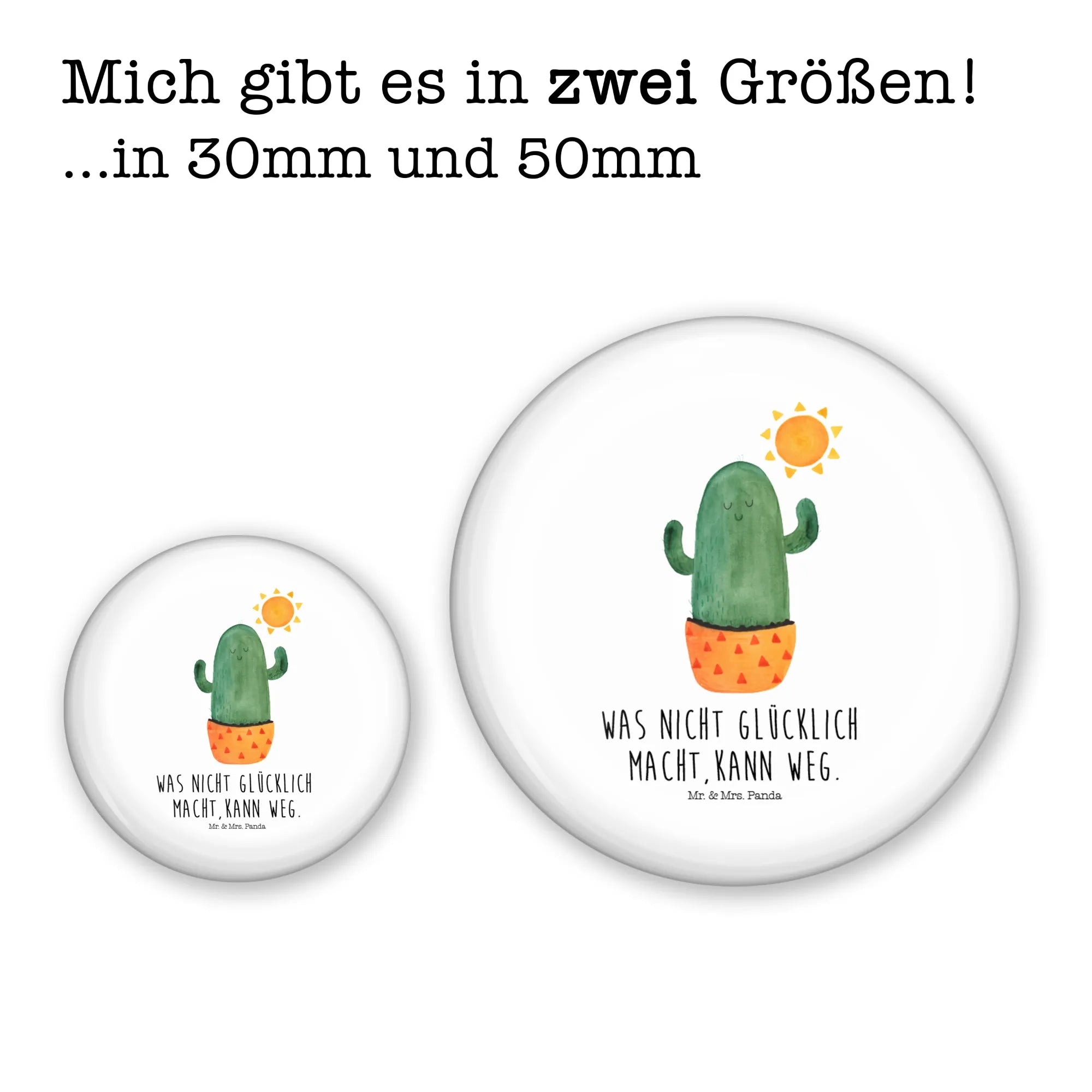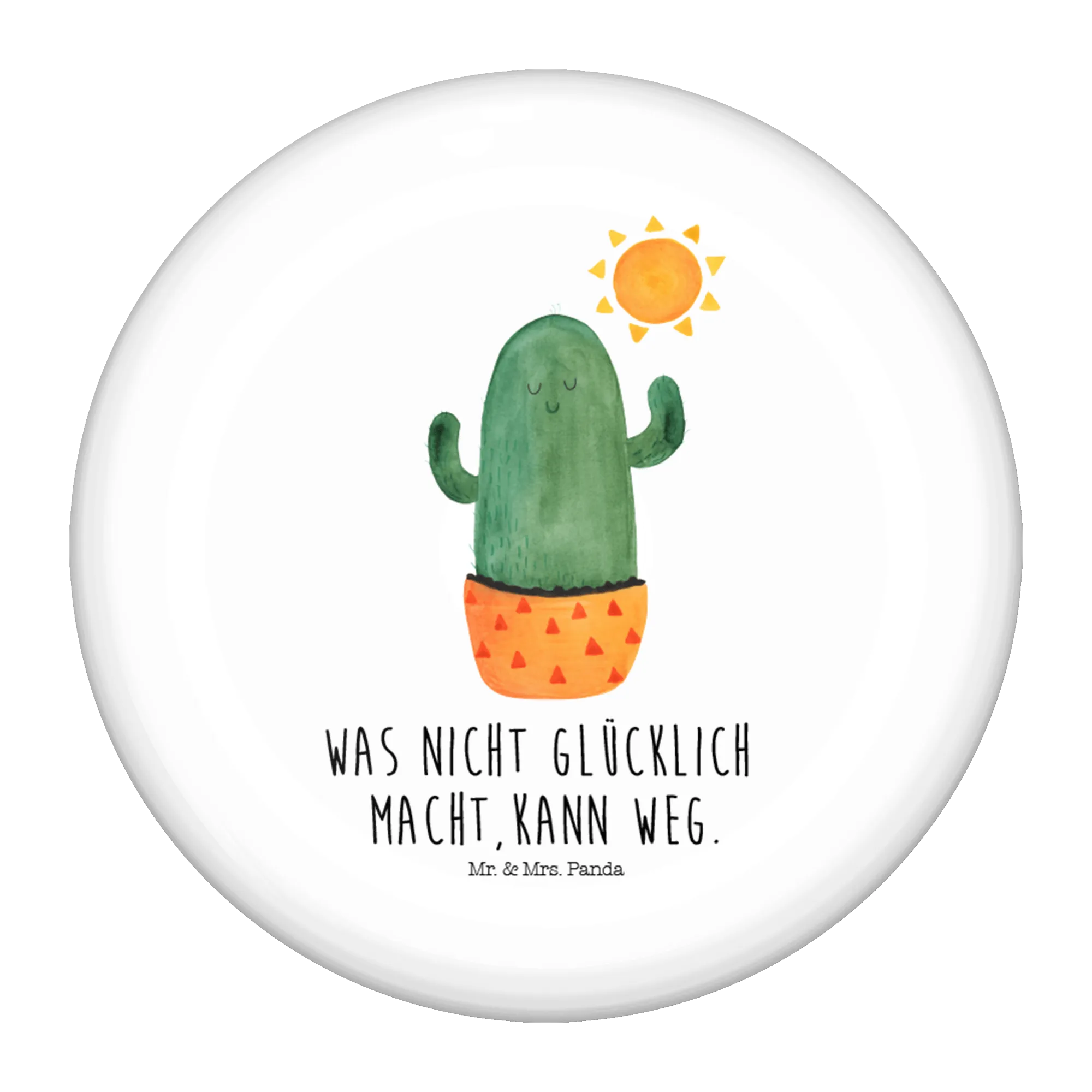 Unser runder Button zeigt einen zufriedenen Kaktus, der sich in Aquarellfarben der Sonne hingibt – begleitet vom Spruch „Was nicht glücklich macht, kann weg." Ein zauberhaftes Motiv aus der Kaktus - Kollektion, perfekt als Geschenkidee für die Freundin, als Trostspender bei Liebeskummer oder als fröhlicher Begleiter für den Alltag.
