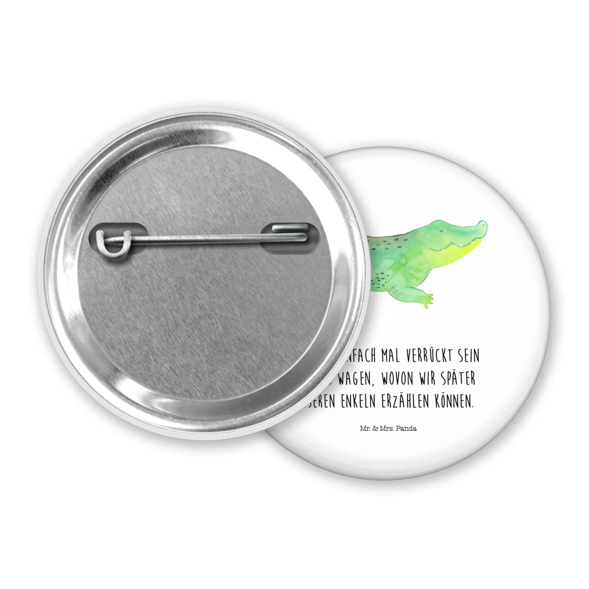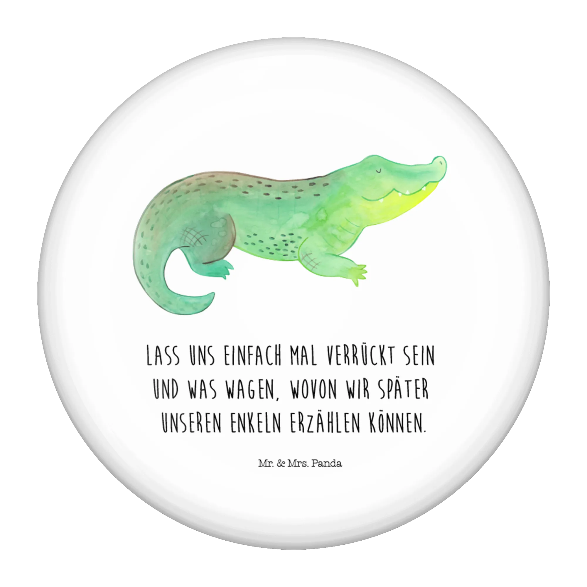 Das fröhlich lächelnde Krokodil in sanften Grün- und Blautönen strahlt Lebensfreude aus und lädt dazu ein, neue Abenteuer zu erleben. Ganz nach dem Motto: "Lass uns einfach mal verrückt sein und was wagen, wovon wir später unseren Enkeln erzählen können!". Der Button ist nicht nur ein tolles Accessoire, sondern auch ein Zeichen der Freundschaft.