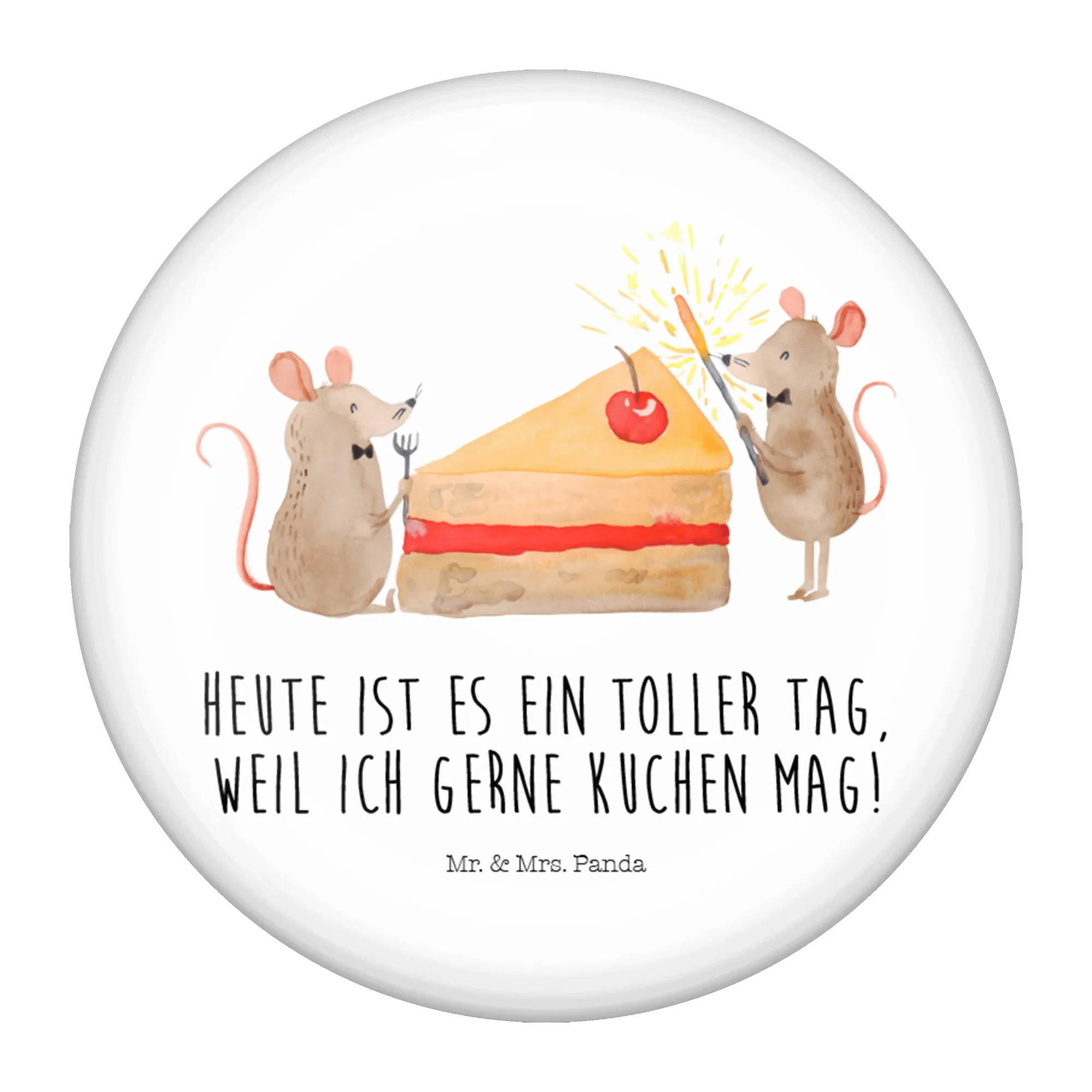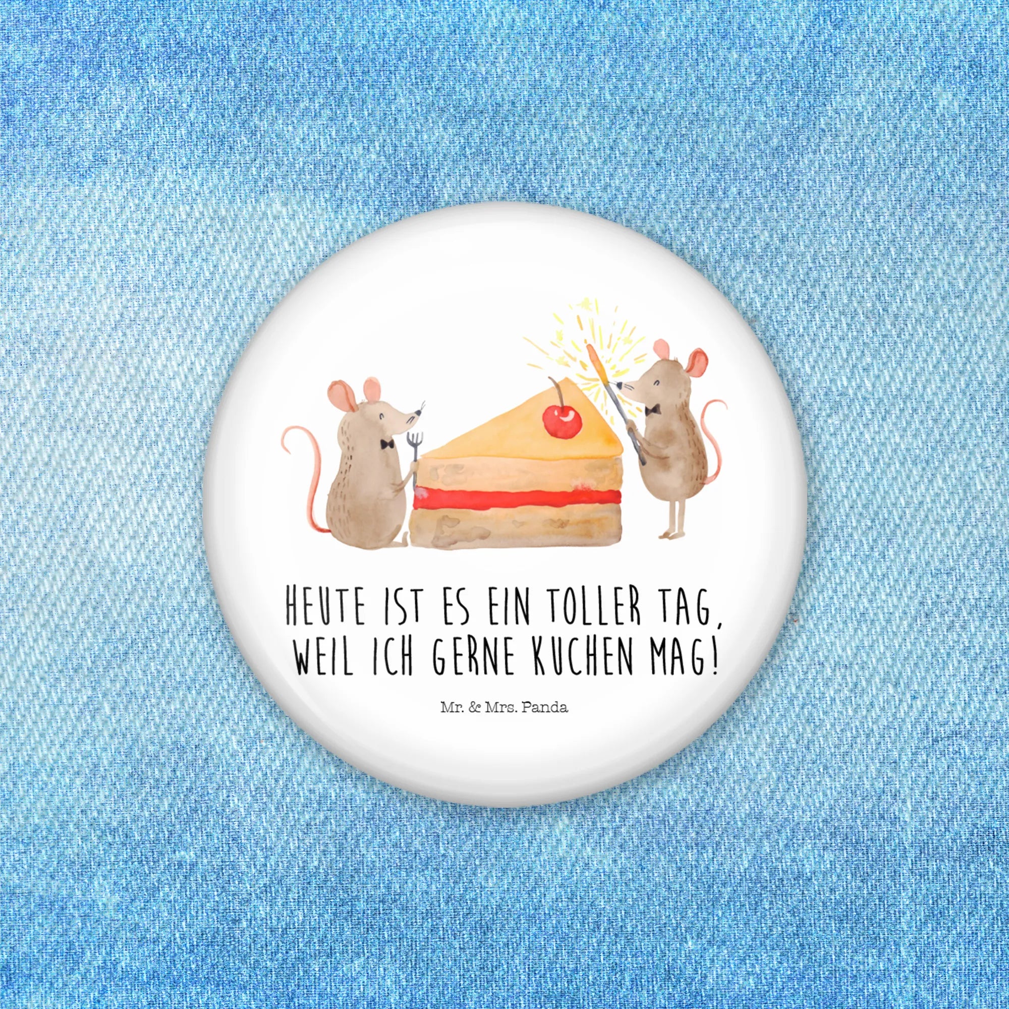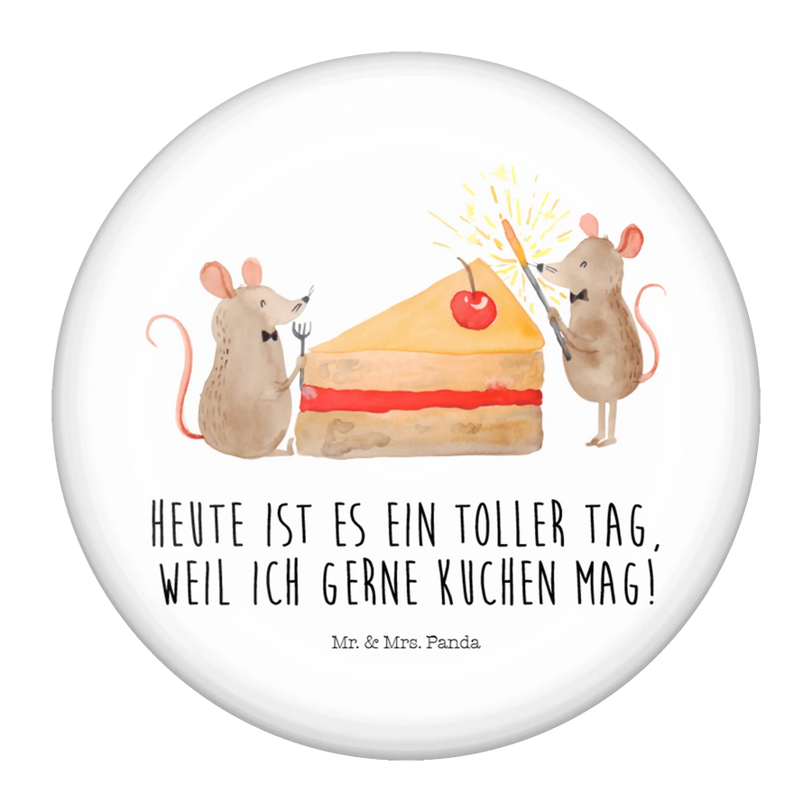 Entdecke den bezaubernden 50mm Button mit dem süßen Motiv "Mäuse Kuchen" aus der außergewöhnlichen Geburtstagskollektion von Mr. & Mrs. Panda.
