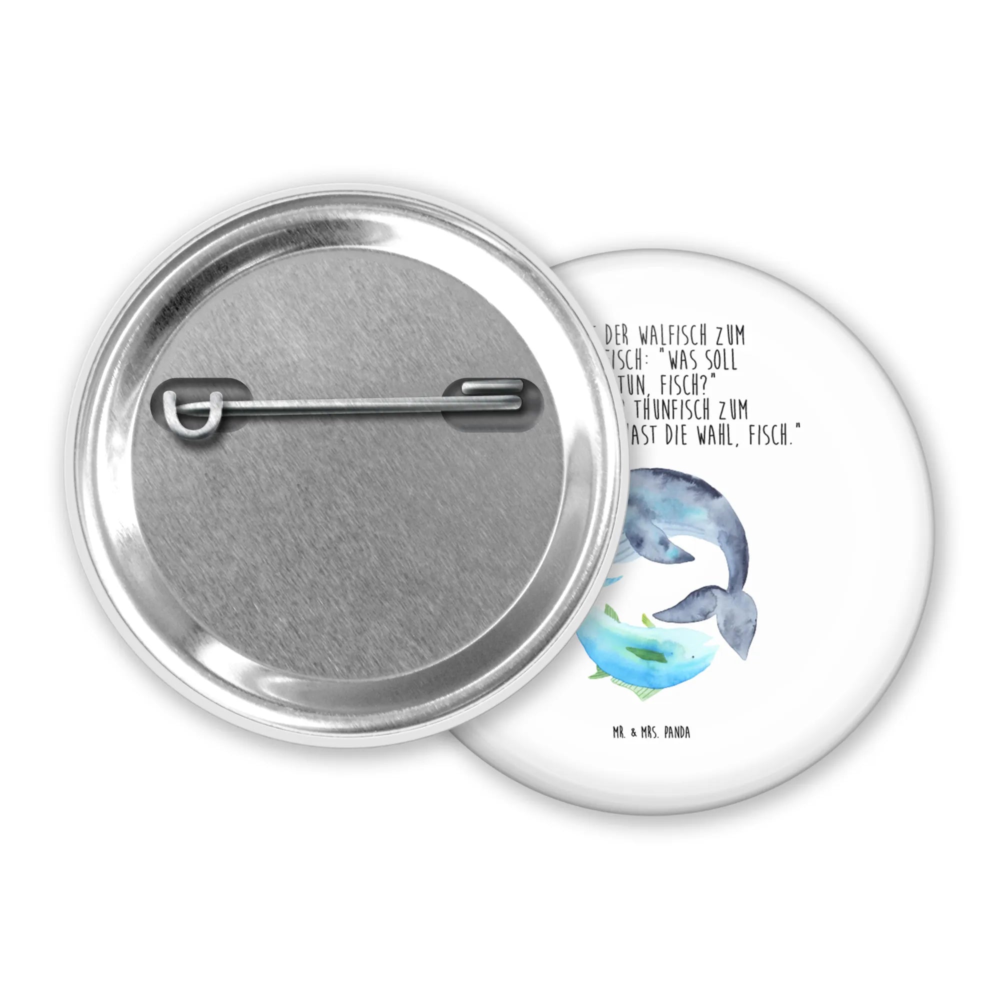 Button Walfisch & Thunfisch - mit Spruch - Weiß