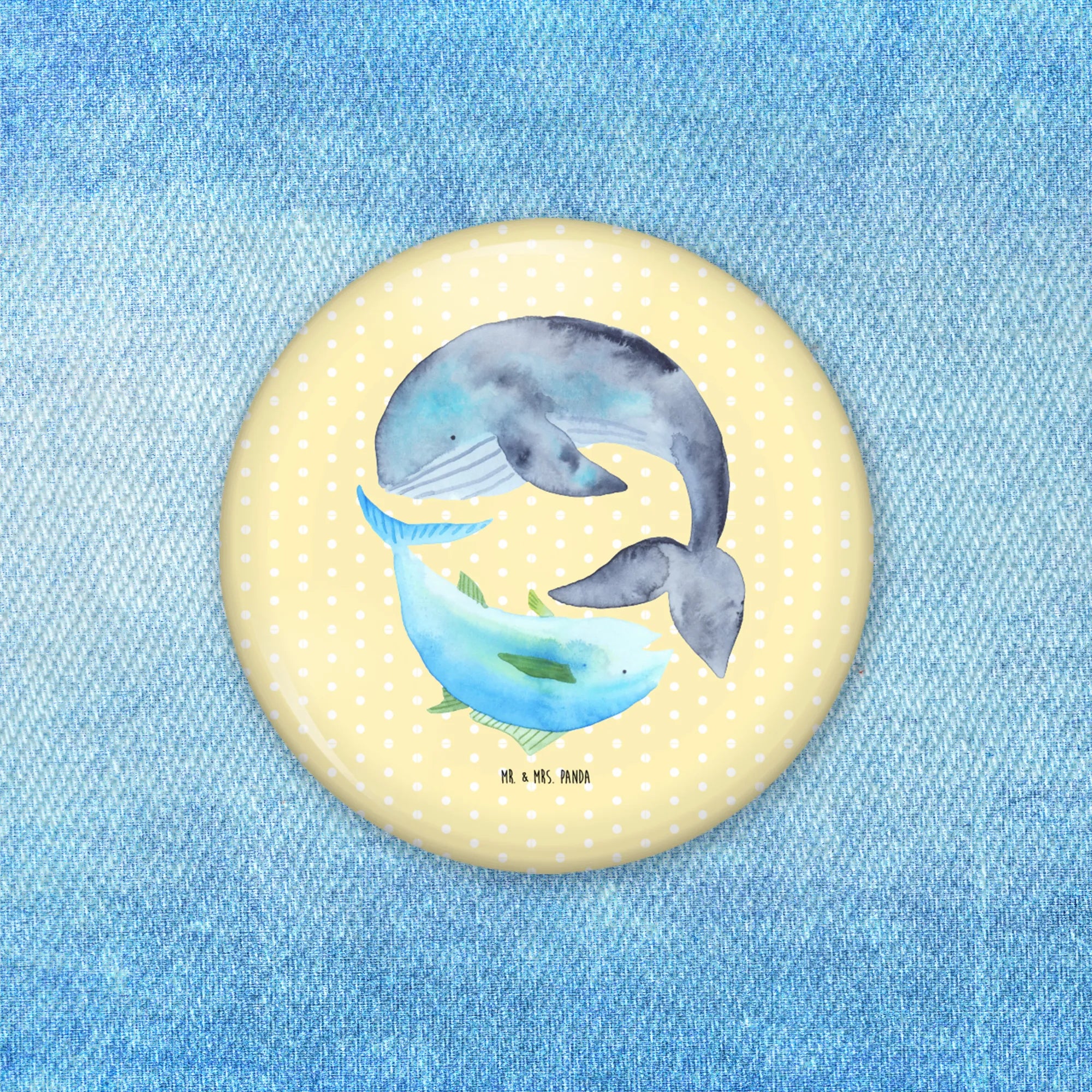 Der Walfisch und der Thunfisch sind bereit, gemeinsam mit dir die Welt zu entdecken und für einen Hauch von guter Laune zu sorgen. Verschenke Freude im Handumdrehen mit diesem originellen Button – ganz nach dem Motto: „Lachen ist die beste Medizin!“