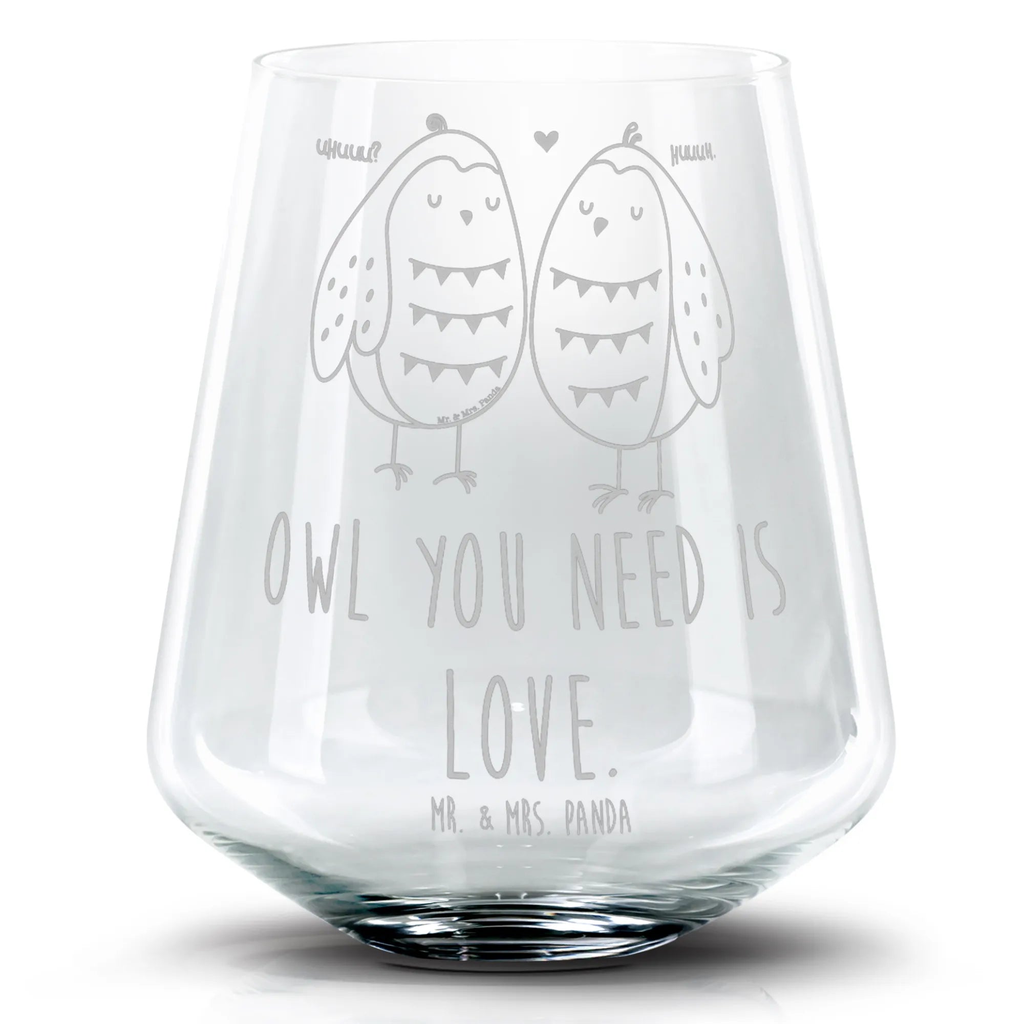 Die zauberhaften, verliebten Eulen, die auf dem Ast sitzen, symbolisieren die besondere Verbindung zwischen zwei Herzen und bringen das Thema Liebe perfekt zum Ausdruck. Jeder Schluck aus diesem Glas wird von der hochwertigen Lasergravur "Owl you need is love" begleitet, die Humor und Romantik vereint.