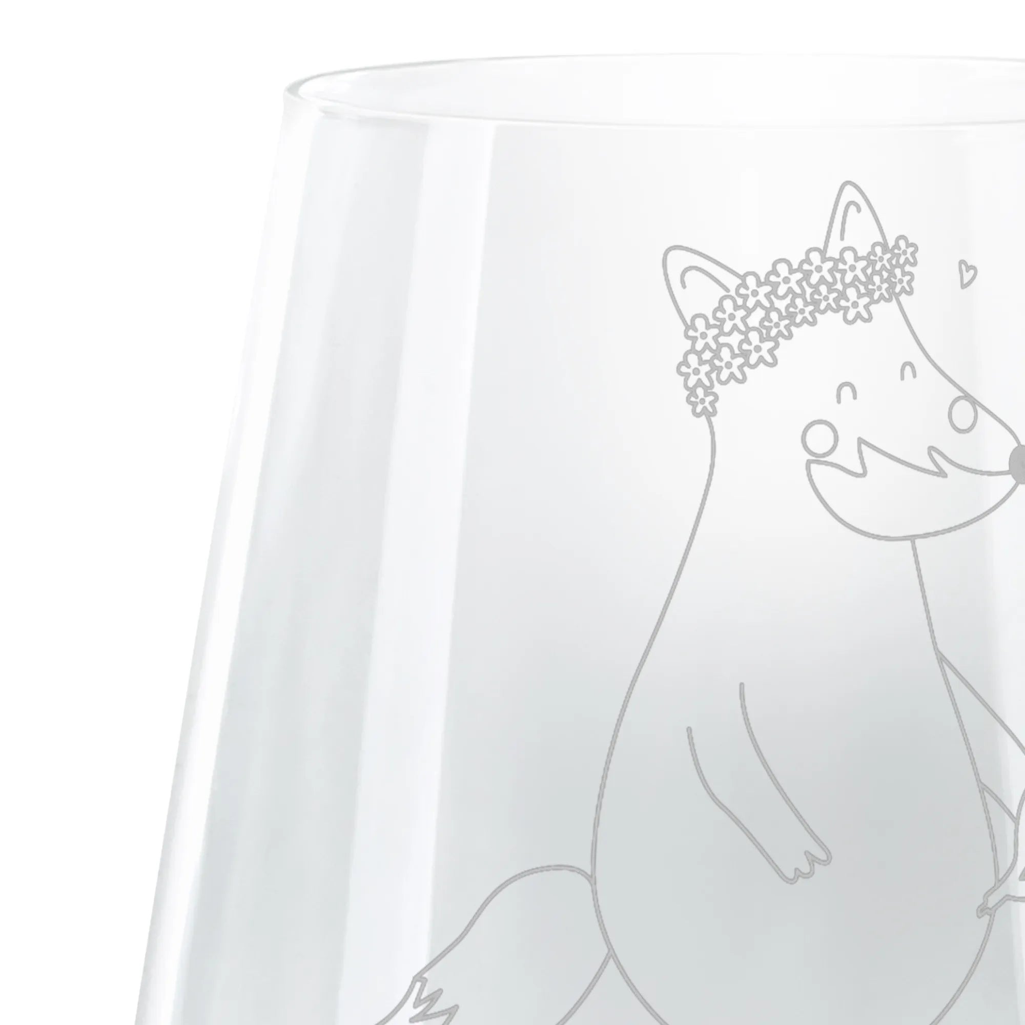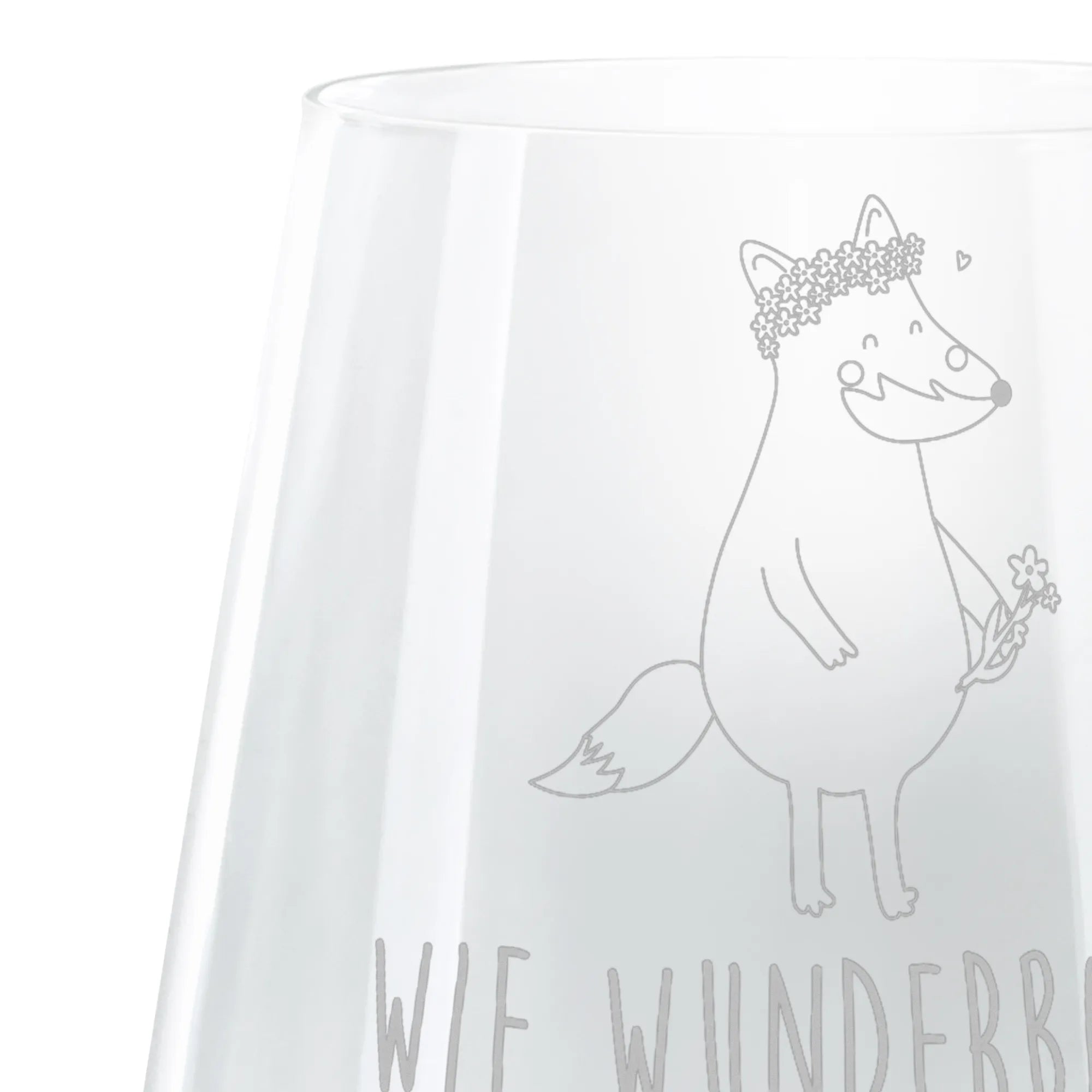 Das wunderschöne Cocktail Glas mit dem fabelhaften Motiv Fuchs Blumenliebe von Mr. & Mrs. Panda ist das perfekte Geschenk für all jene, die die Liebe zur Natur und zur Tierwelt leben. Dieses bezaubernde Glas weist eine exquisite Lasergravur auf, die durch Erhitzung entsteht und einen schimmernden Matteffekt erzeugt.