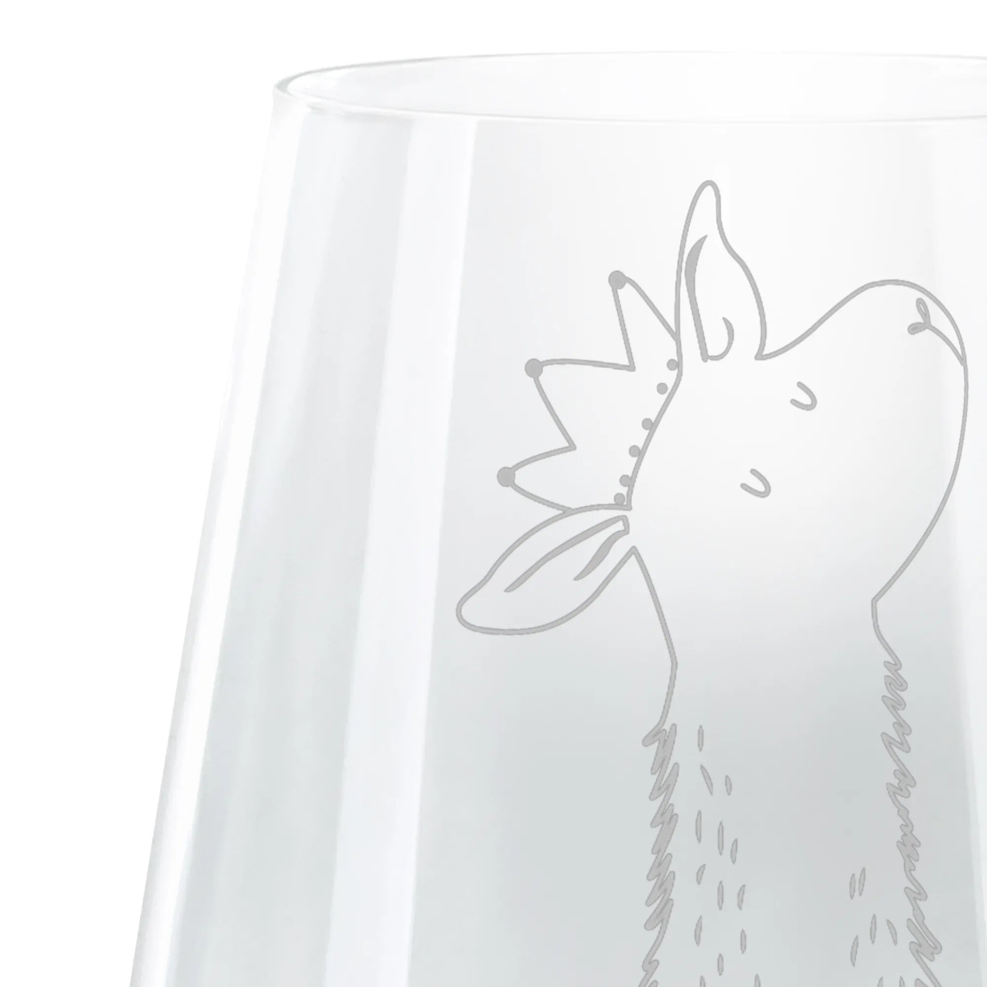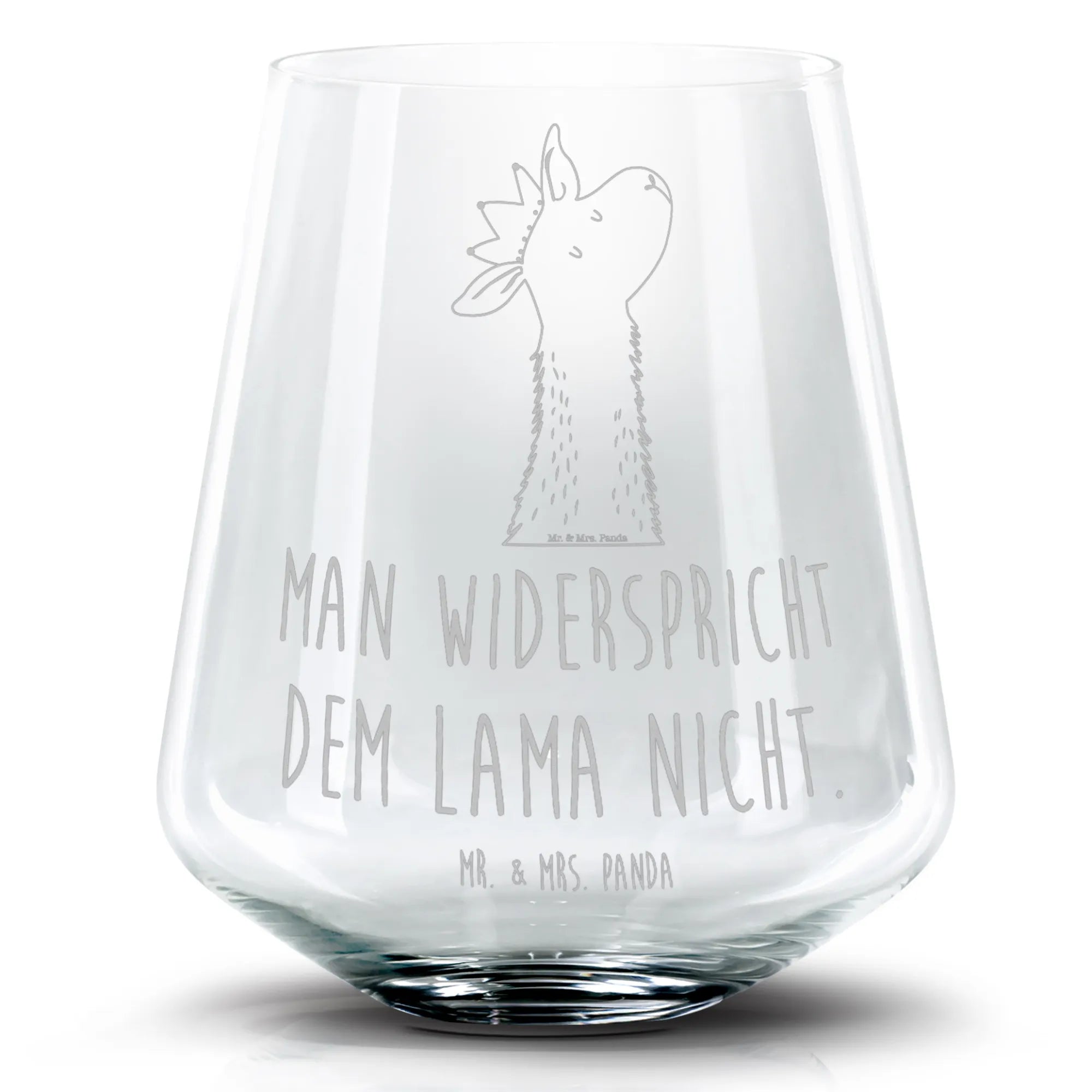 Mit einer Höhe von 103 mm und einem Durchmesser von 88 mm bietet es genug Platz für bis zu 400 ml deines Lieblingsgetränks. Die liebevoll gestaltete Lasergravur zeigt ein niedliches Lama mit einer Krone, das voller Charme und Eleganz ist. Der Spruch „Man widerspricht dem Lama nicht.“ bringt nicht nur ein Lächeln auf die Lippen, sondern macht dieses Glas auch zu einem tollen Gesprächsthema auf jeder Party oder im Büro.