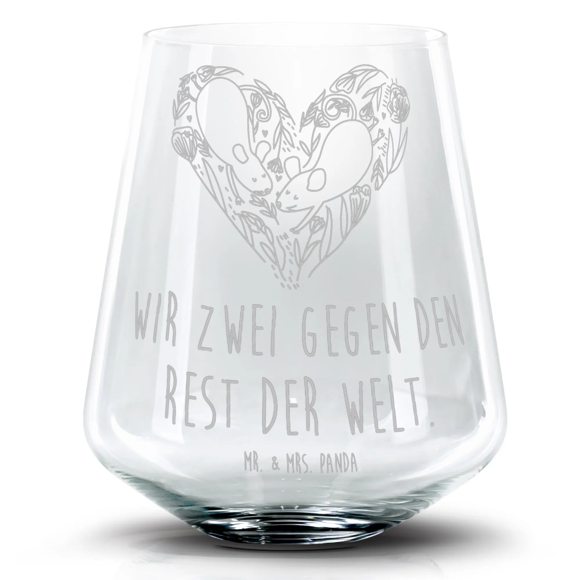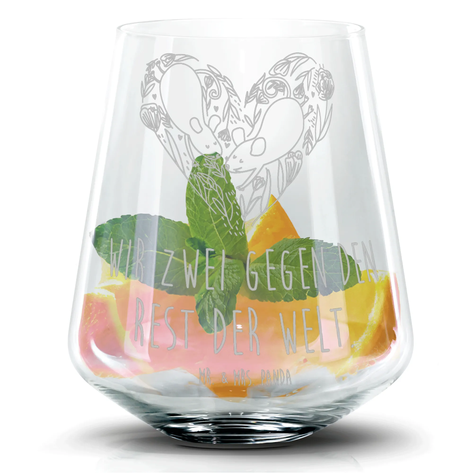 Das liebevolle Design mit zwei niedlichen Mäusen, die ein Herz bilden, drückt die Botschaft aus: "Wir zwei gegen den Rest der Welt." Es ist eine wunderbare Art, zu zeigen, wie sehr du deinen Lieblingsmenschen schätzt. Gefertigt aus robustem Glas, strahlt dieses Glas Eleganz und Qualität aus. Mit einer Füllmenge von 400 ml bietet es ausreichend Platz für erfrischende Drinks oder verführerische Cocktails.