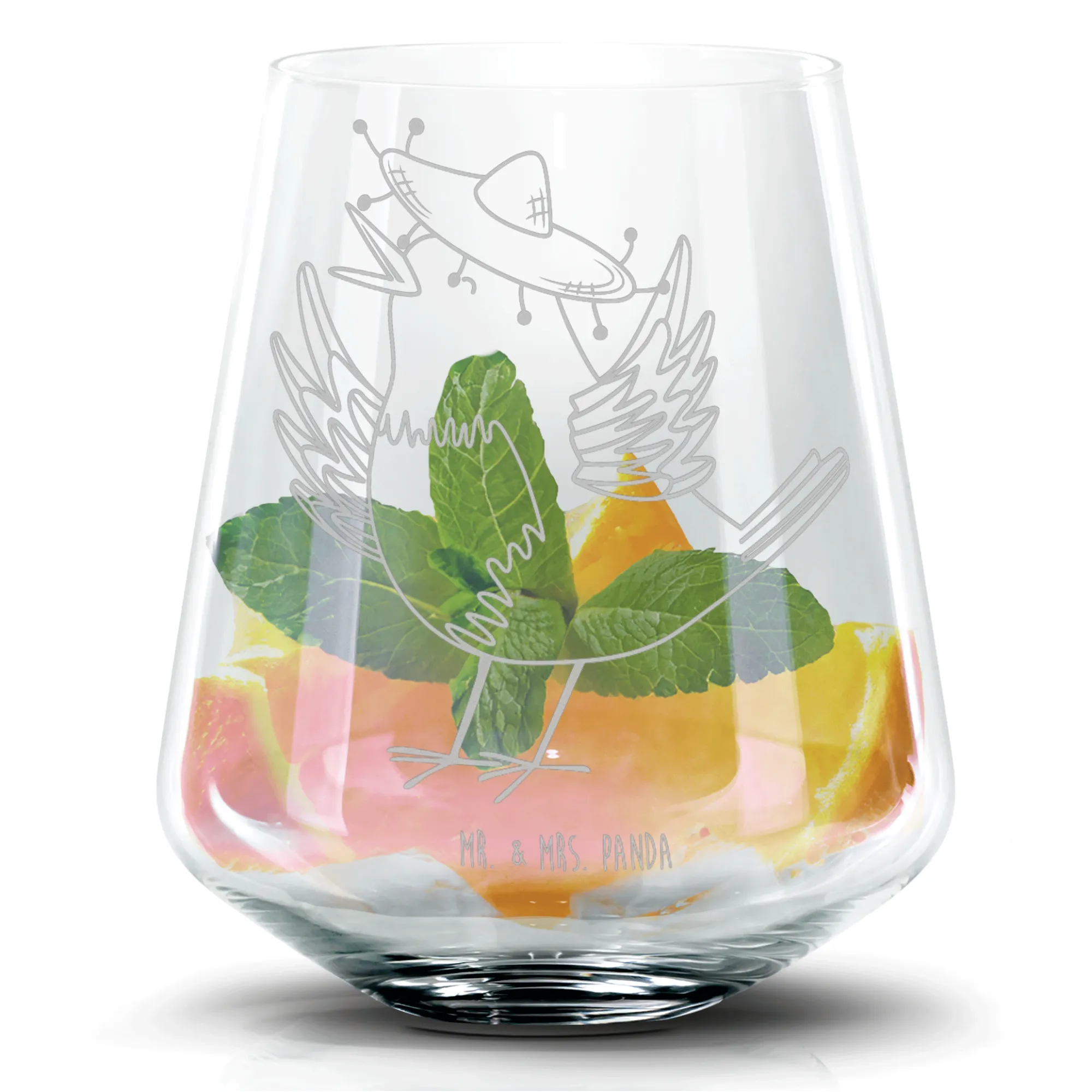 Das Mr. & Mrs. Panda Cocktail Glas "Rabe mit Sombrero" ist das perfekte Geschenk für alle, die das Leben mit einem großen Lächeln genießen! Mit seiner liebevollen Lasergravur und dem farbenfrohen Design bringt dieses Glas die gute Laune direkt auf deinen Tisch. Der ausdrucksstarke Rabe mit dem lustigen Sombrero verkörpert Lebensfreude und ein fröhliches Gemüt, das in keiner Feier fehlen sollte. Dieses stilvolle Cocktail Glas ist ideal für all deine Lieblingscocktails und sorgt dafür, dass jeder Schluck zu einem besonderen Erlebnis wird.