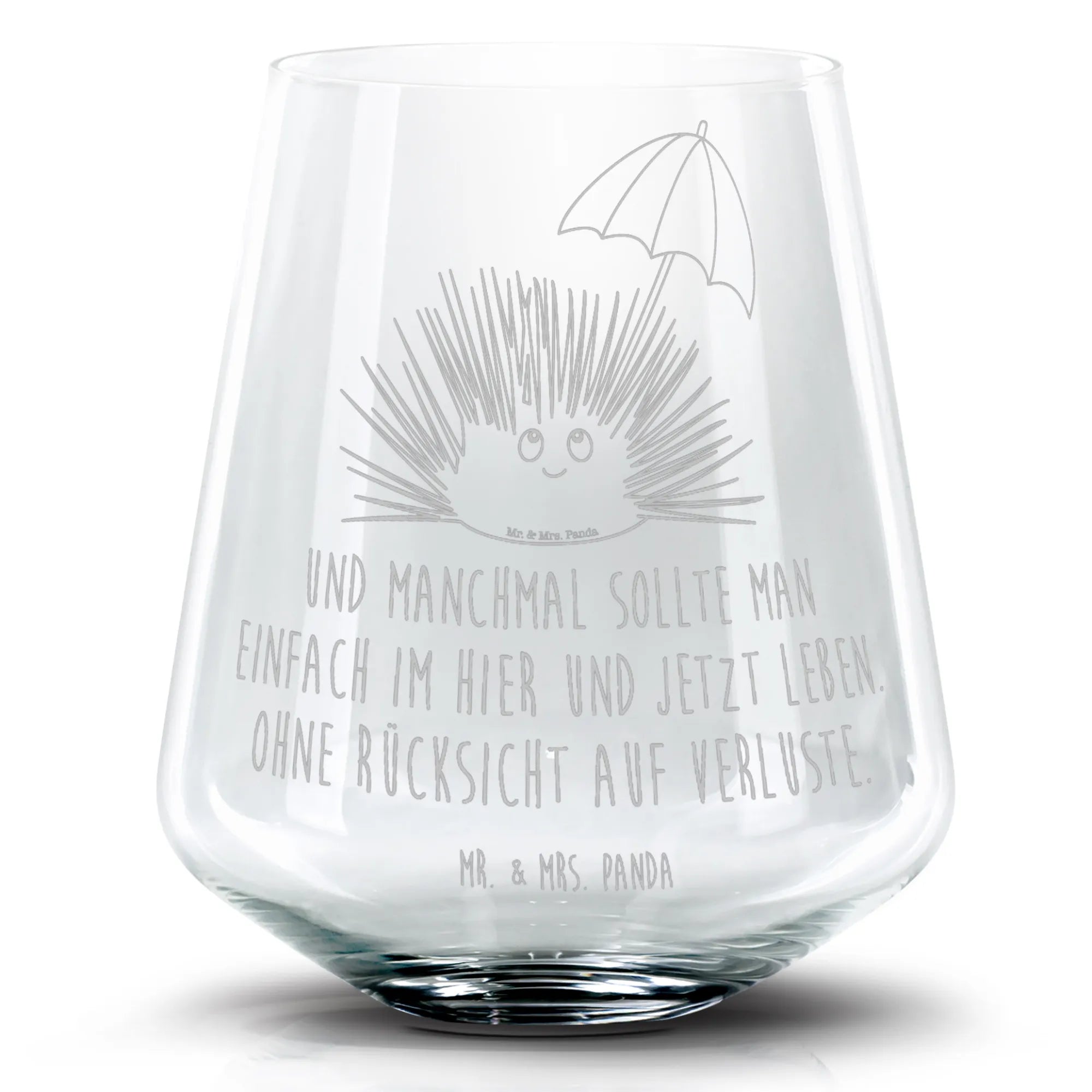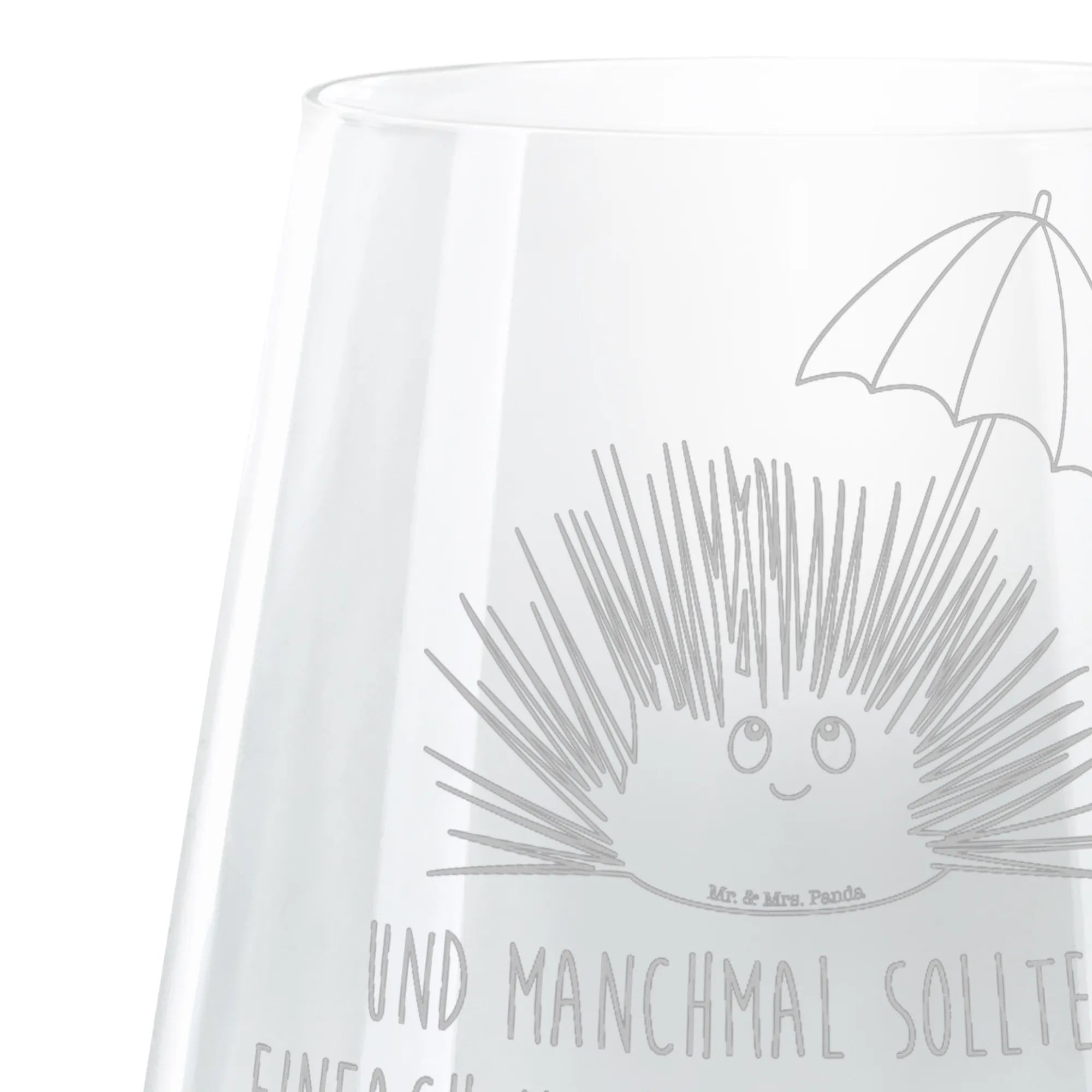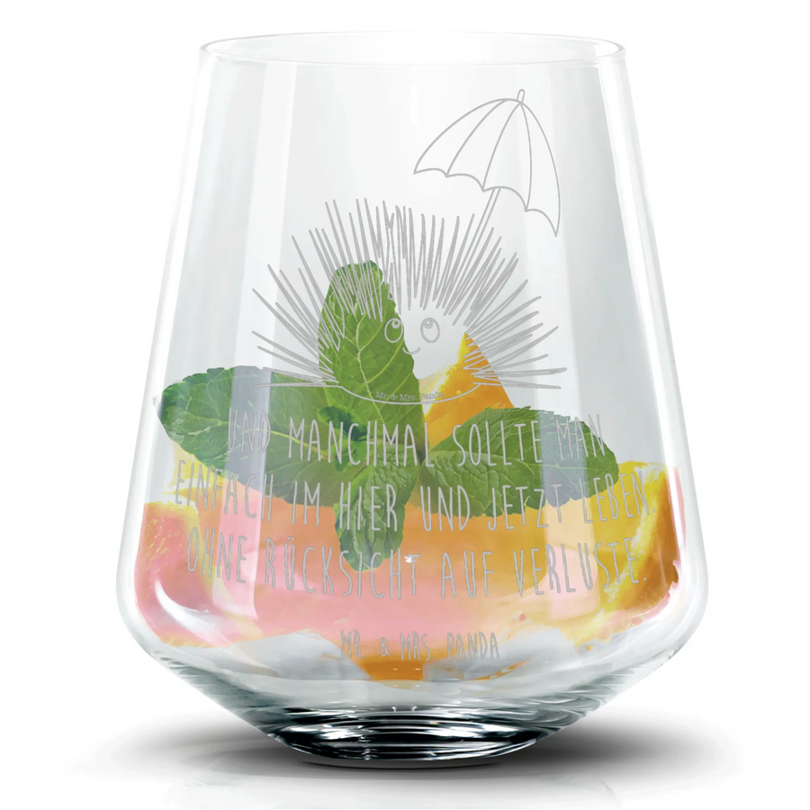 Das Cocktail Glas mit dem niedlichen Seeigel-Motiv von Mr. & Mrs. Panda ist die perfekte Geschenkidee für alle, die das Meer und seine Bewohner lieben! Dieses hochwertige Glas bietet nicht nur Platz für 400 ml deines Lieblingscocktails, sondern auch eine wunderbar liebevoll gestaltete Lasergravur.