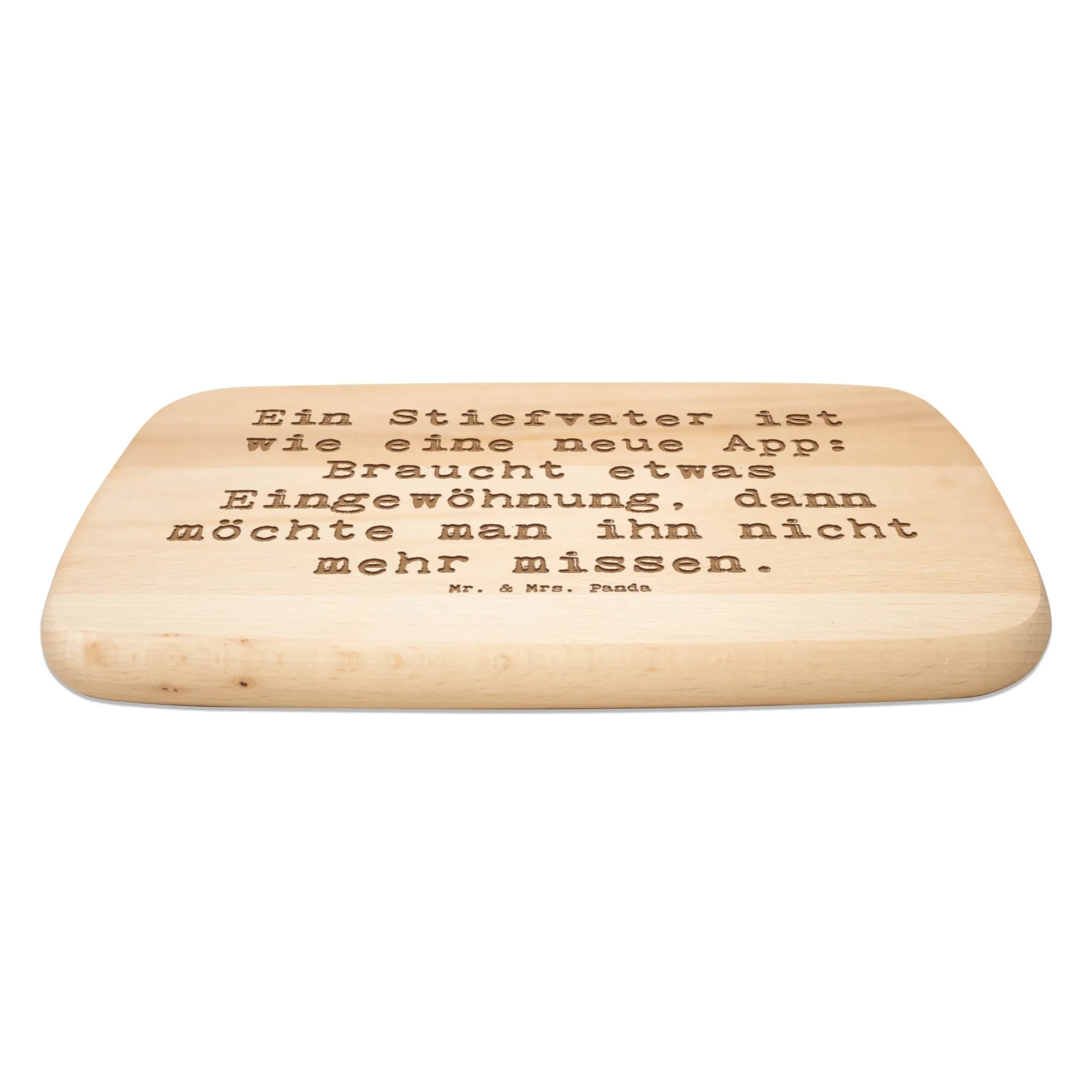 Mit dem charmanten Spruch "Ein Stiefvater ist wie eine neue App: Braucht etwas Eingewöhnung, dann möchte man ihn nicht mehr missen" sorgt es für ein Lächeln bei jedem Frühstück. Das robuste Birkenholz macht das Brett nicht nur optisch ansprechend, sondern auch langlebig und strapazierfähig – perfekt für den täglichen Einsatz in der Küche.