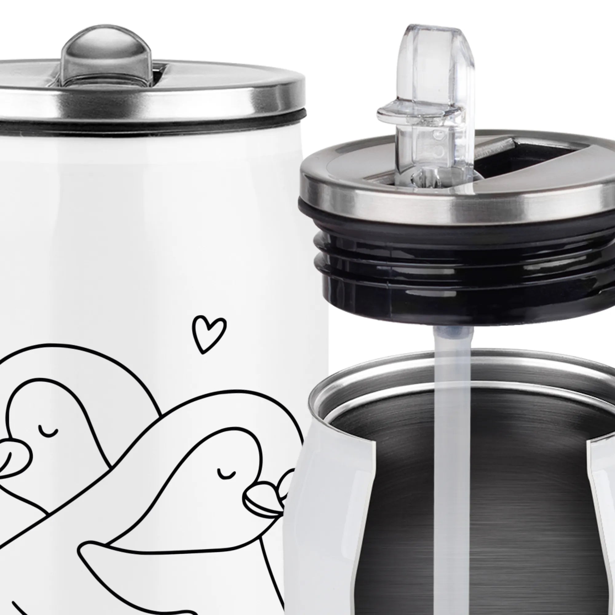 Isolierflasche Pinguine Kuscheln - mit Spruch