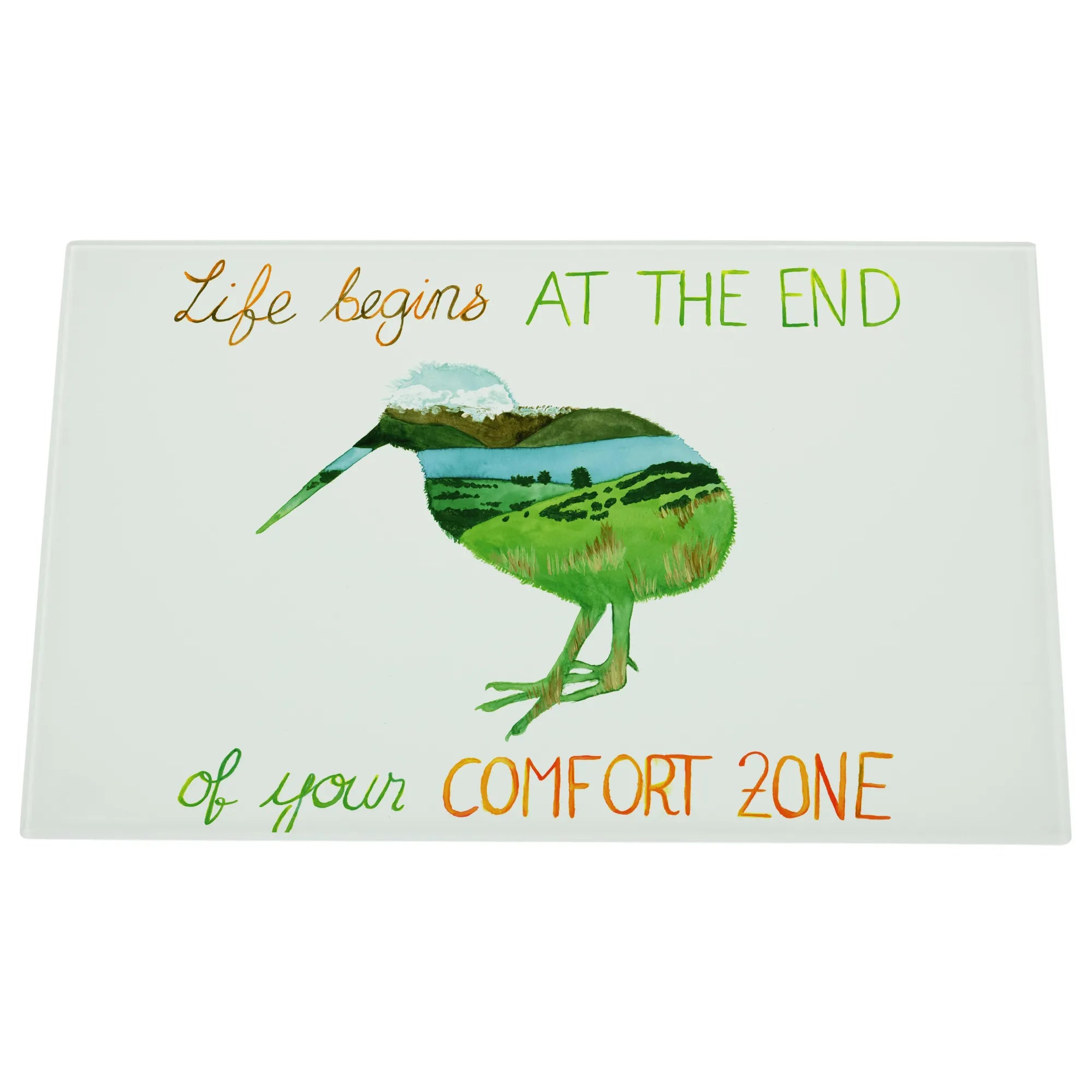 Das Medium Glas Schneidbrett 'Kiwi Neuseeland' aus der Kollektion Wild & Free ist das perfekte Geschenk für alle Naturliebhaber und Abenteuerfreunde! Dieses einzigartige und robuste Schneidebrett ist nicht nur funktional, sondern bringt auch ein Stück Neuseeland in Deine Küche. Mit seinem detailreichen Aquarell-Motiv des Kiwivogels und den inspirierenden Worten 'Life begins at the end of your comfort zone' motiviert es nicht nur während des Kochens, sondern auch im Alltag.
