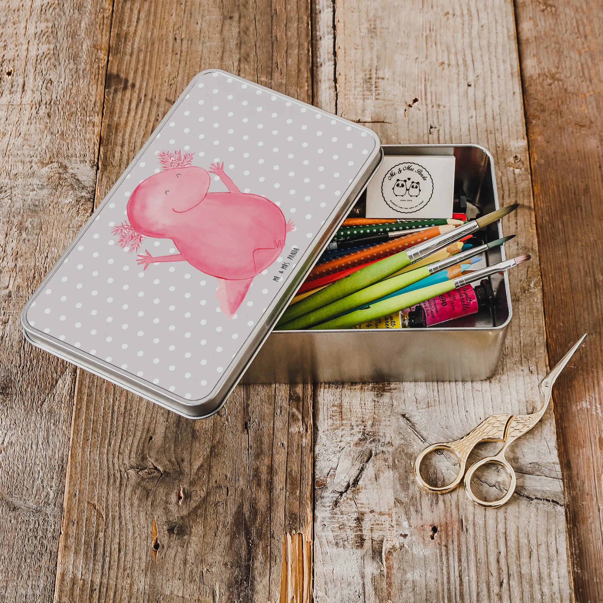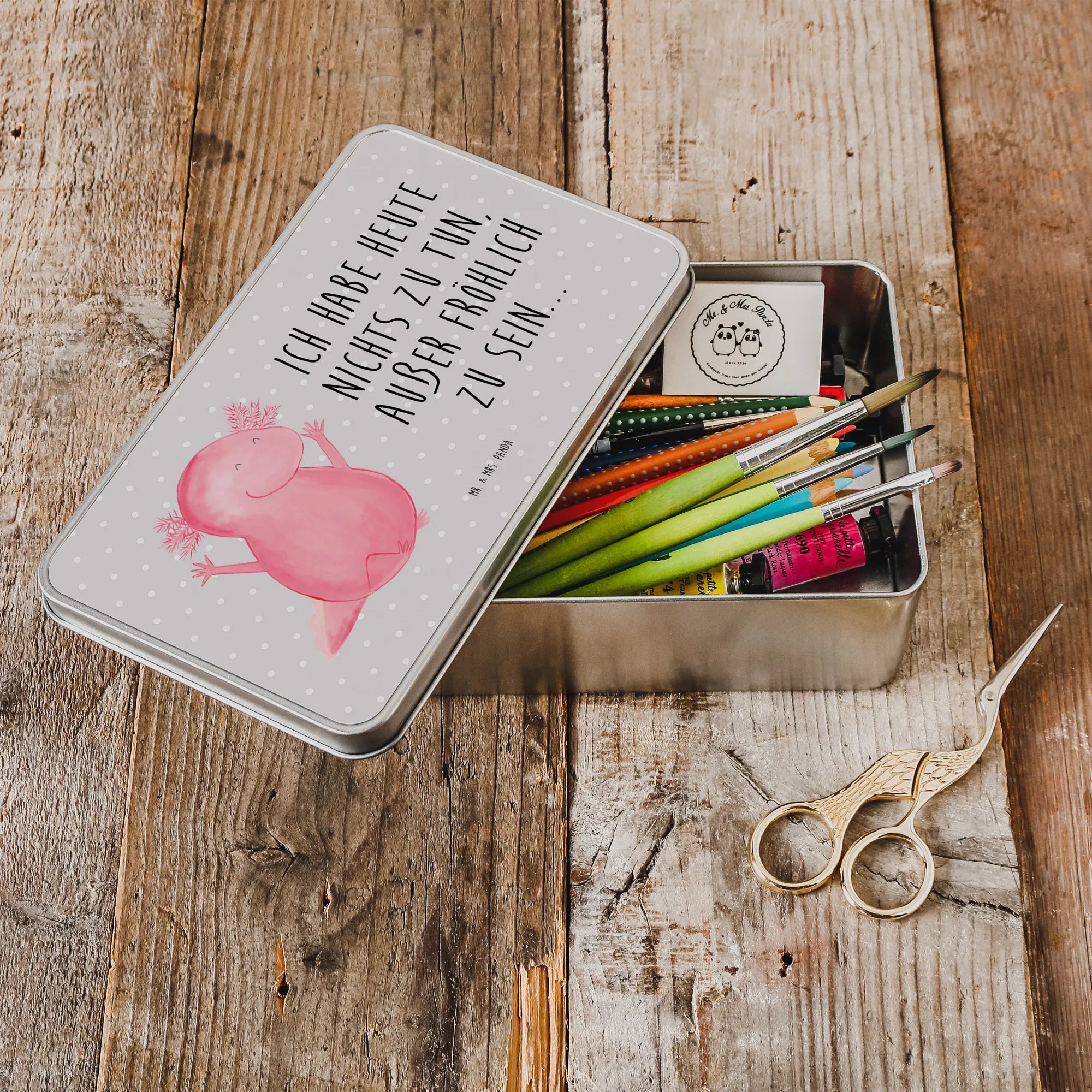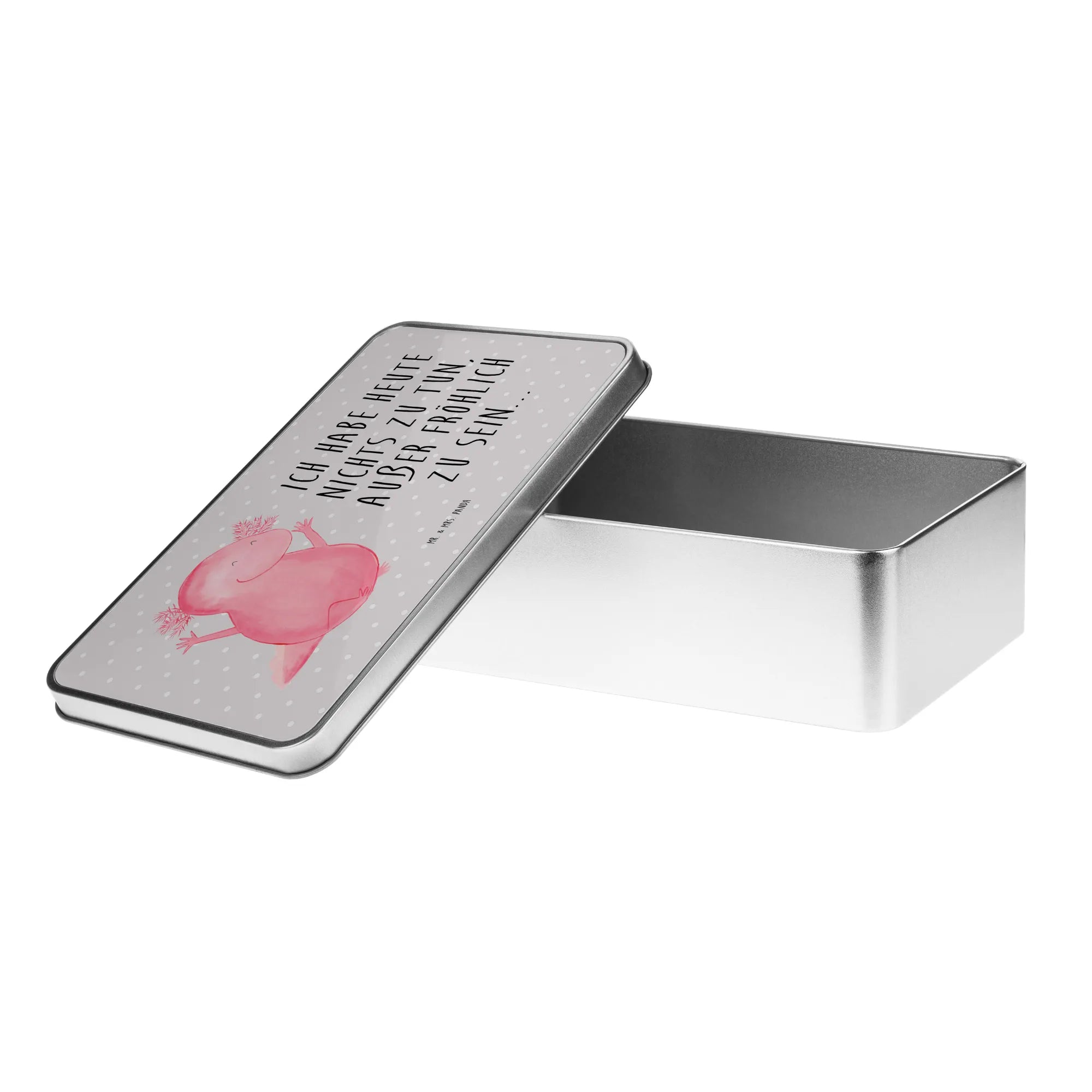 Entdecke die bezaubernde Metalldose rechteckig mit dem fröhlichen Axolotl Hurra Motiv von Mr. & Mrs. Panda! Diese wunderschöne Dose ist nicht nur ein echter Hingucker, sondern auch super praktisch. Perfekt geeignet als Keksdose oder als Aufbewahrungsbox für all deine kleinen Schätze und Erinnerungen! Mit ihren lebhaften Farben und dem beschwingten Axolotl-Design zaubert sie jedem ein Lächeln ins Gesicht.