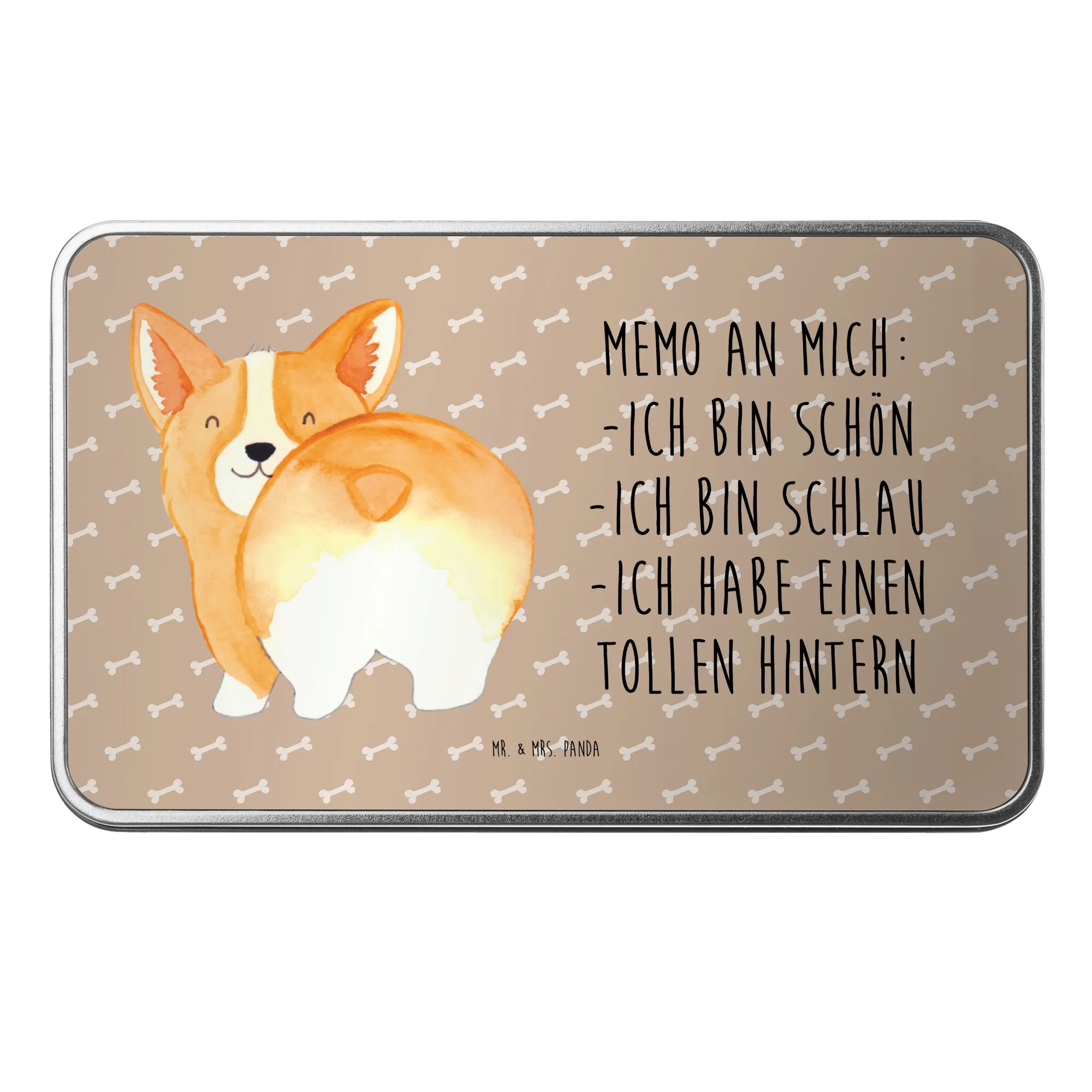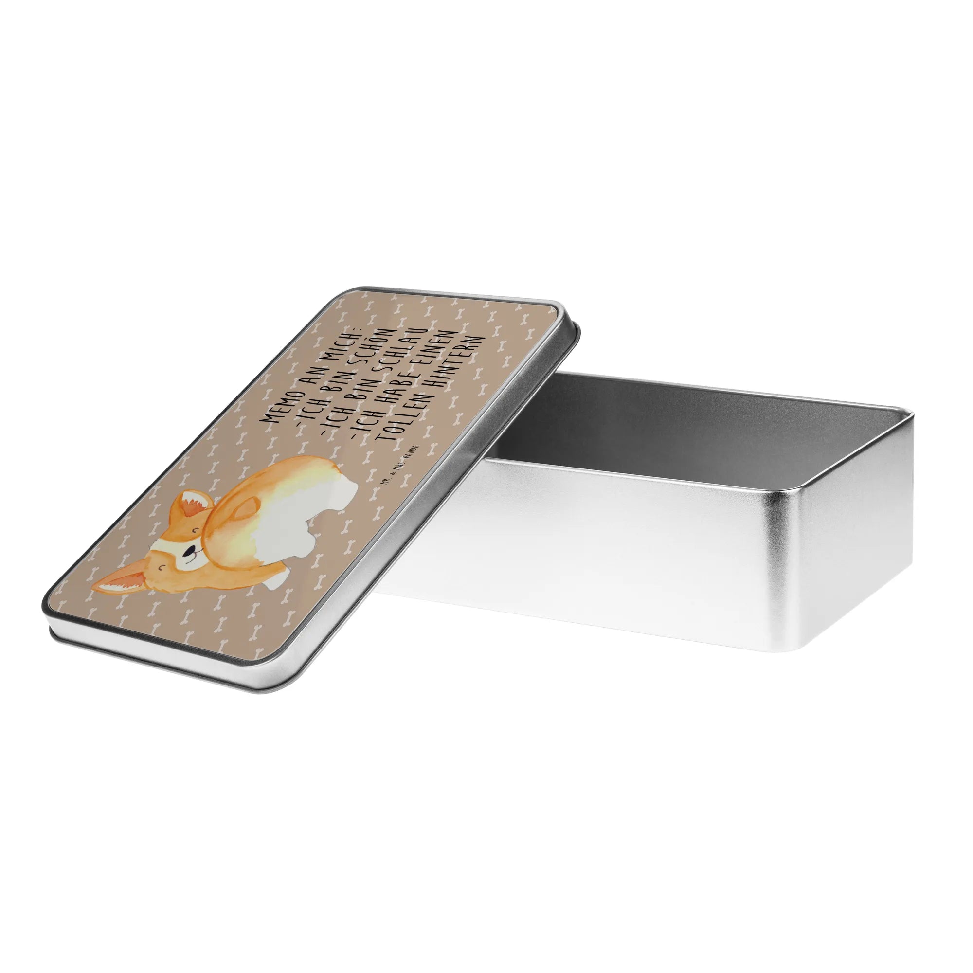Die wunderschöne rechteckige Metalldose von Mr. & Mrs. Panda mit dem niedlichen Corgie Po-Motiv ist das perfekte Geschenk für alle Tierliebhaber und Hundebesitzer!