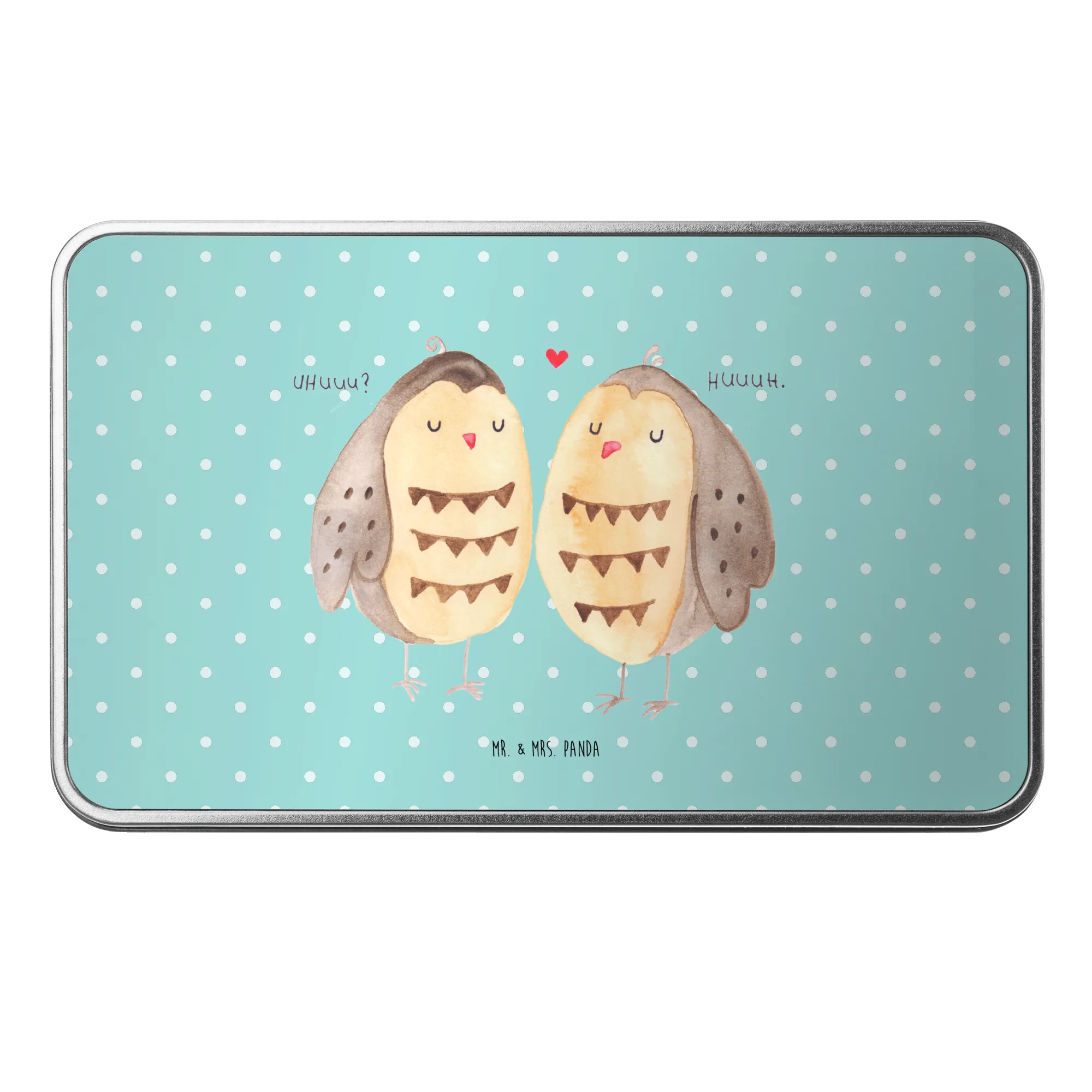 Entdecke die zauberhafte Metalldose rechteckig mit dem Motiv Eule Liebe von Mr. & Mrs. Panda. Diese hübsche Dose ist nicht nur ein praktischer Aufbewahrungsort für Kekse und andere Leckereien, sondern auch ein wunderschönes Wohnaccessoire.