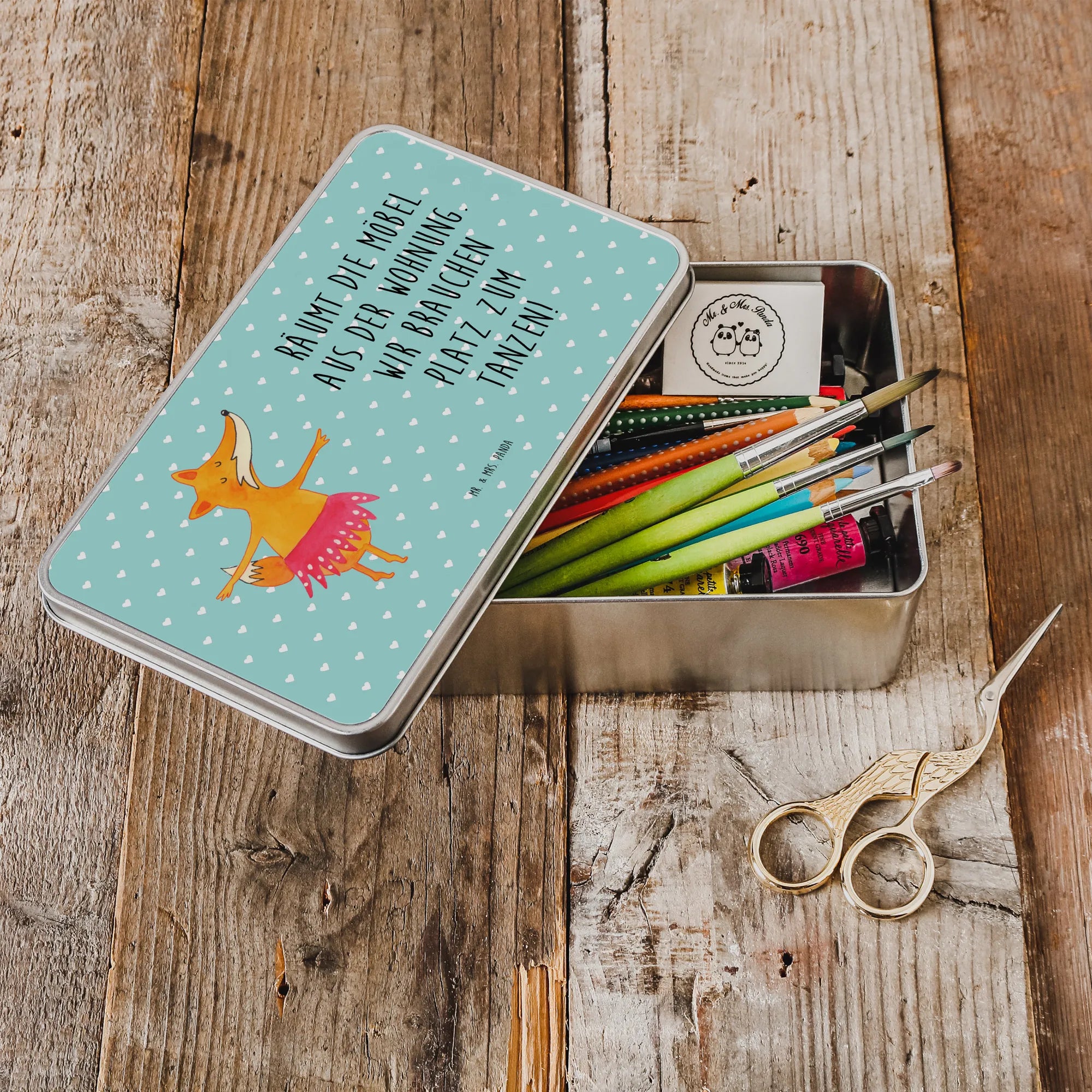 Die wunderschöne rechteckige Metalldose mit dem bezaubernden Motiv 'Fuchs Ballerina' ist ein echtes Must-Have für alle, die das Besondere lieben! Mit einem einzigartigen Design, das mit viel Liebe von Mr. & Mrs. Panda entworfen wurde, bringt diese Dose das Gefühl von Leichtigkeit in Deinen Alltag. Der fröhliche Fuchs, der elegant in einer Ballerina-Pose tanzt, zaubert nicht nur ein Lächeln auf Dein Gesicht, sondern eignet sich auch hervorragend als praktischer Begleiter im Alltag.