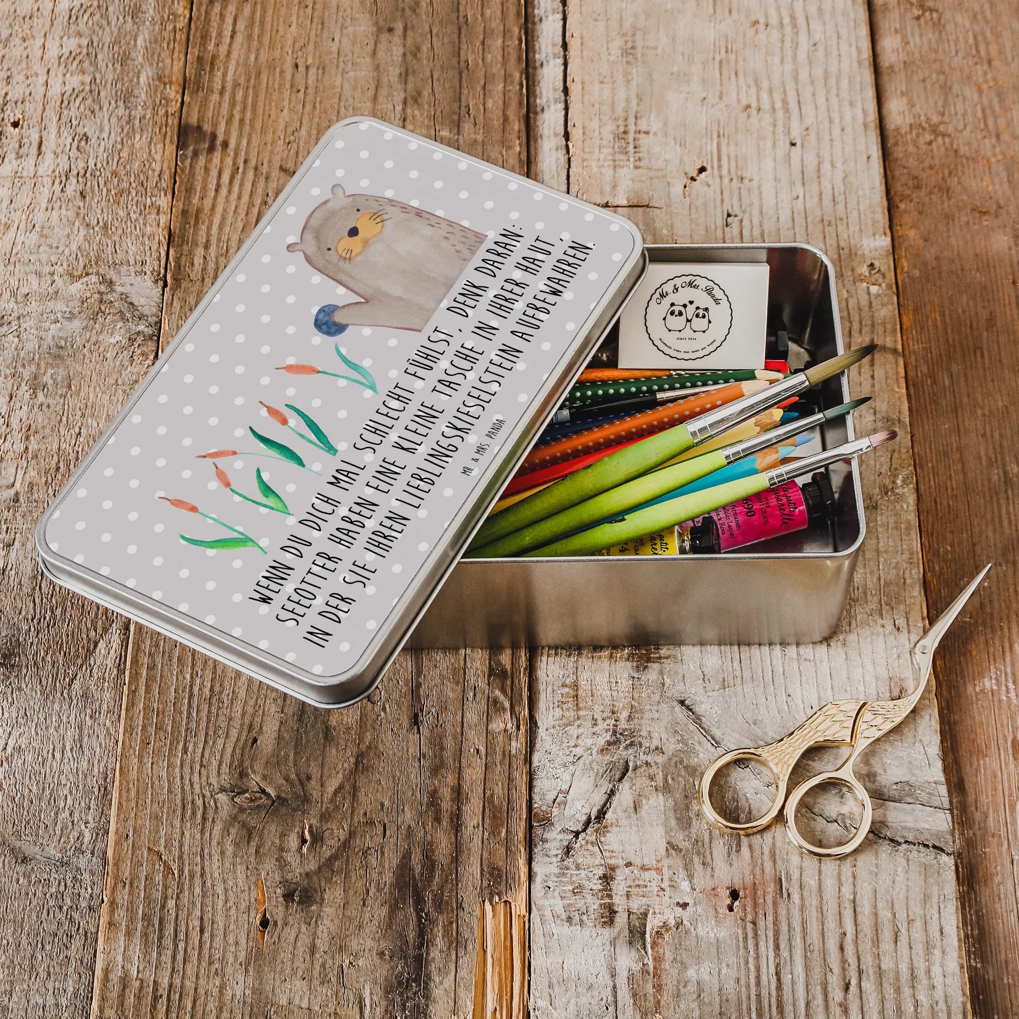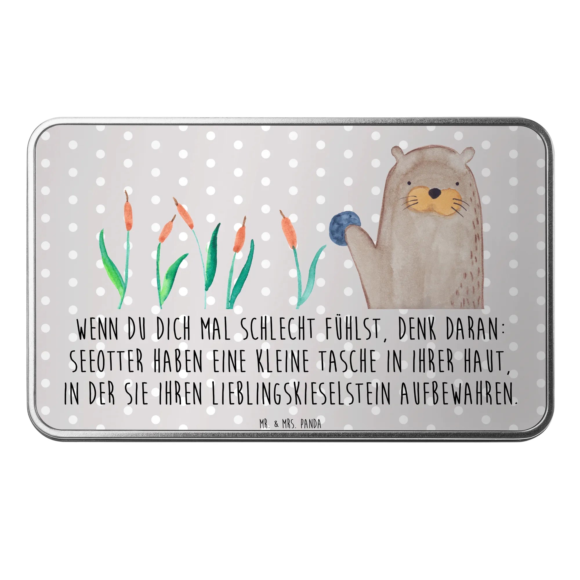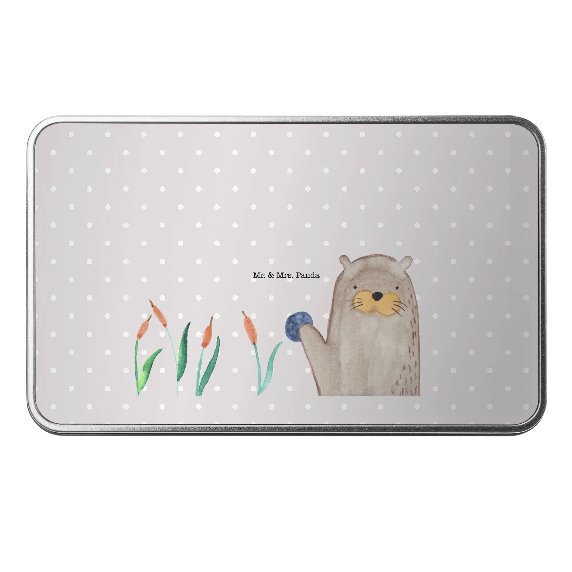 Entdecke die wunderbare Metalldose rechteckig mit einem fröhlichen Otter-Motiv aus der Otter - Kollektion von Mr. & Mrs. Panda!