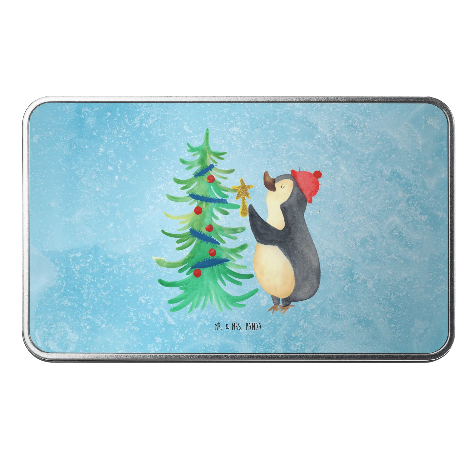 Entdecke die zauberhafte Metalldose rechteckig mit dem niedlichen Pinguin Weihnachtsbaum aus unserer Winter Kollektion von Mr. & Mrs. Panda. Diese wunderschöne Metalldose ist nicht nur ein praktischer Behälter für Kekse, sondern auch ein ideales Wohnaccessoire zur dekorativen Aufbewahrung von Erinnerungen und kleinen Schätzen. Das liebevoll handgezeichnete Motiv von Mrs. Panda zeigt einen fröhlichen Pinguin, der sich um einen glitzernden Weihnachtsbaum kümmert und verbreitet somit Weihnachtsstimmung pur!