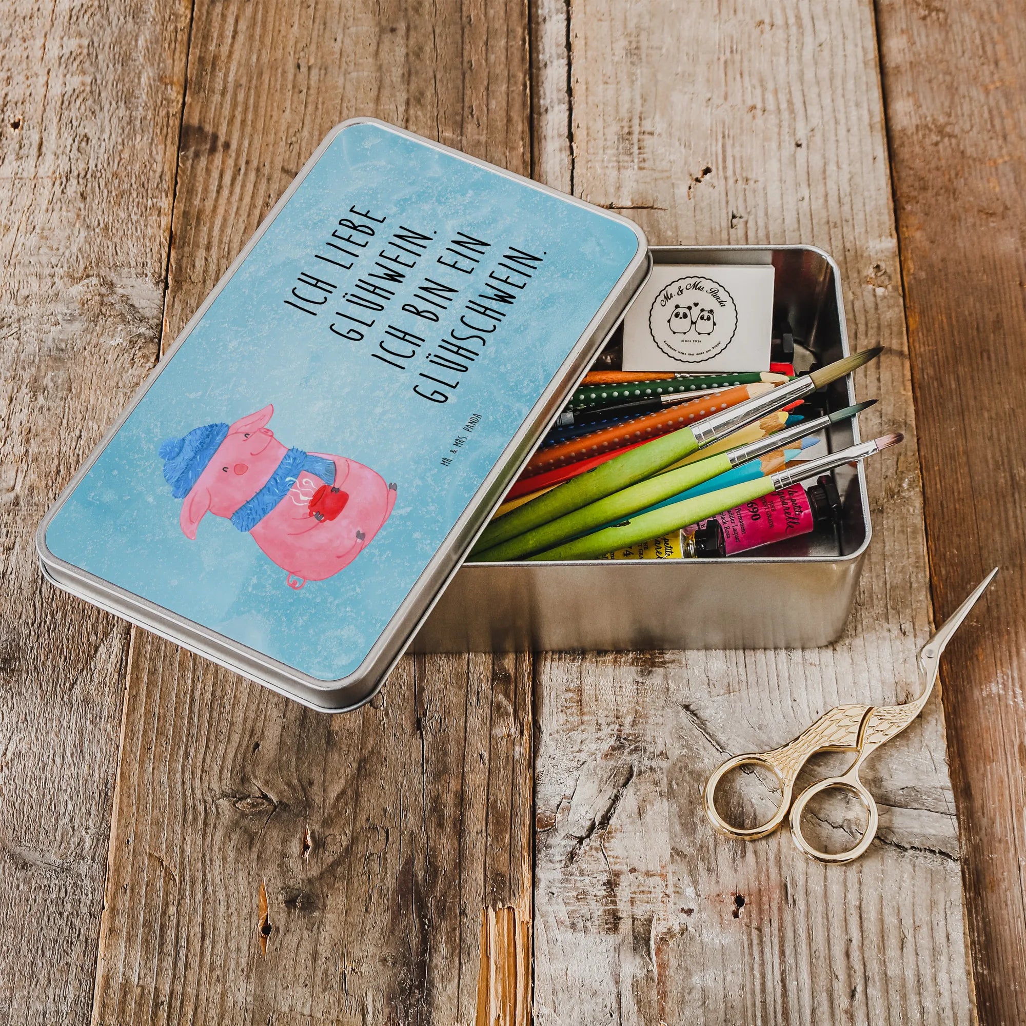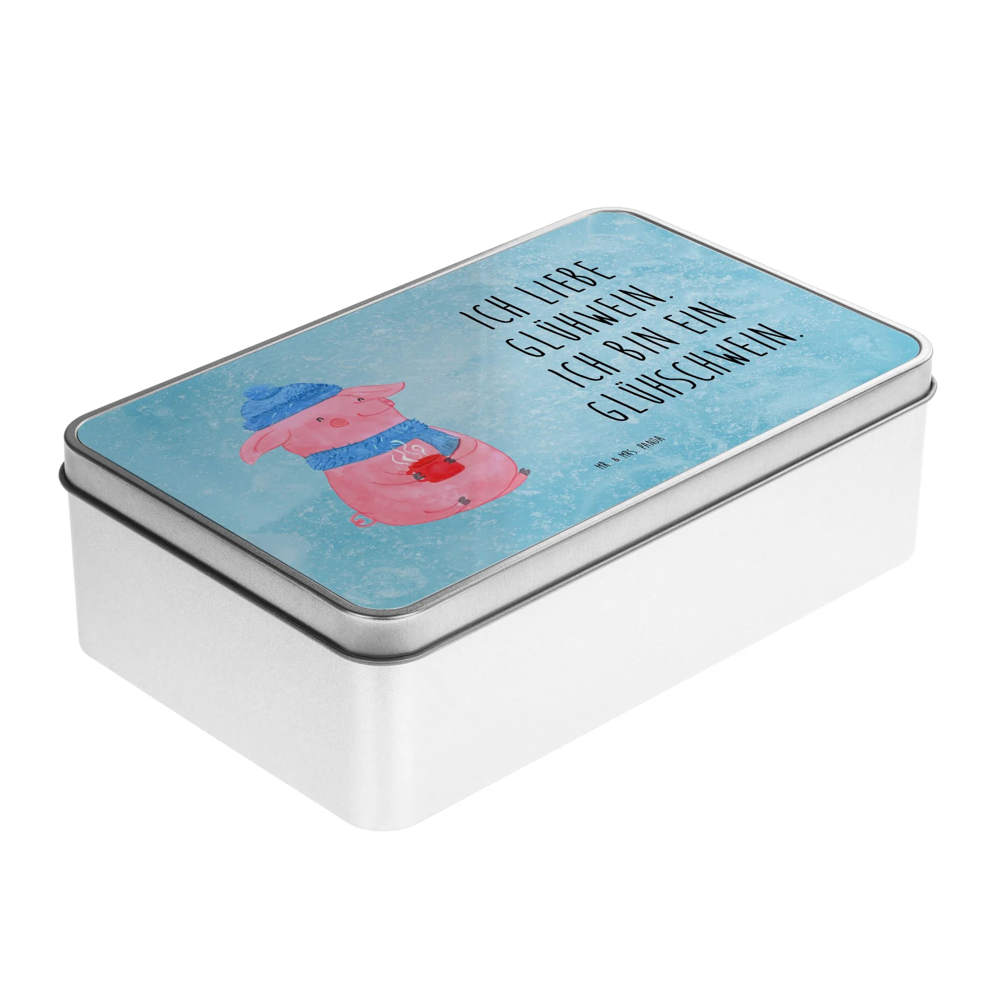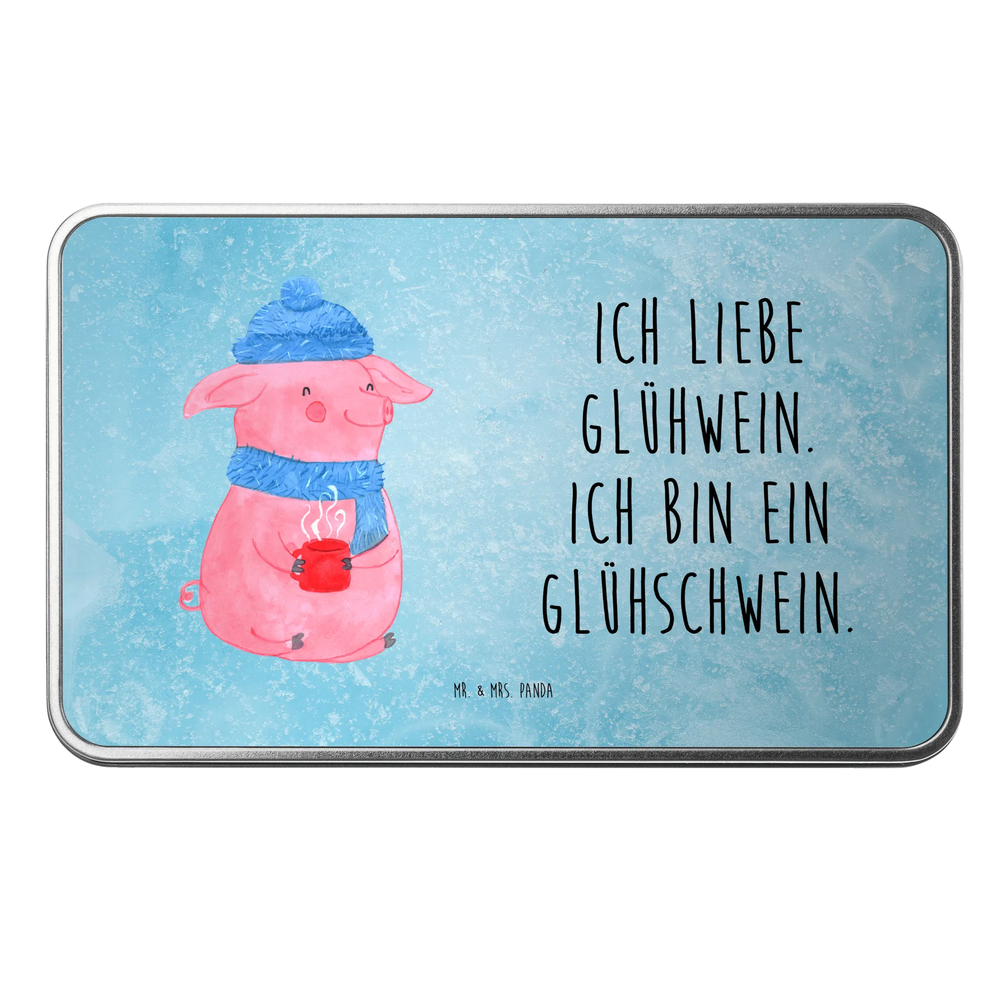 Die rechteckige Metalldose mit dem fröhlichen Glühschwein-Motiv ist nicht nur ein Blickfang, sondern auch der perfekte Begleiter für die gemütliche Winterzeit!