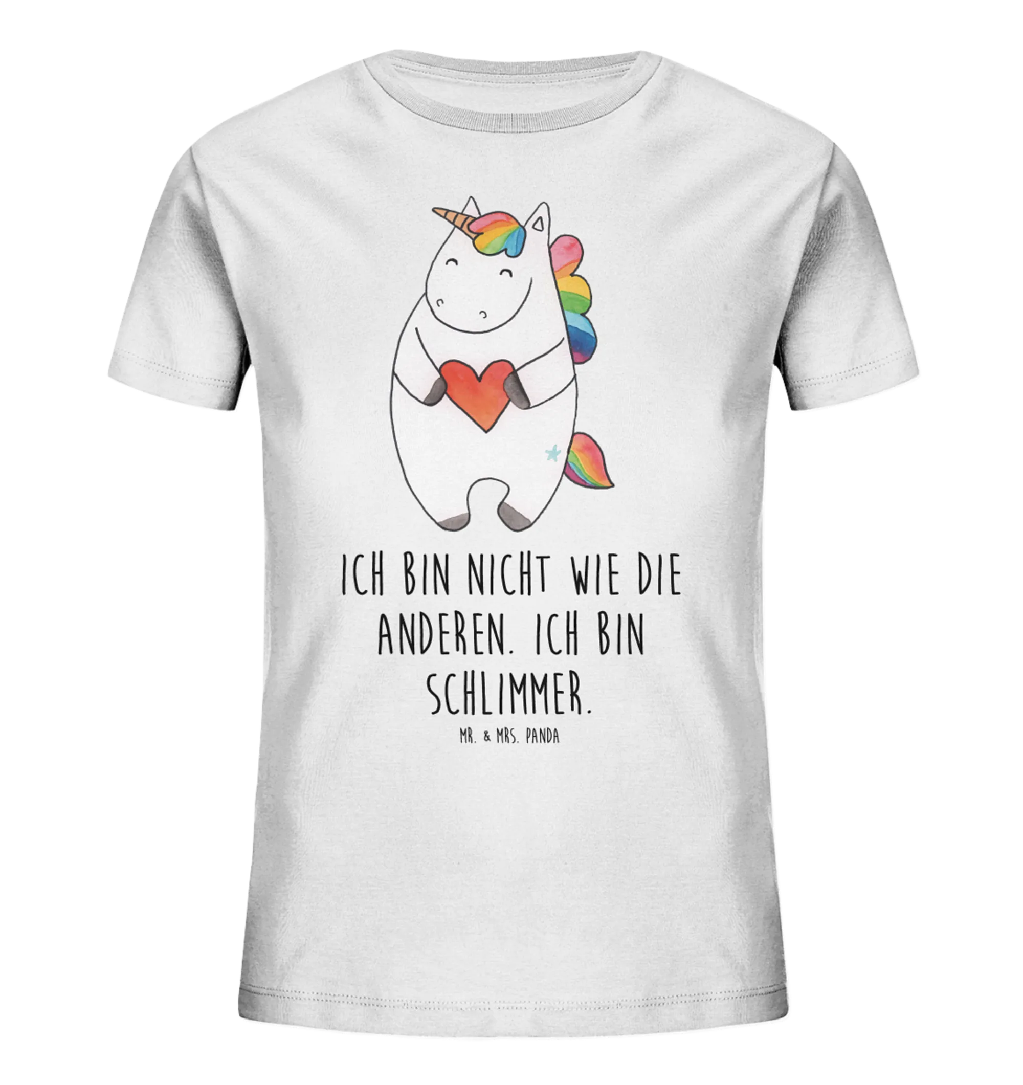 Wer ein kindgerechtes und gleichzeitig cooles T-Shirt sucht, ist mit diesem Design bestens bedient. Das Einhorn Herz Motiv ist ideal für die kleinen Individualisten, die sich von der Masse abheben wollen. Hiermit zeigst Du: "Ich bin nicht wie die Anderen, ich bin schlimmer!" – ein Spruch der besonders für kleine Abenteurer wie Deine Kinder bestens passt!