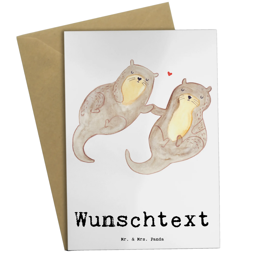Die zwei süßen Otter, die sich an den Händen halten, bringen sofort ein Lächeln auf das Gesicht deines Lieblings. Die Karte wird individuell mit deinem Wunschnamen oder -text auf der Vorderseite bedruckt und wird so zu einem ganz besonderen Unikat.