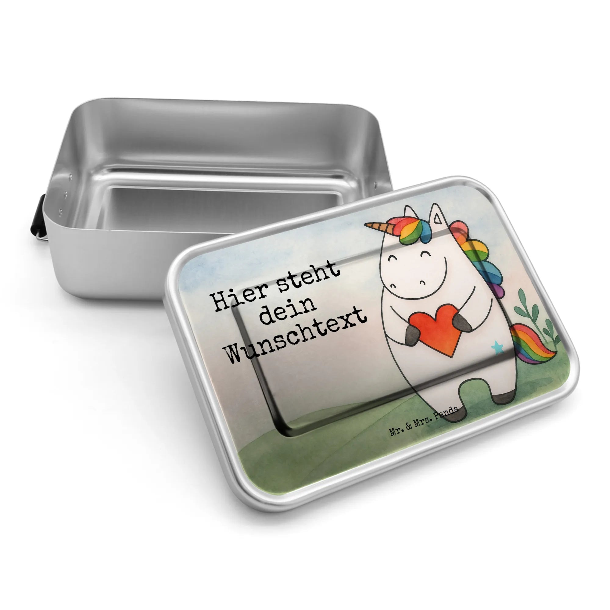Personalisierte Metall Brotdose Einhorn Herz Design