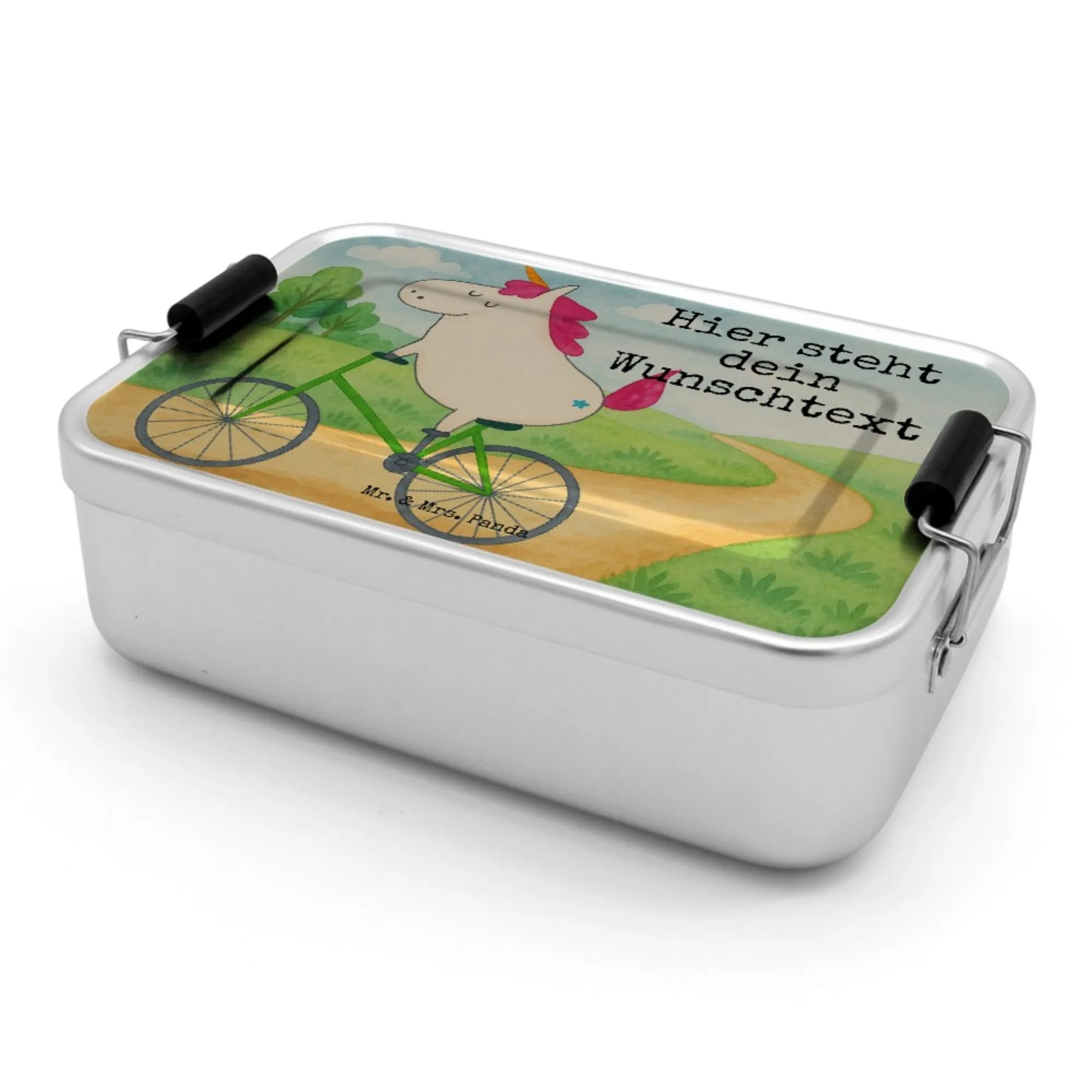Personalisierte Vesperdose Einhorn Radfahrer Design - Rot Pastell