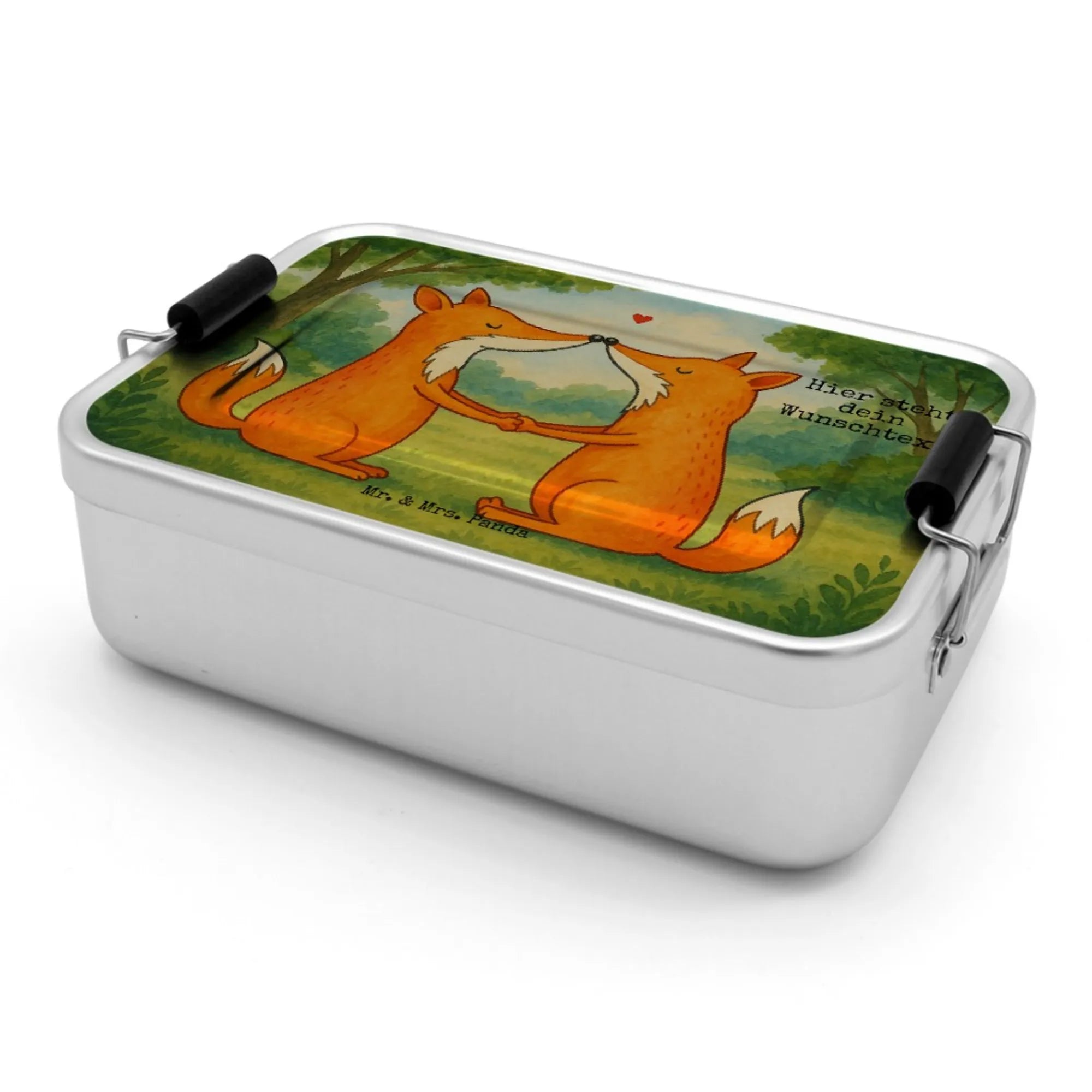 Brotbox personalisiert Füchse Liebe Design - Türkis Pastell