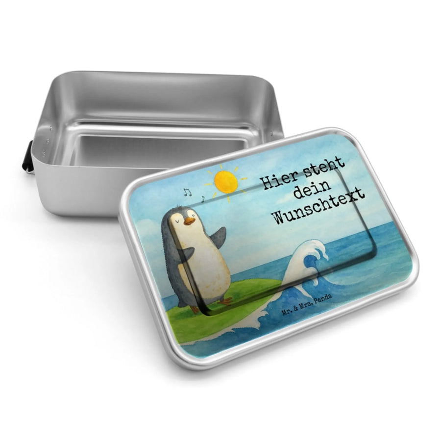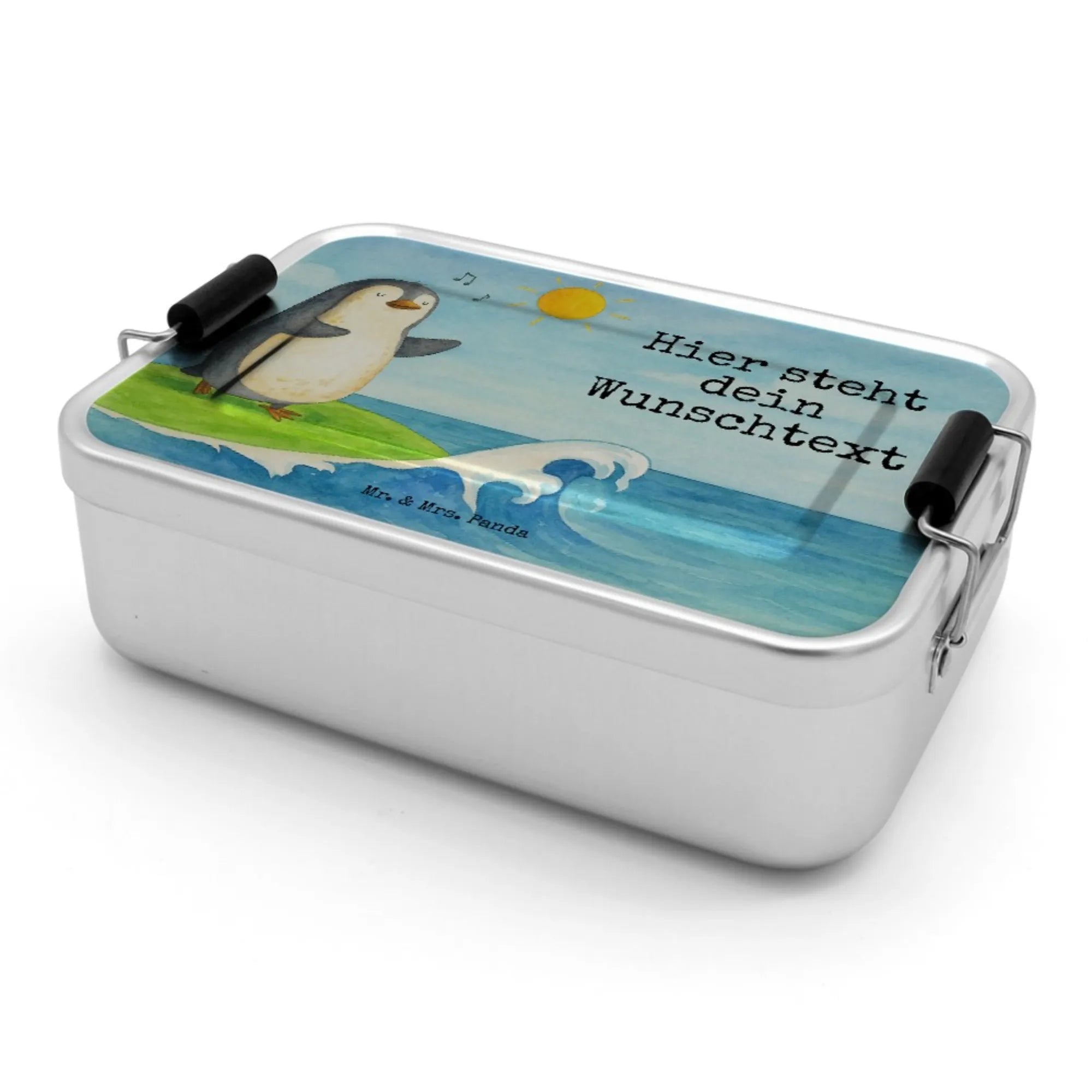 Personalisierte Metall Brotdose „Pinguin Surfer“ von Mr. & Mrs. Panda