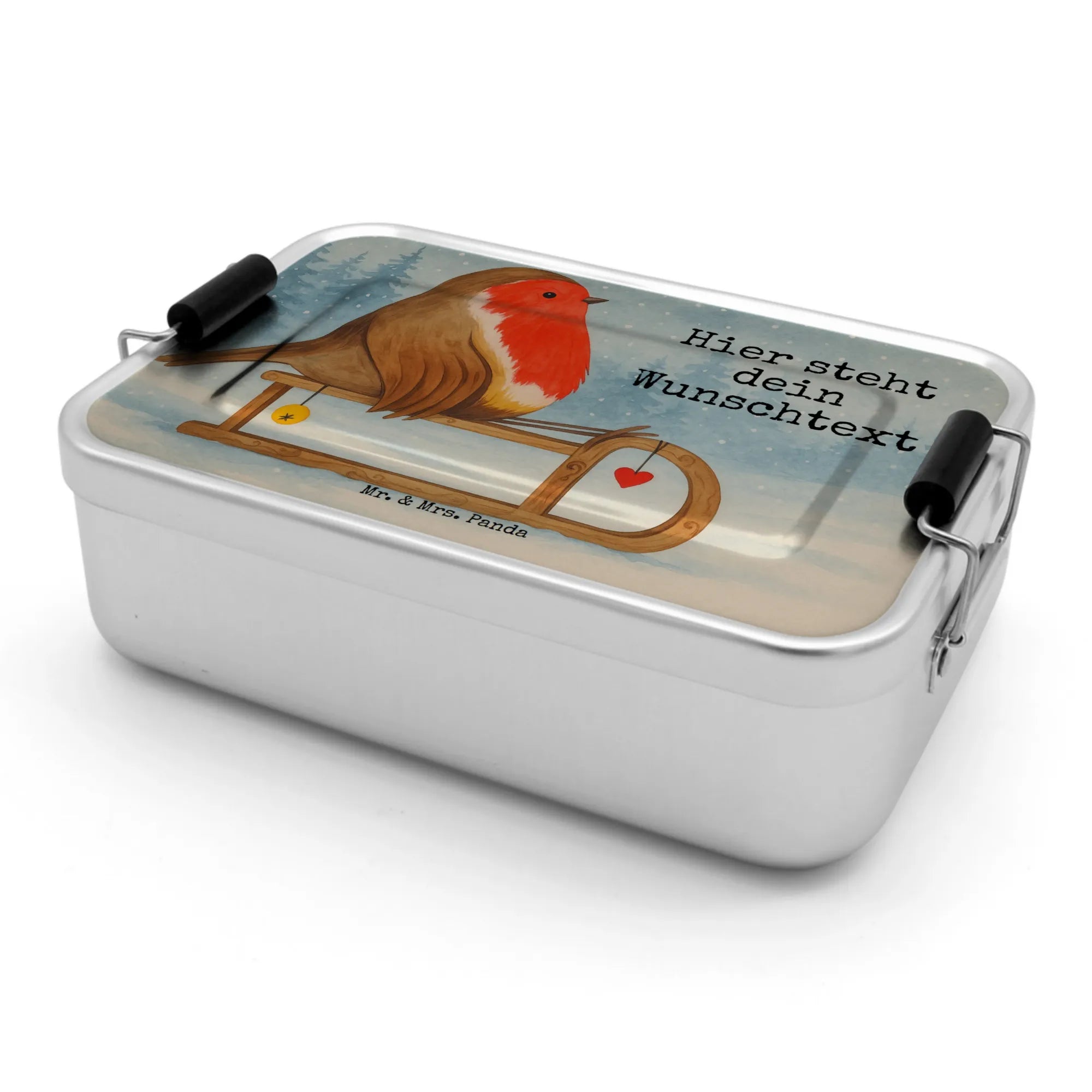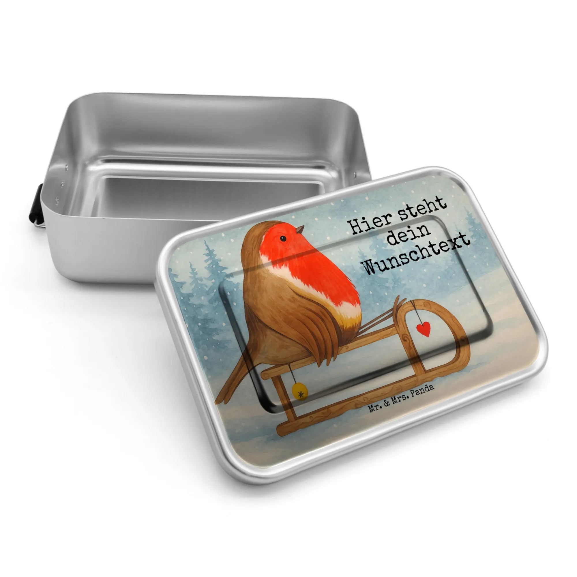 Personalisierte Metall Brotdose Rotkehlchen Schlitten Design – Mr. & Mrs. Panda