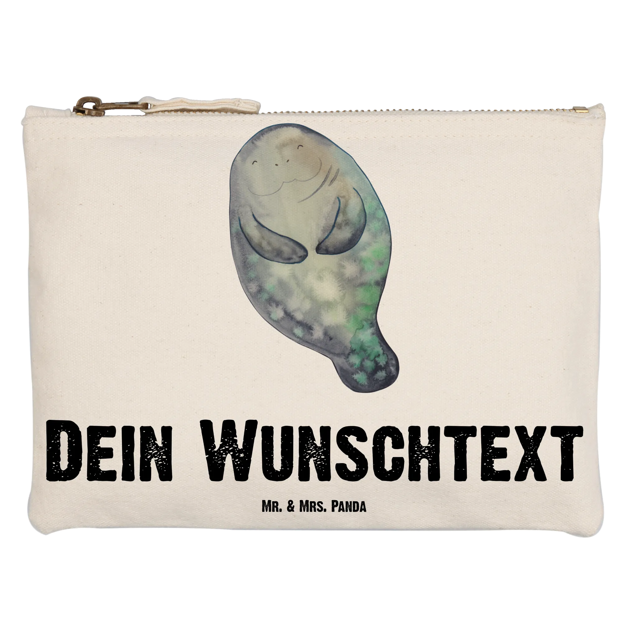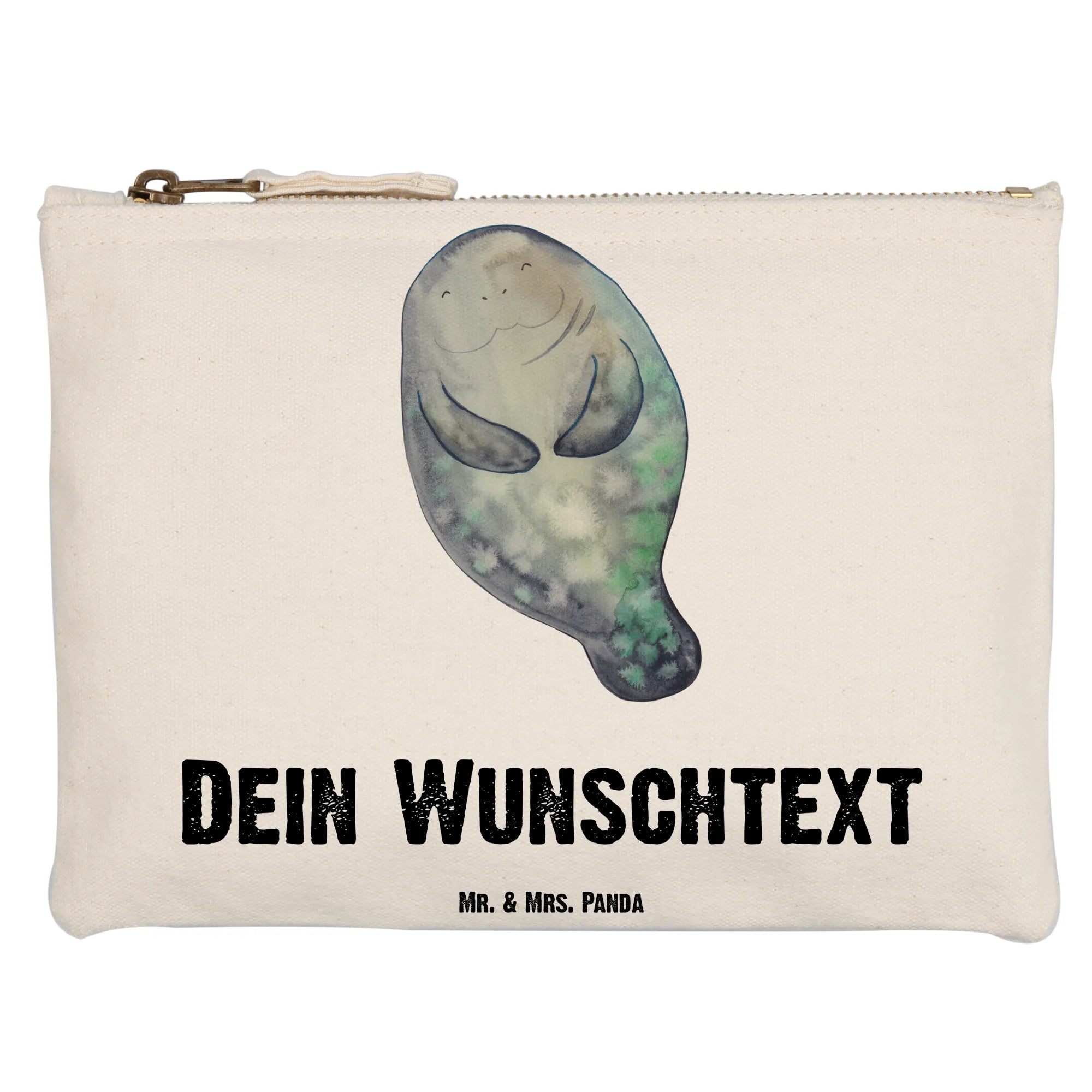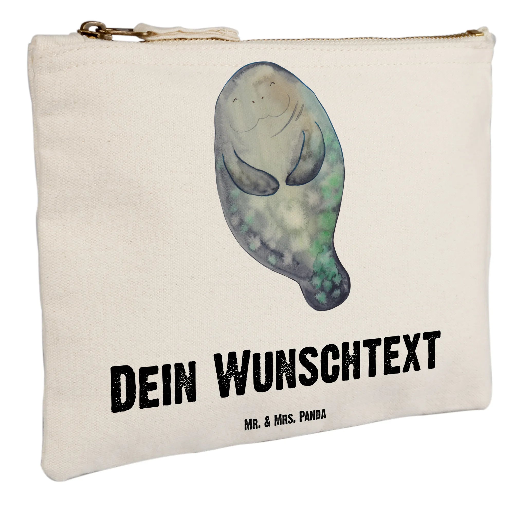 Die personalisierte Schminktasche Seekuh happy von Mr. & Mrs. Panda ist das perfekte Geschenk für alle, die das Leben in vollen Zügen genießen möchten! Diese niedliche Kosmetiktasche ist nicht nur praktisch, sondern auch ein echter Blickfang!