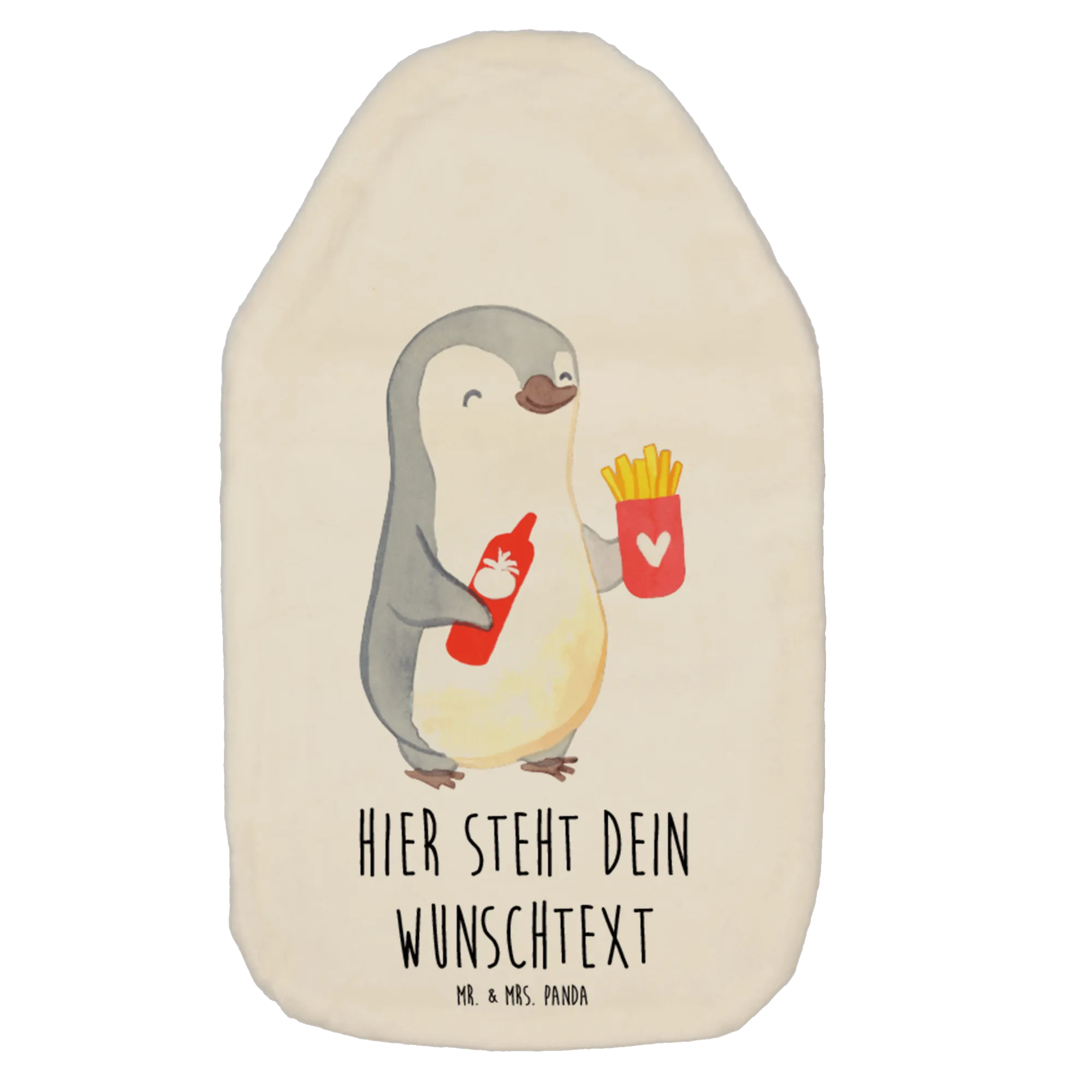 Die personalisierte Wärmflasche mit dem süßen Pinguin Pommes Motiv aus der Liebe Kollektion von Mr. & Mrs. Panda ist das perfekte Geschenk für all jene, die ihren Liebsten eine Freude machen möchten. Ob zum Valentinstag, Jahrestag oder einfach so – diese Wärmflasche ist ein liebevoller Begleiter für kuschelige Stunden. Sie sorgt mit einer Füllmenge von 800 ml für stundenlange, mollige Wärme, die das Herz erwärmt.