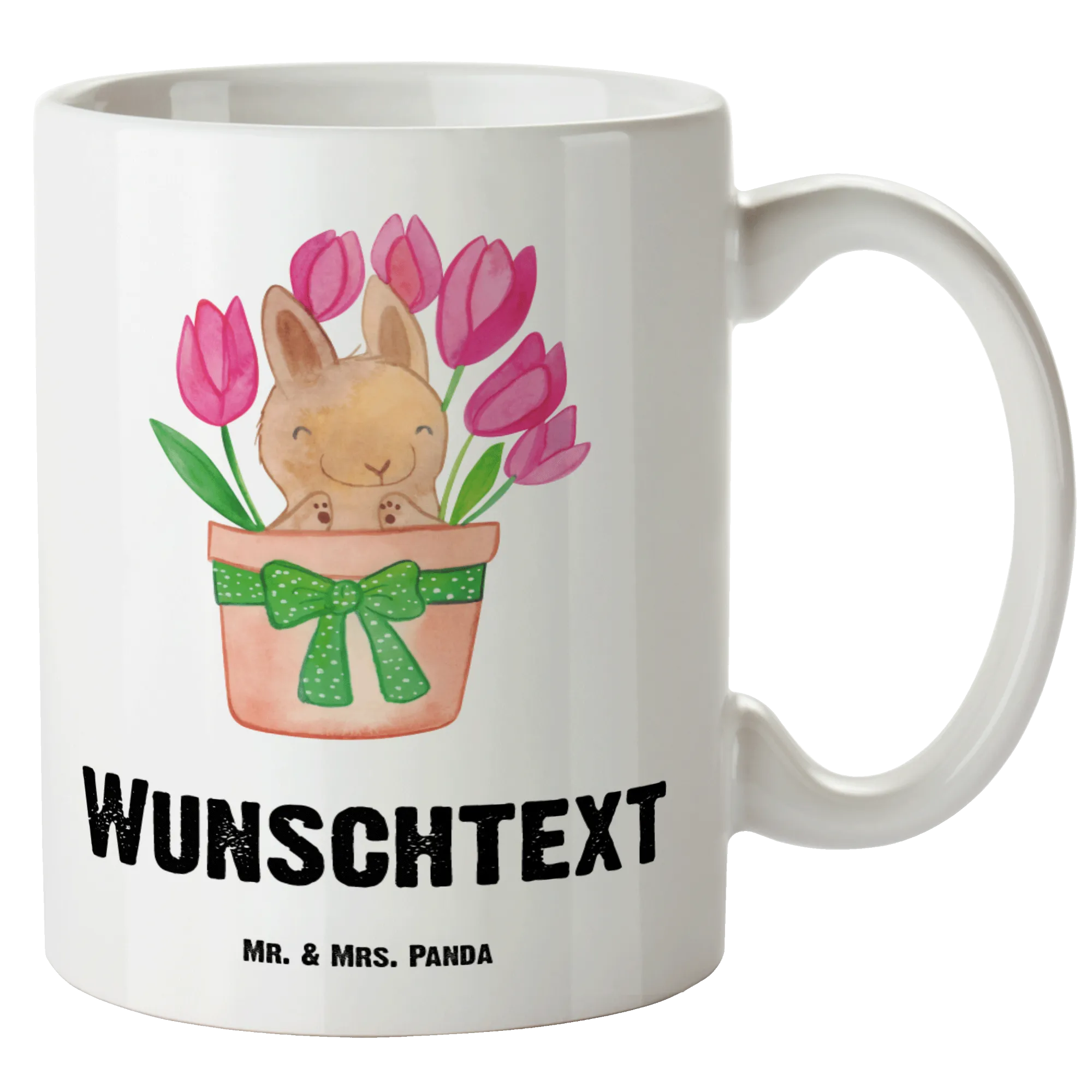 Personalisierter Kaffeebecher Hase Tulpen – Mr. & Mrs. Panda