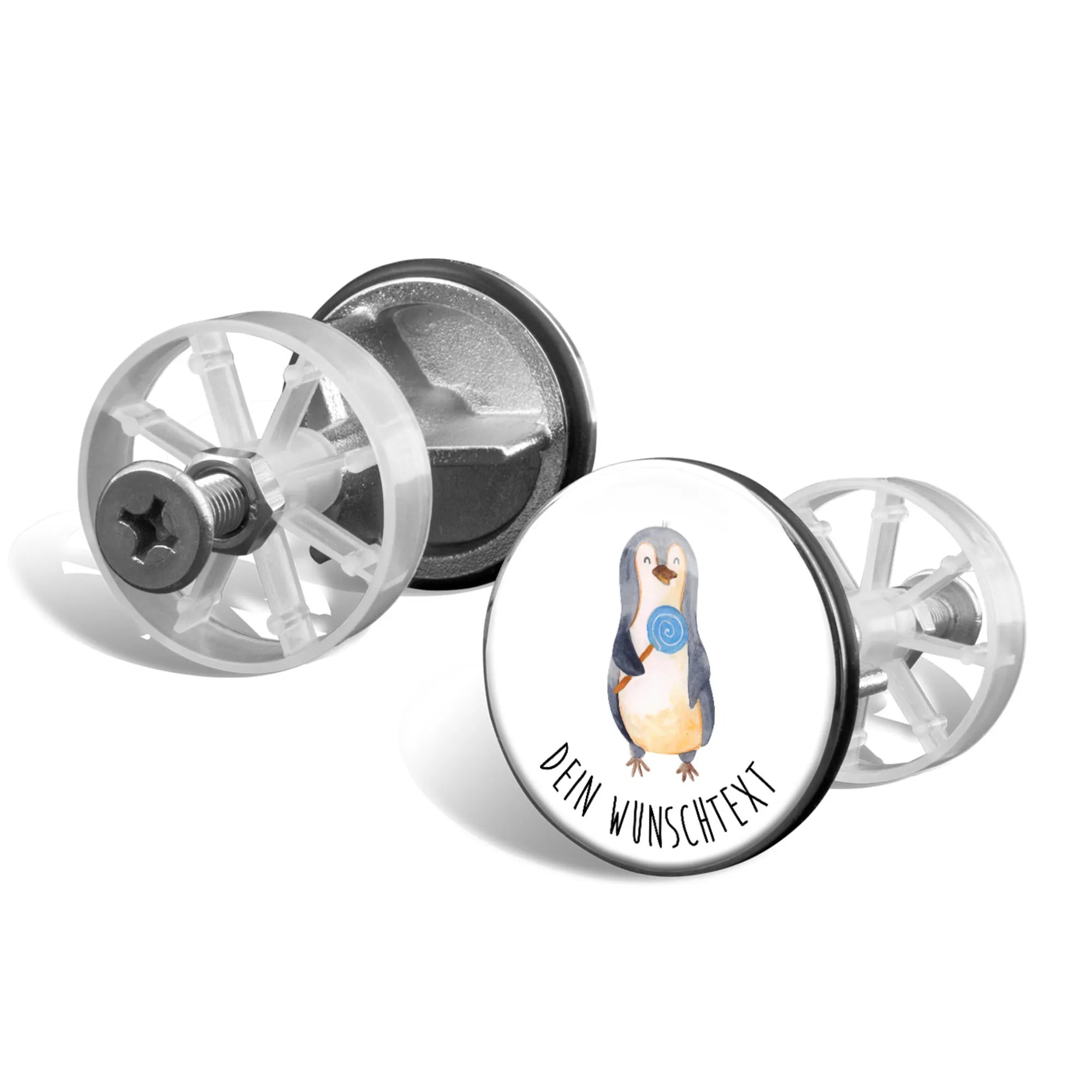 Abflussstöpsel personalisiert Pinguin Lolli - Weiß
