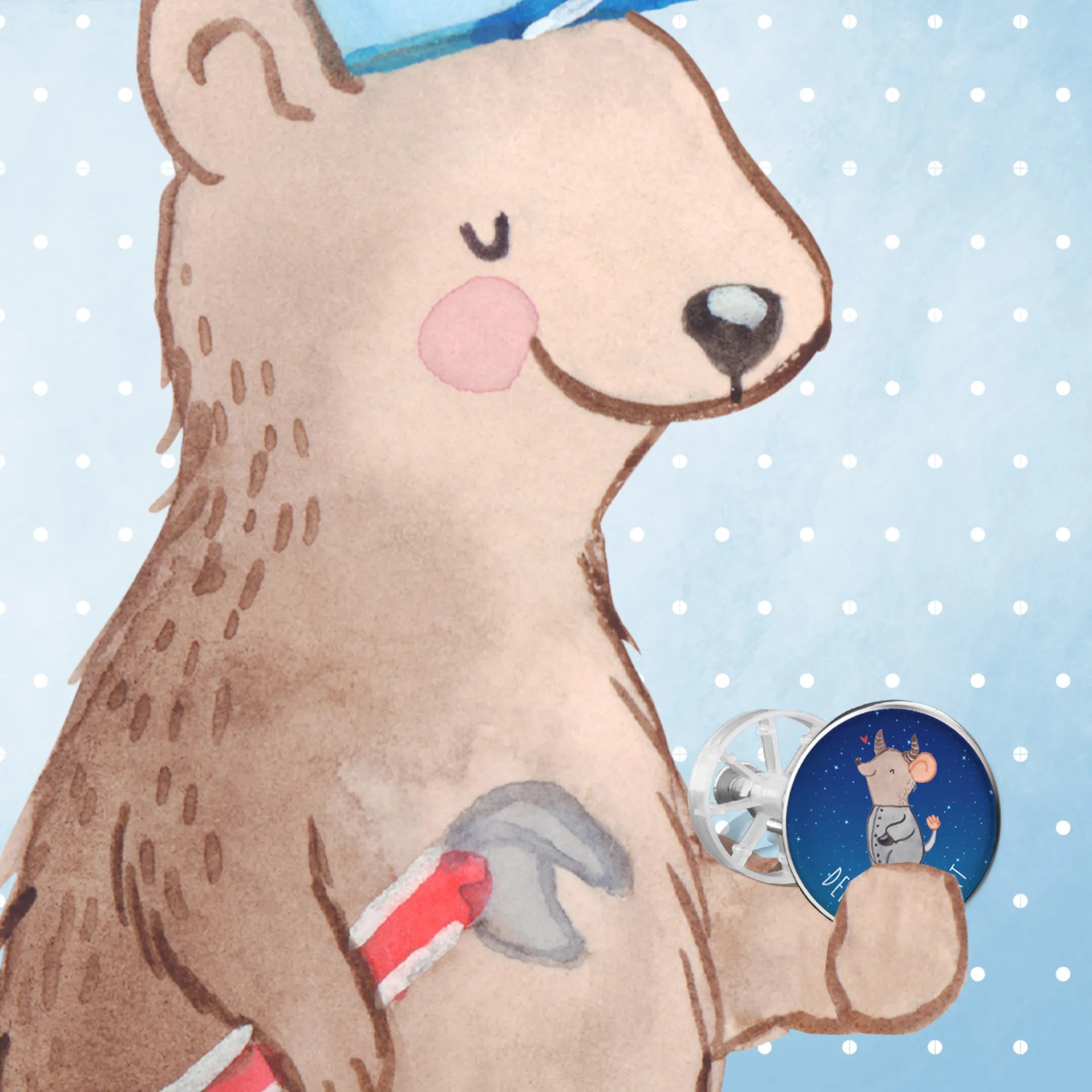 Die liebevoll handgezeichnete Maus, die fröhlich in Stier-Form daherkommt, bringt jedem, der ihn sieht, ein Lächeln ins Gesicht. Ob als Deko-Element in deinem Bad oder als einzigartiges Geschenk – dieser personalisierte Waschbeckenstöpsel wird herzlich geschätzt.