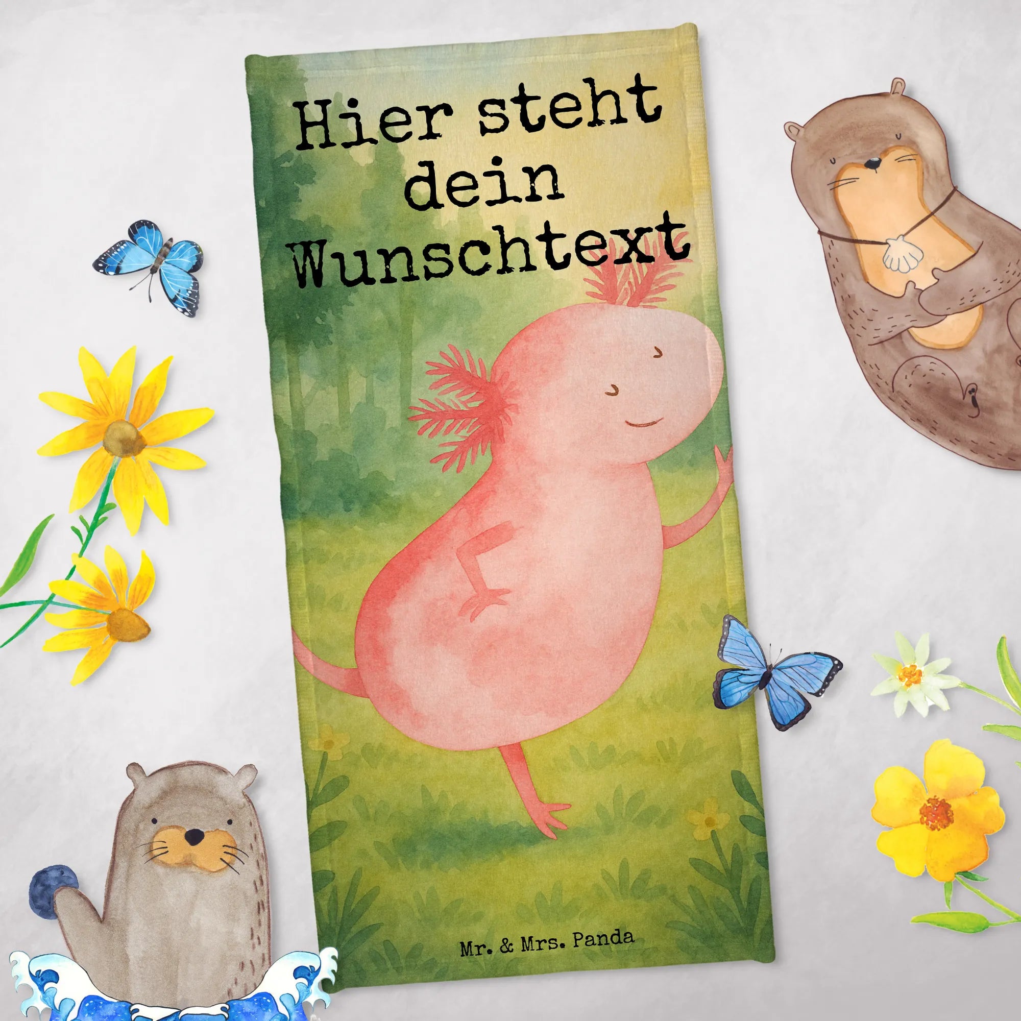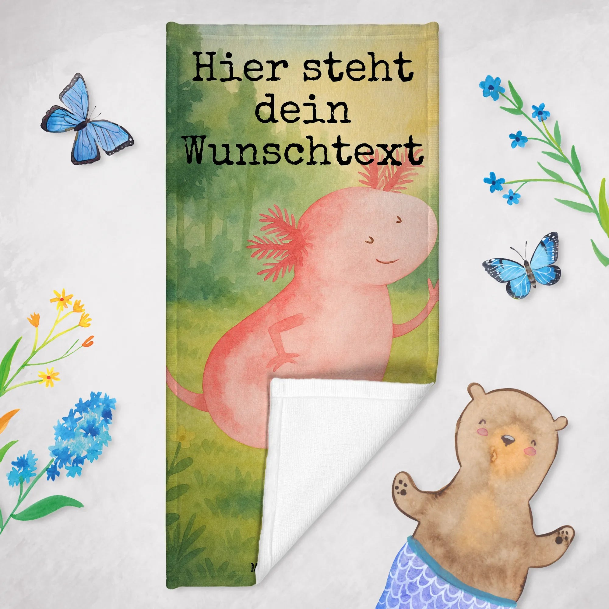 Personalisiertes Badetuch Axolotl Tanzen Design