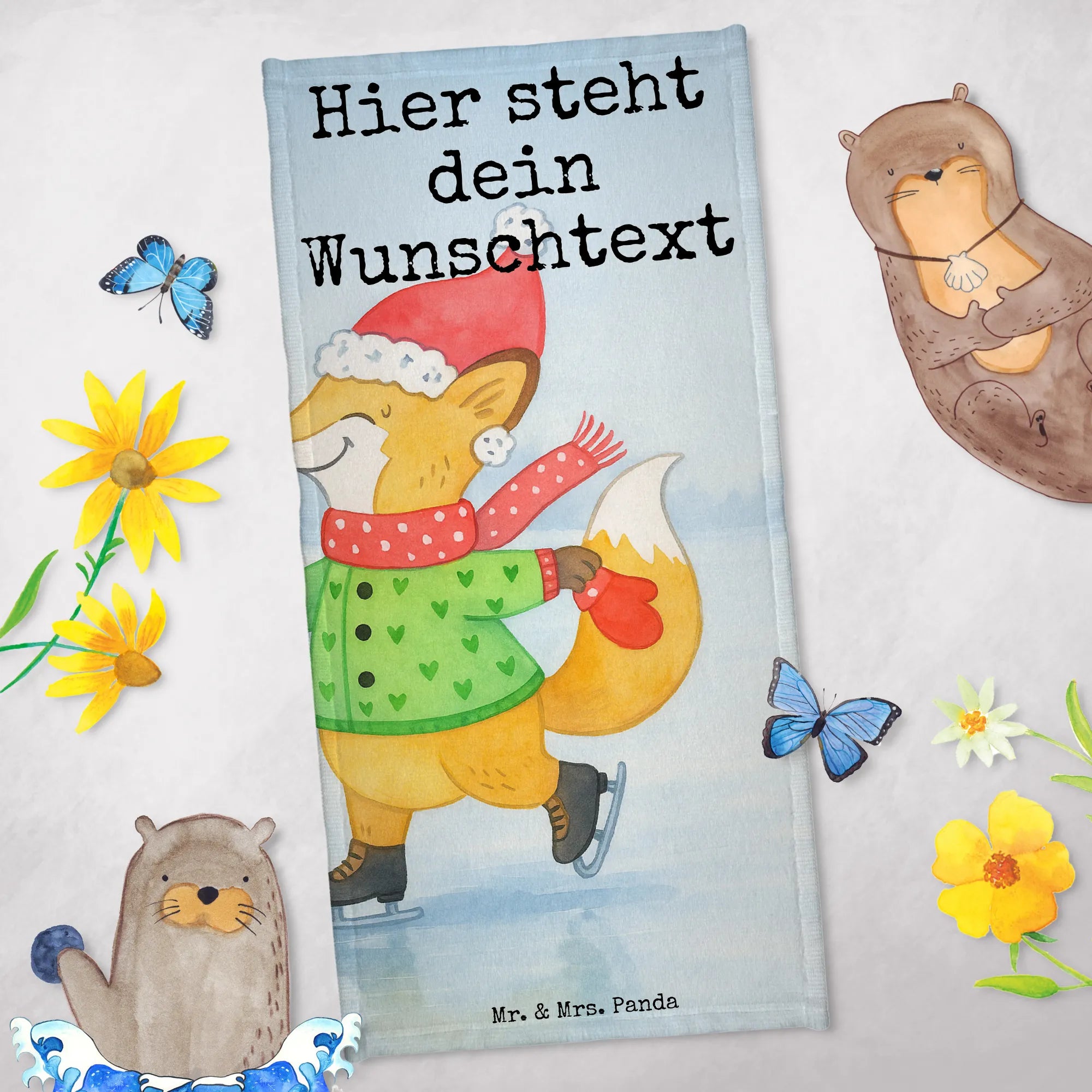 Personalisiertes Badetuch Fuchs Schlittschuhe Design