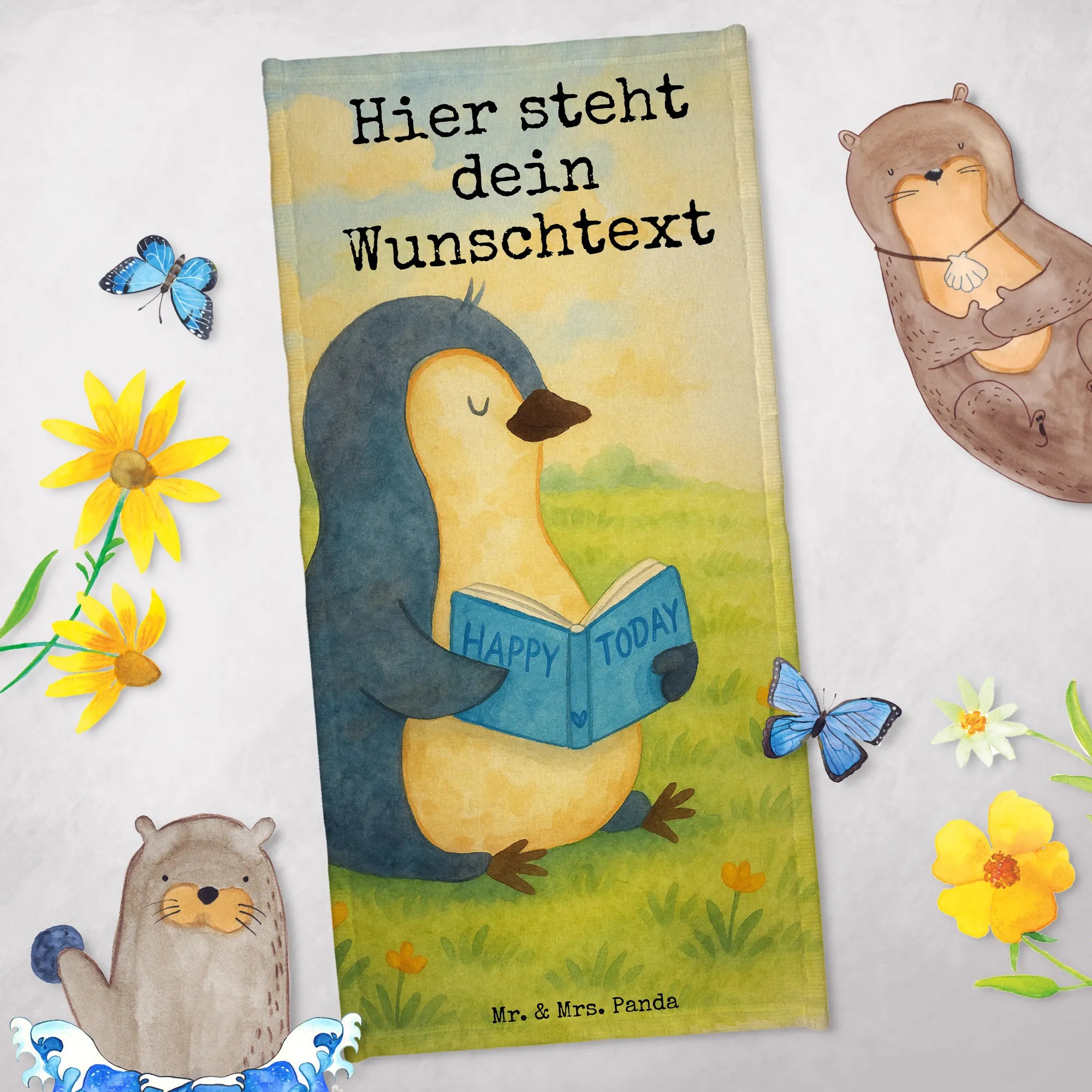 Handtuch personalisierbar Pinguin Buch Design
