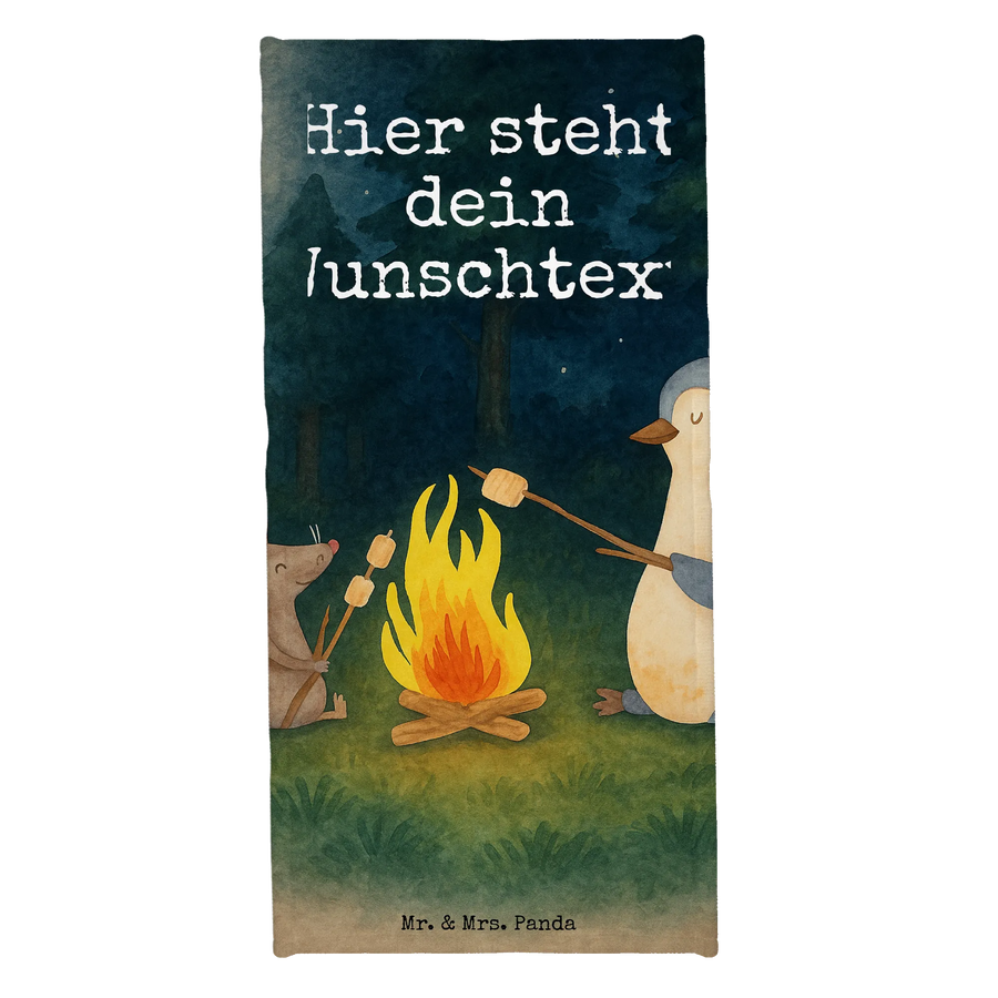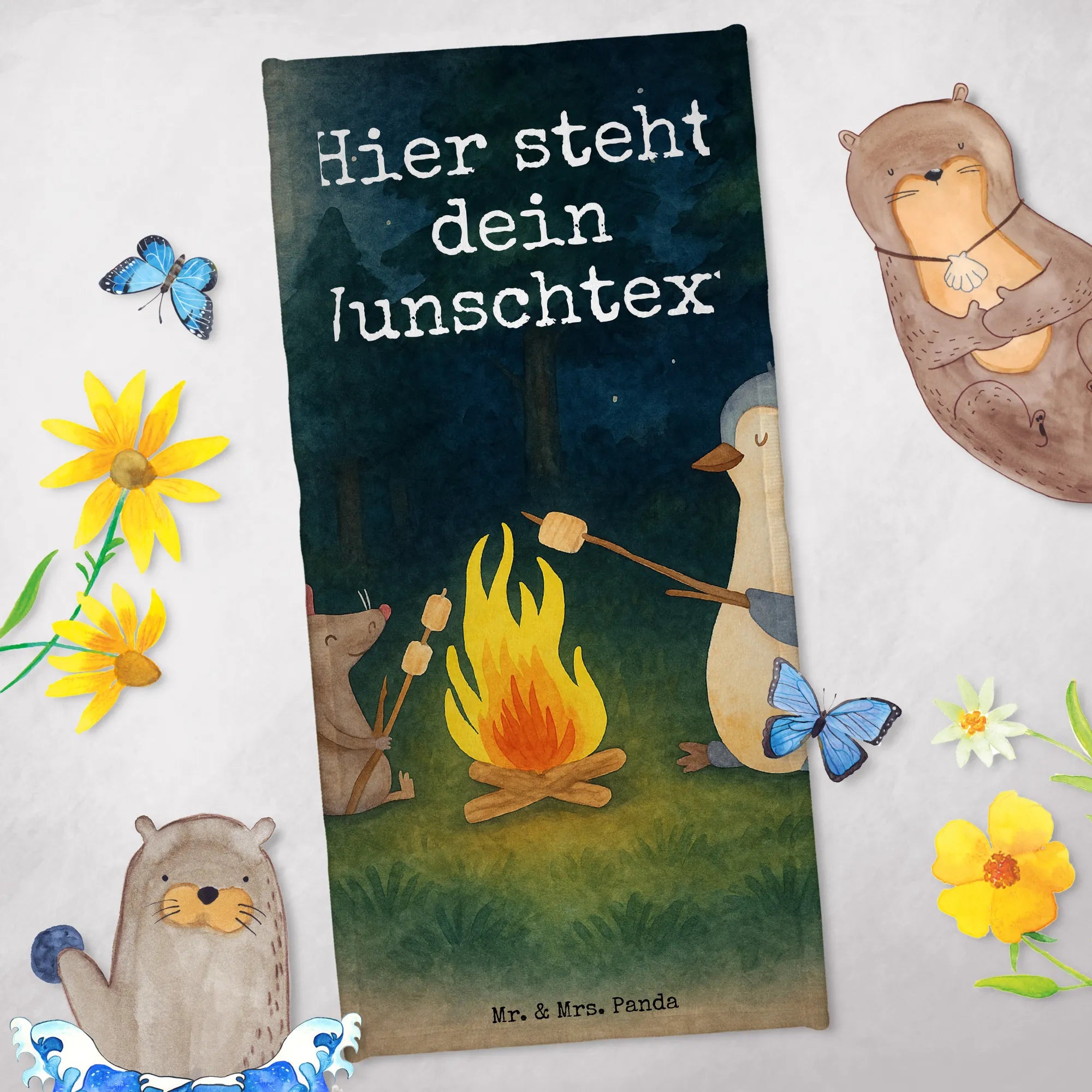 Personalisiertes Badetuch Pinguin Lagerfeuer Design