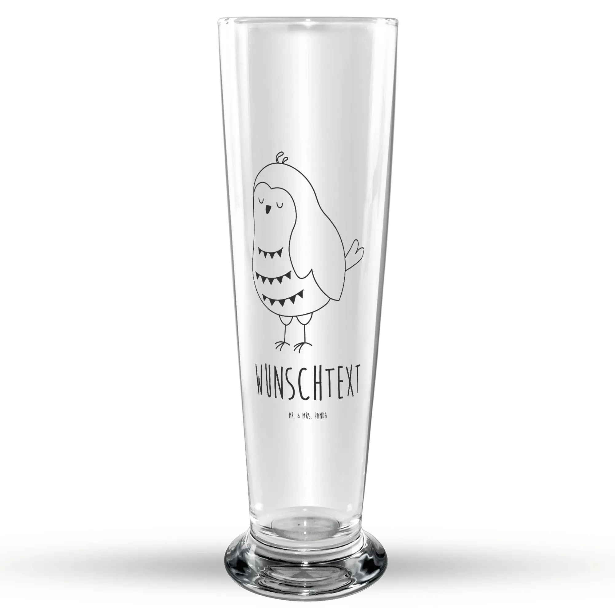 Personalisiertes Bierglas Eule Zufrieden
