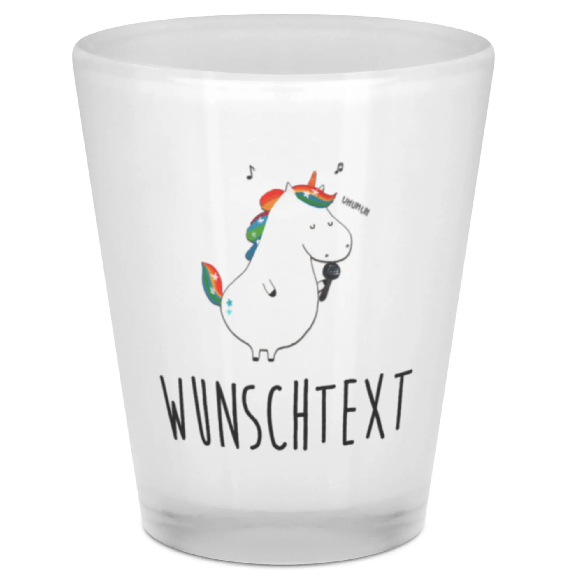 Entdecke unser wunderschönes personalisiertes Schnapsglas mit dem zauberhaften Einhorn Sänger Motiv aus der bezaubernden Einhorn - Kollektion von Mr. & Mrs. Panda! Dieses besondere Schnapsglas ist nicht nur ein fantastisches Geschenk, sondern auch das perfekte Accessoire für deine nächste Feier, ob Geburtstag, Hochzeit oder einfach für eine unvergessliche Party mit Freunden. Unser Schnapsglas wird mit deinem Wunschnamen oder Wunschtext personalisiert und begeistert durch seinen brillant glänzenden Vollfarb-Glasdruck.