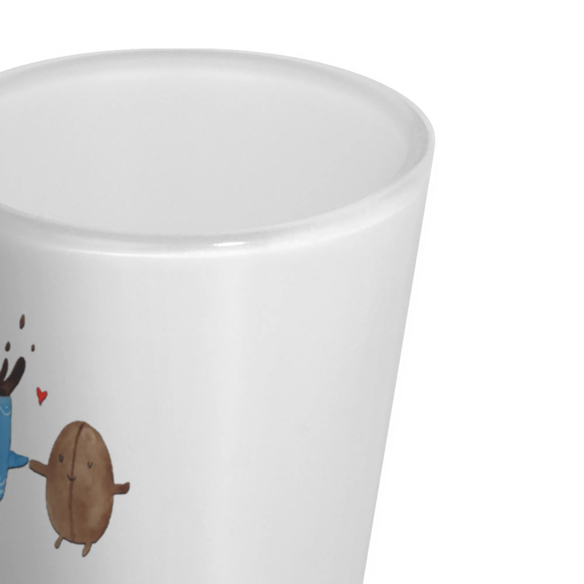 Die kleine Kaffeetasse hält stolz eine Kaffeebohne in der Hand und strahlt pure Lebensfreude aus. Bestehend aus hochwertigem, satiniertem Glas, ist das Schnapsglas kratzfest und hitze-beständig. Es hat ein Volumen von 40 ml und ist damit ideal für einen klassischen Shot oder einen kleinen Likör.