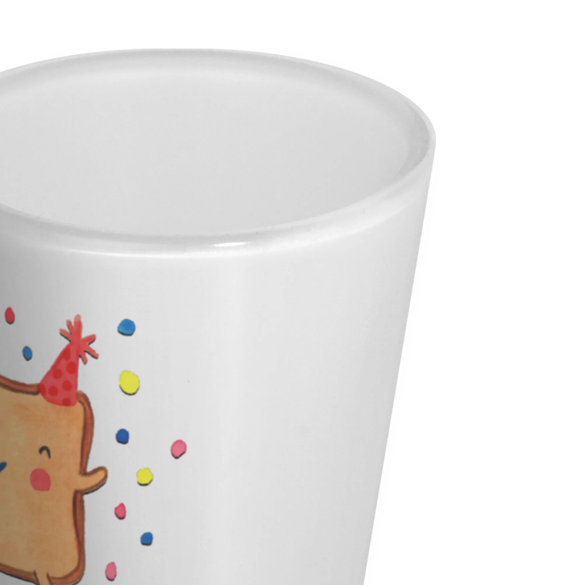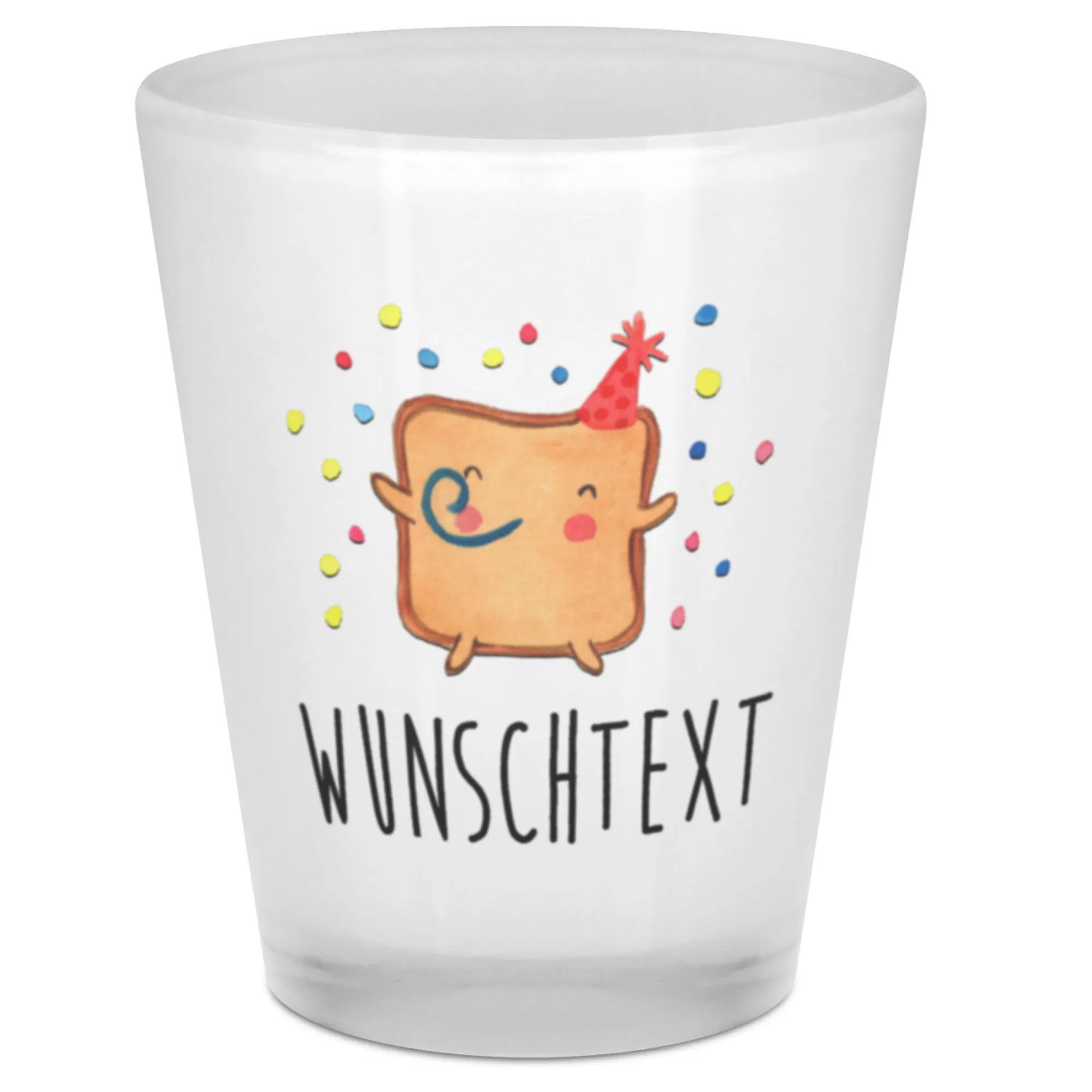 Das Schnapsglas ist aus hochwertigem satiniertem Glas gefertigt und beeindruckt durch seinen brillanten Vollfarb-Glasdruck. Der lustige Toast mit Augen, Wangen und einem lächelnden Gesicht, der einen Partyhut trägt, sorgt für Freude und eine festliche Atmosphäre. Rund um den Toast verleihen mehrfarbige Konfetti-Punkte dem Motiv das gewisse Etwas. Mit einem Füllvolumen von 40 ml ist es perfekt für die nächste Toast-Runde mit Freunden oder der Familie geeignet.