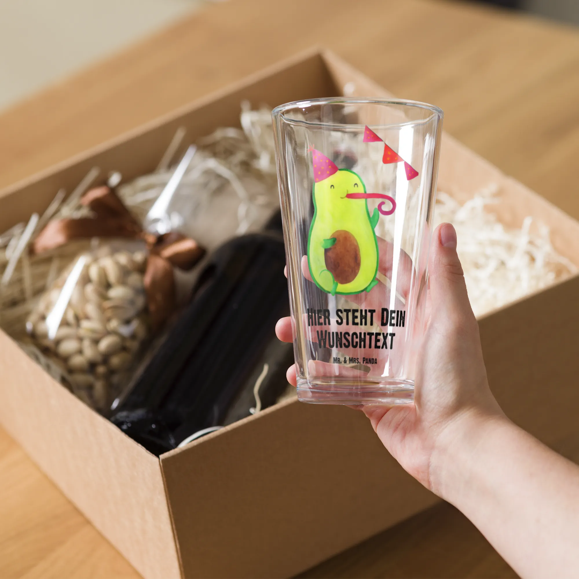 Glas personalisiert Avocado Party Zeit