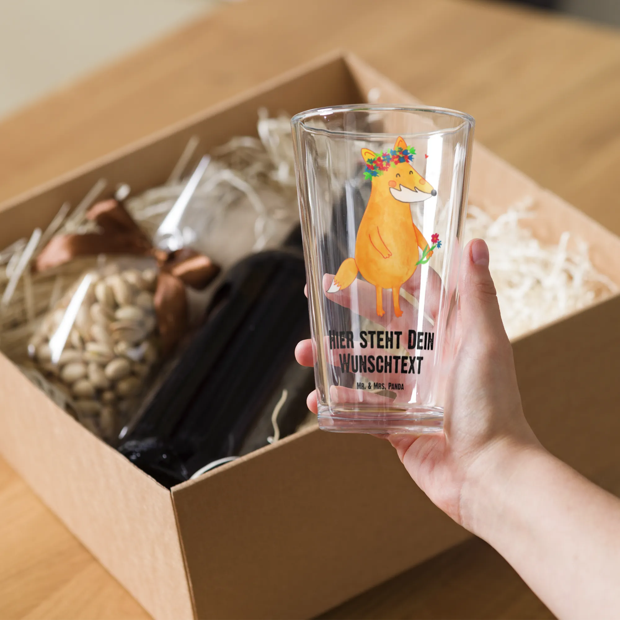 Glas personalisiert Fuchs Blumen – Mr. & Mrs. Panda