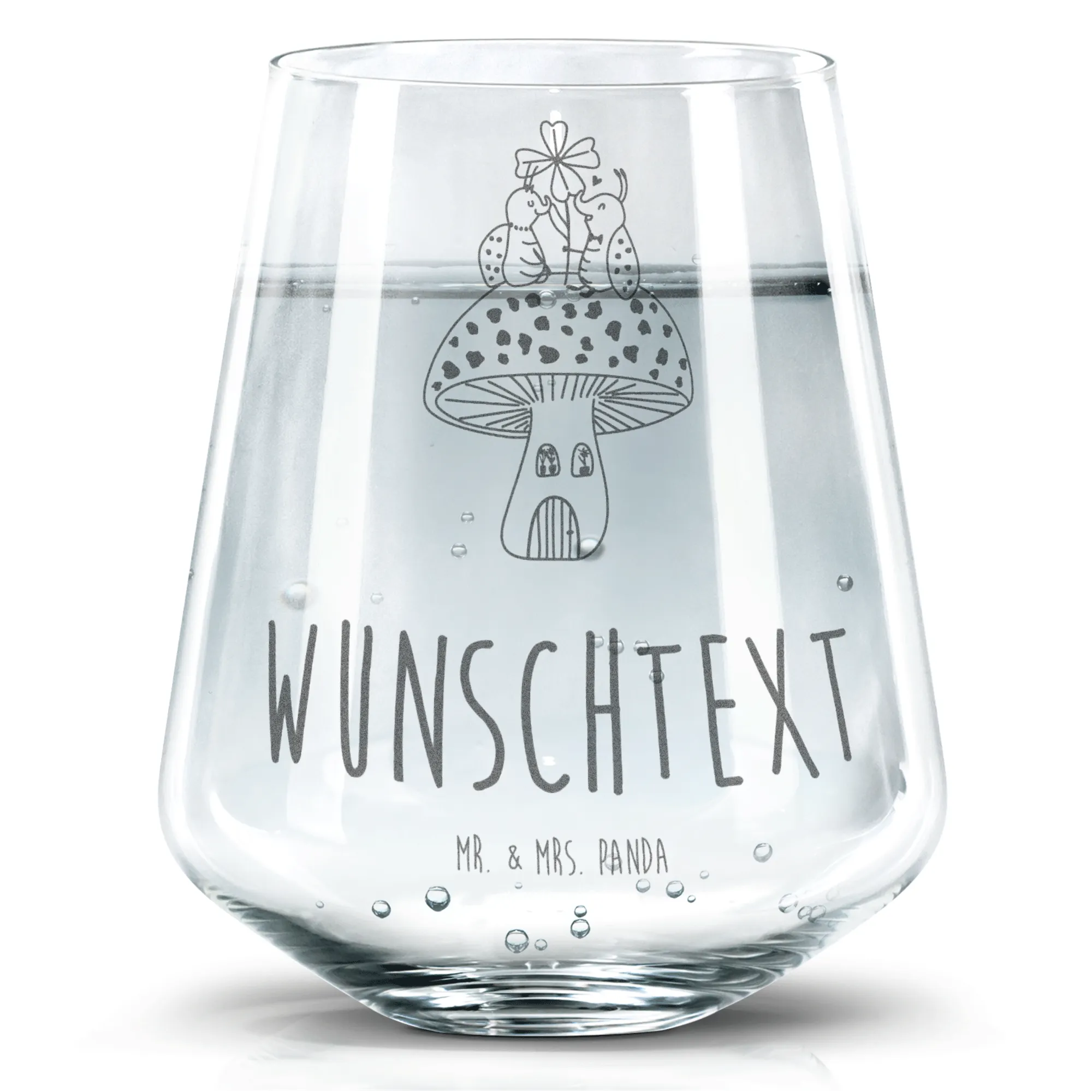 Das personalisierte Trinkglas mit dem zauberhaften Motiv "Marienkäfer Paar Fliegenpilz" aus der Small World Kollektion von Mr. & Mrs. Panda ist das perfekte Geschenk für Freunde und Familie, die das Besondere lieben. Jedes Mal, wenn du aus diesem Glas trinkst, wirst du an die warmen und fröhlichen Momente erinnert, die du mit deinen Lieben in deinem Zuhause teilst. Das hochwertige Trinkglas ist nicht nur praktisch, sondern auch ein echter Hingucker in jeder Wohnung!