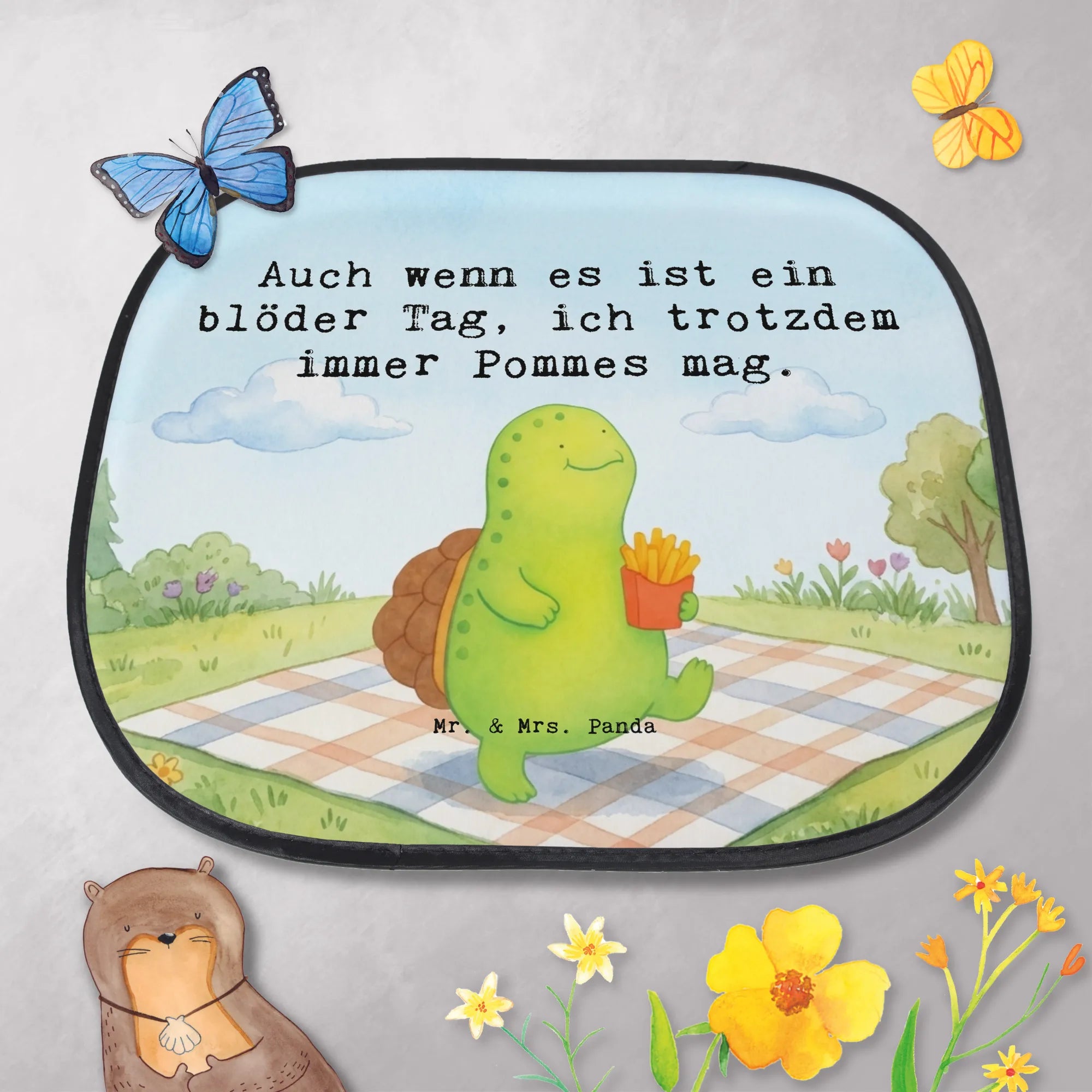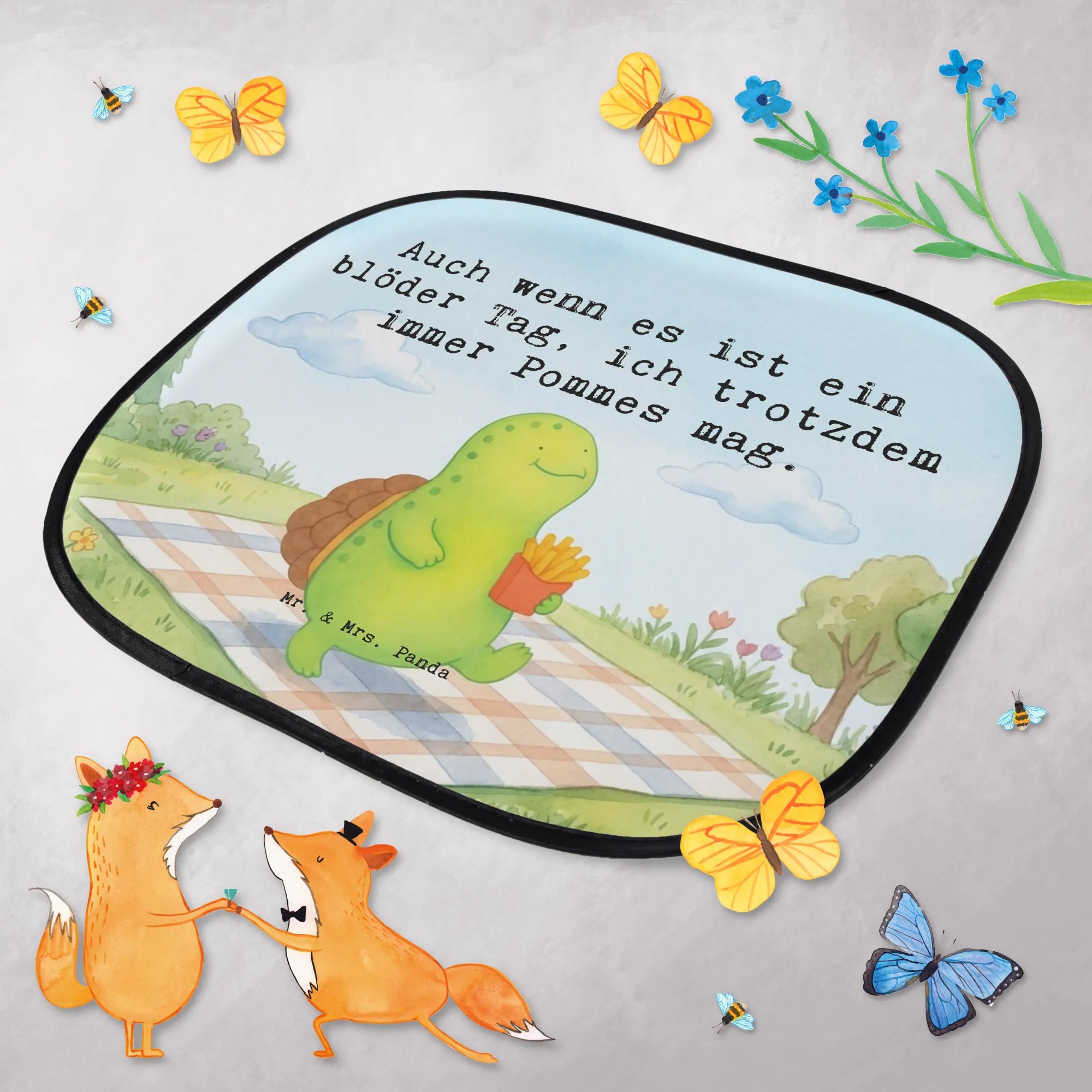 Auto Fenster Sonnenschutz Schildkröte Pommes Design - mit Spruch