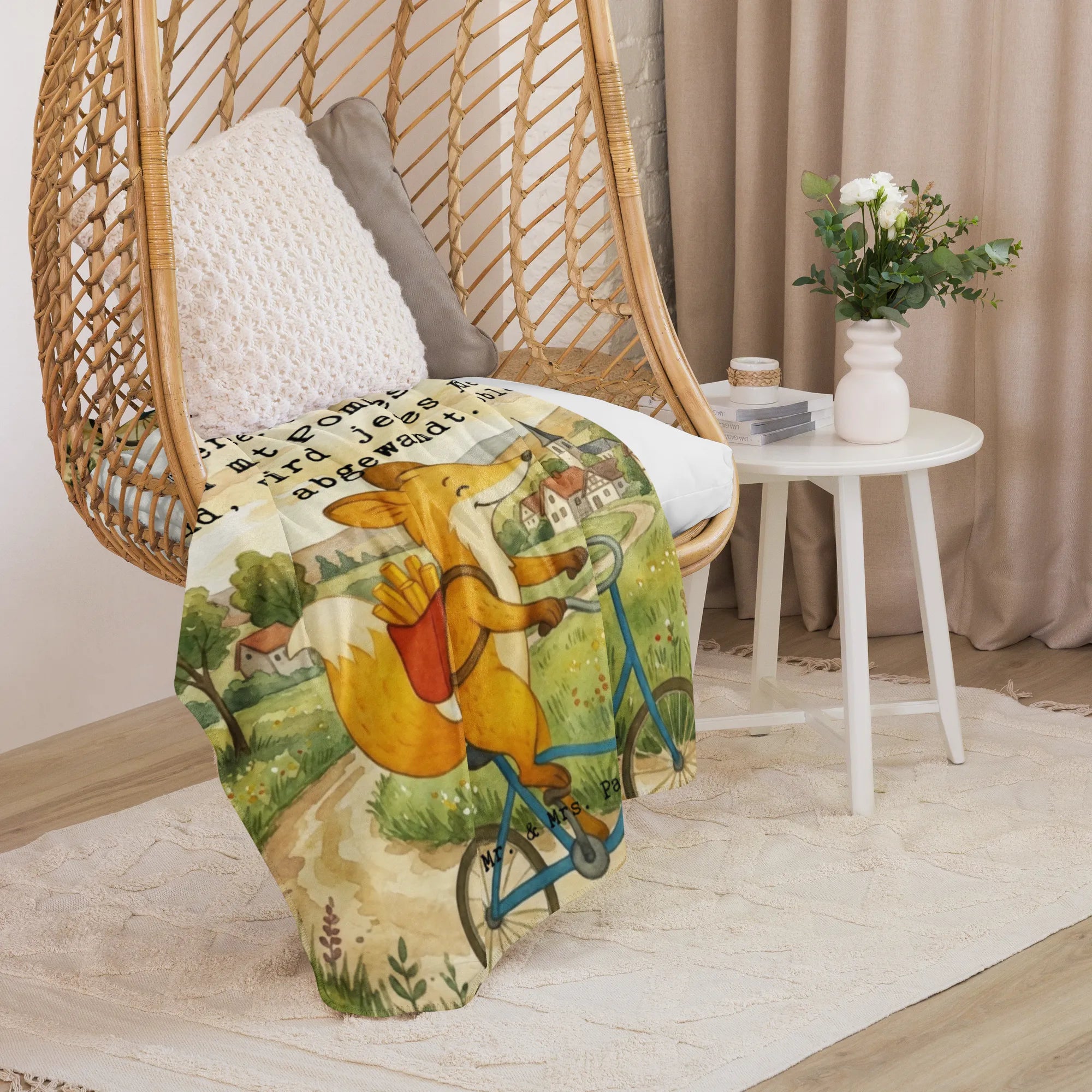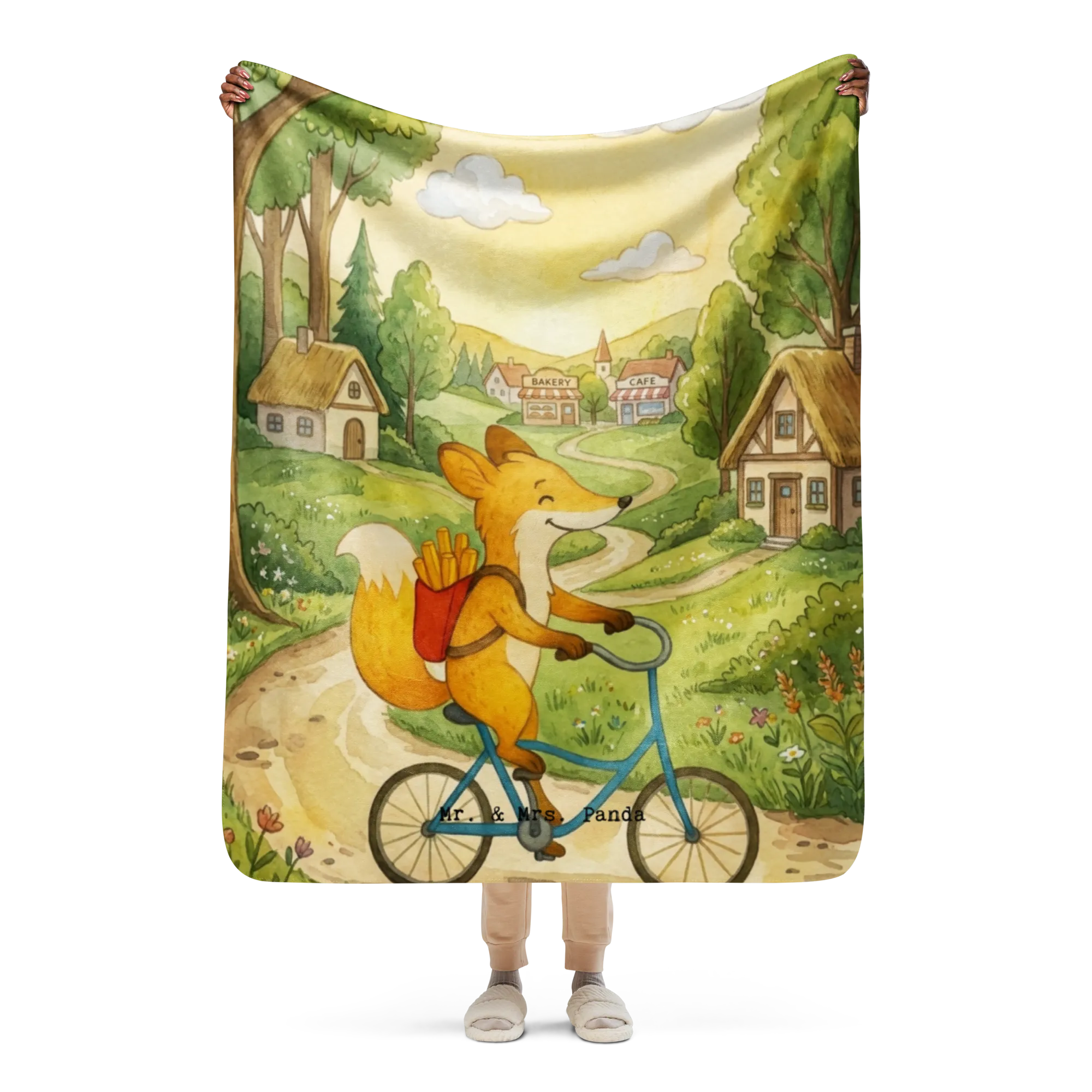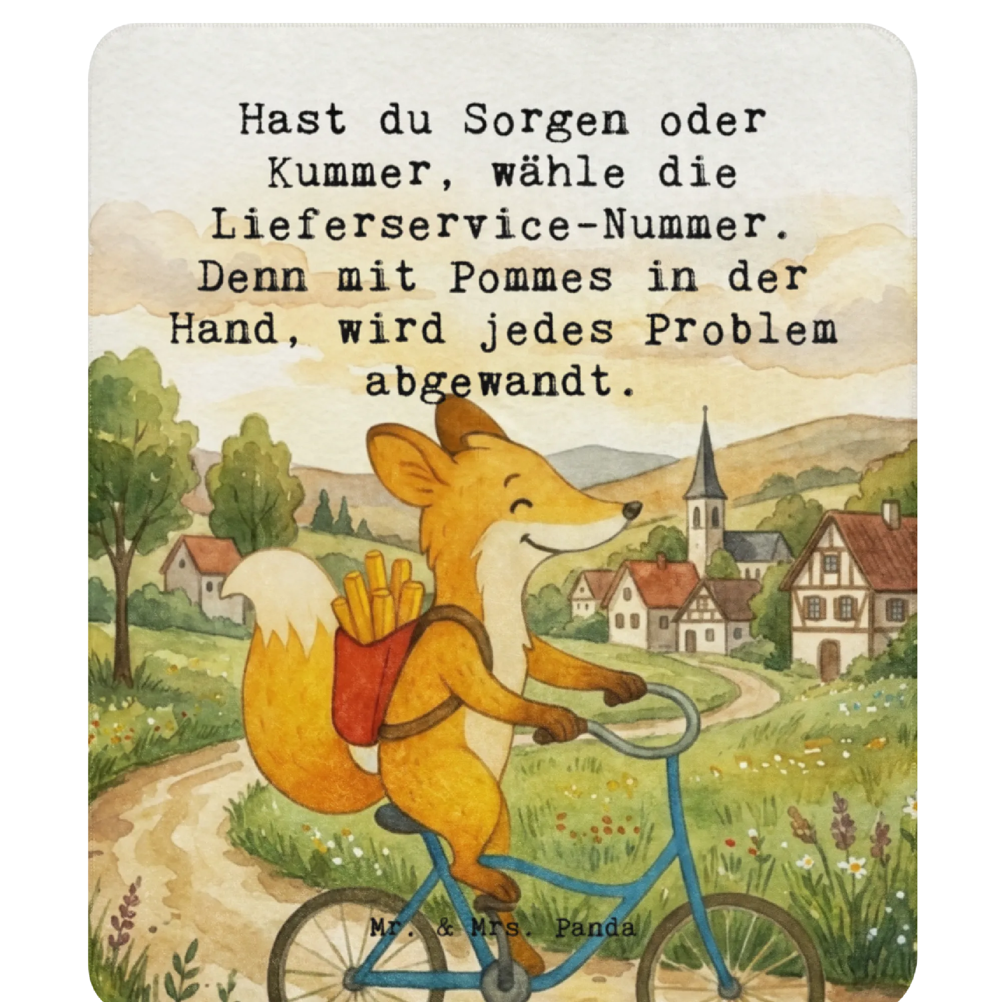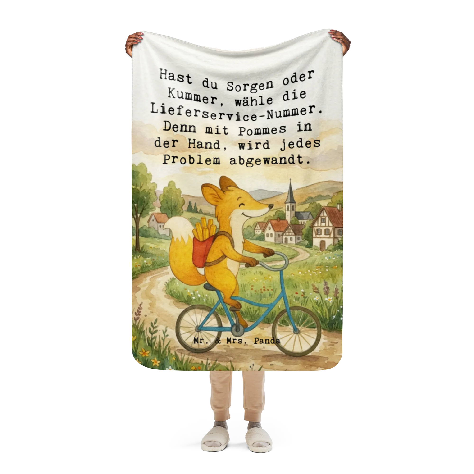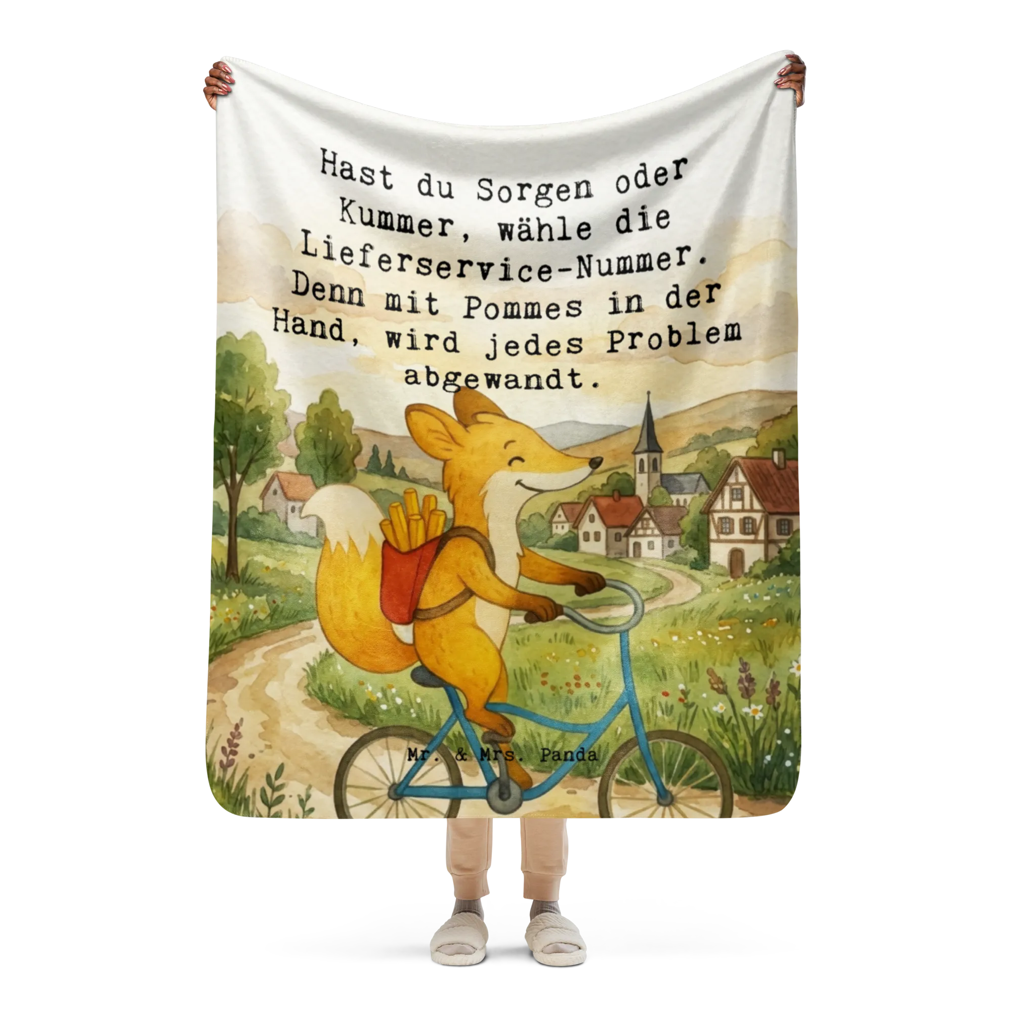 Decke Fuchs Lieferung Pommes Design - 130 x 155 cm - mit Spruch
